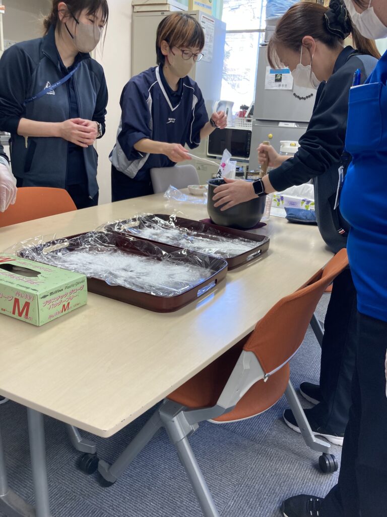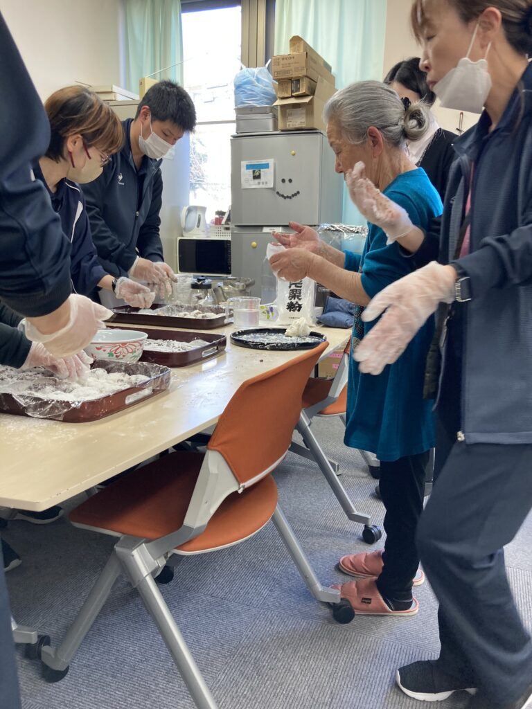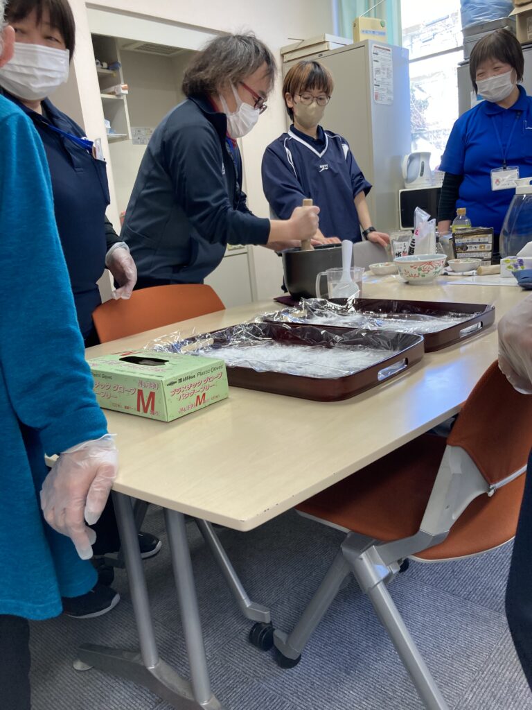 ふれあい喫茶2026年2月19日 今月のふれあい喫茶は初めての試みで「チョコ餅」を作りました。入園者さんにも手伝っていただきおいしいチョコ餅ができました。 施設情報愛媛県新居浜市にある養護老人ホーム慈光園ご利用される方の一人ひとりの意志および人格を尊重し、安心して豊かな施設生活を営むことができるよう必要な支援を行います。養護老人ホーム 新居浜市立 慈光園〒792-0035愛媛県新居浜市西の土居町1-6-20 TEL:0897-32-4325 FAX:0897-32-4328慈光園WEBサイト最近の記事2026年2月9日今月の誕生会養護老人ホーム 慈光園2026年2月4日リサイクル生活2026年1月29日高齢者疑似体験行事2026年1月20日今年の干支生活2026年1月15日ふれあい喫茶行事2025年12月24日ふれあい喫茶でクリスマス会養護老人ホーム 慈光園慈光園の記事一覧