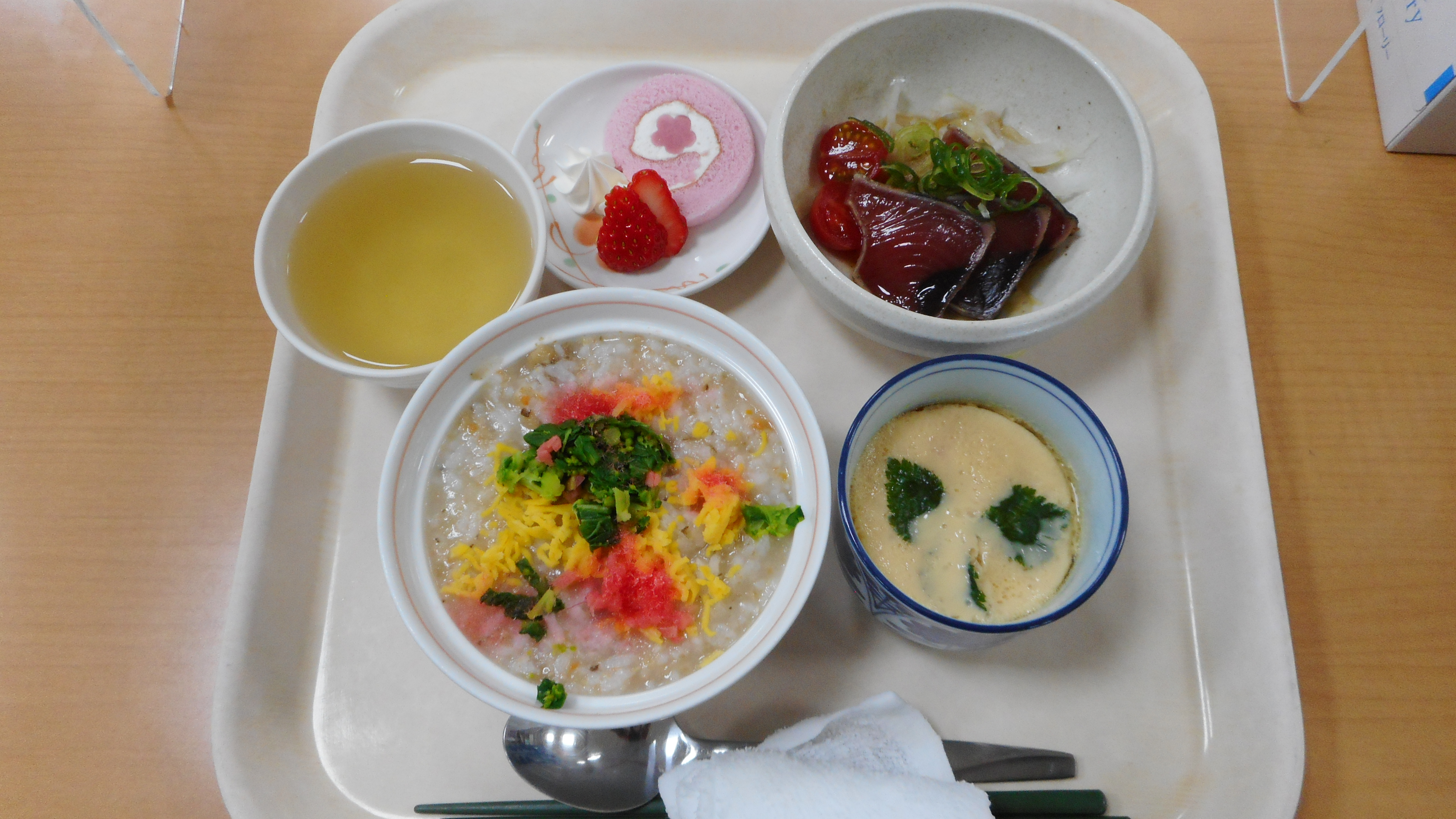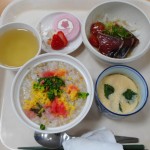 当施設でもご利用者様が作成した「折り紙雛」を飾り、食事におやつと楽しみました。