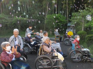シャボン玉.○2025年5月7日 みなさんこんにちは(^▽^)/ 暖かい季節になり、日向ぼっこにはちょうど良い季節になりましたね。外に出ると気持ちよくてうたた寝する方もいましたね(*´ω`*) 天気も良かったので外に出てシャボン玉を楽しみました!大きなシャボン玉が出来るとおぉ~!と歓声が上がり盛り上がりました。 僕自身シャボン玉をするのは小学生以来ですごく懐かしい気持ちになりました。また天気の良い日は楽しみましょうね(*^▽^*) 施設情報愛媛県新居浜市にある介護老人保健施設三恵荘拡げよう繋がり深まる信頼、ともに歩む喜び・思いやり。温かい心でスマイルケア介護老人保健施設 リハビリステーション三恵荘 〒792-0050 愛媛県新居浜市萩生河の北67-60TEL:0897-40-3366 FAX:0897-40-3360三恵荘WEBサイト最近の記事2025年10月7日指定居宅介護支援事業所 三恵 ケアマネ便りリハビリステーション 三恵荘2025年9月24日敬老会のお祝いリハビリステーション 三恵荘2025年9月17日敬老の日行事食☆リハビリステーション 三恵荘2025年9月11日長寿のお祝いリハビリステーション 三恵荘2025年9月3日指定居宅介護支援事業所 三恵 ケアマネ便りリハビリステーション 三恵荘2025年8月27日通所リハビリセンター 三恵荘リハビリステーション 三恵荘三恵荘の記事一覧