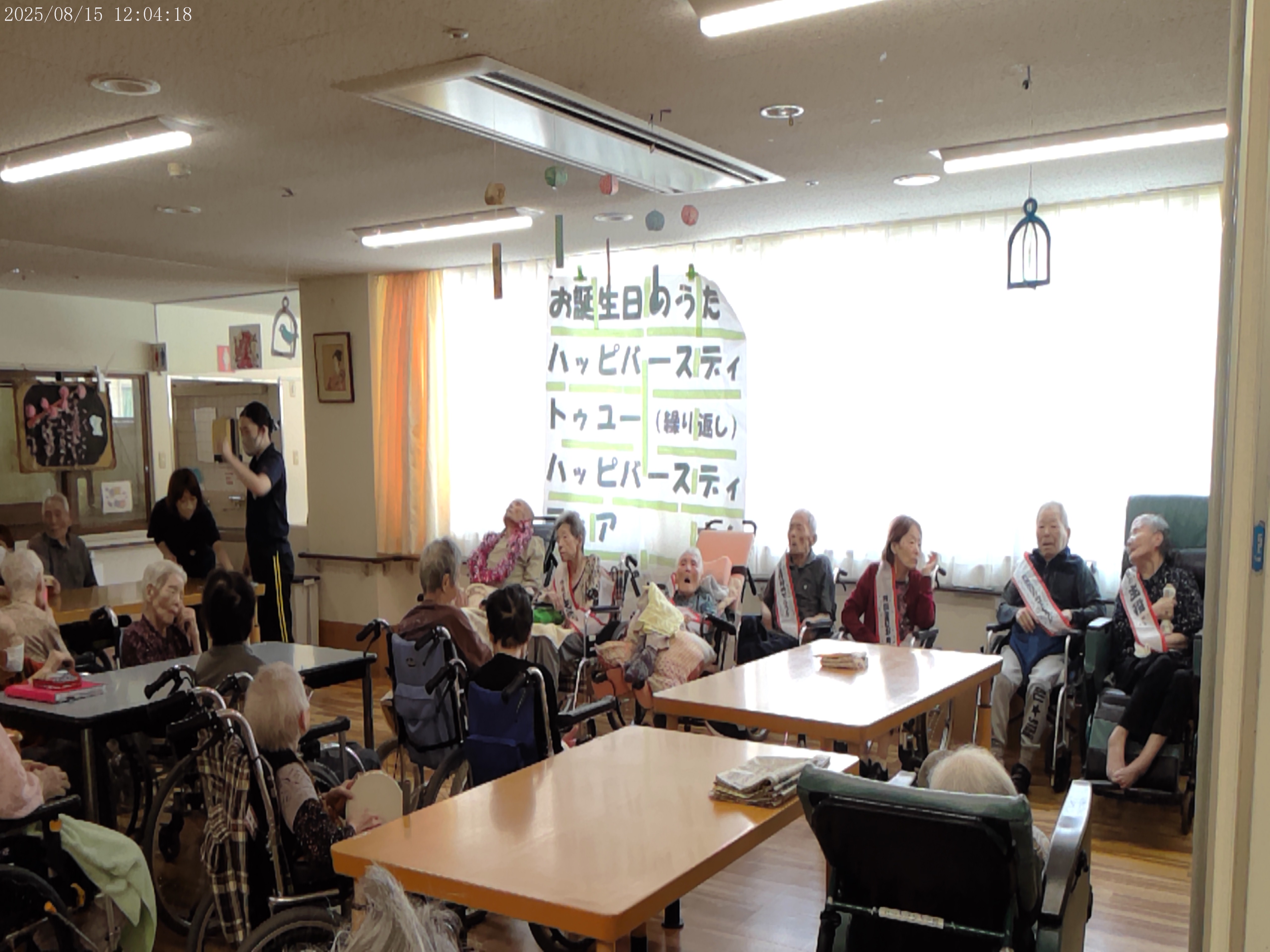 【北館】8月誕生日会2025年8月24日8月15日に北館入所者の誕生日会を開催しました(*ˊᗜˋ*)ノノ゙パチパチ 7名の入所者さま 皆さんに誕生日のうたを歌ってもらい スタッフからメッセージ付きの誕生日カードを渡され とても嬉しそうな表情をされていました(⑉˙ᗜ˙⑉) 「(祝ってくれて)ありがとう…ありがとう…」と 男性入所者さまが言ってくださり私達も感無量です(ฅ́˘ฅ̀)♡ 15時には喫茶店風にケーキセットを……♡ 喜んでいただけて良かったです!!!! 施設情報愛媛県新居浜市にある介護老人福祉施設ハートランド三恵手作りの愛あるホームで咲かそう、みんなの笑顔介護老人福祉施設 ハートランド三恵〒792-0050 愛媛県新居浜市萩生17TEL:0897-40-0006 FAX:0897-40-0007ハートランド三恵WEBサイト最近の記事2025年10月14日〖南館3階〗エッグタルト介護老人福祉施設 ハートランド三恵2025年10月11日〖南館3階〗星ユニット壁画介護老人福祉施設 ハートランド三恵2025年10月11日〖南館3階〗食事の風景介護老人福祉施設 ハートランド三恵2025年10月11日芸術の秋!食欲の秋!介護老人福祉施設 ハートランド三恵2025年10月10日〖南館3階〗カラフル♫介護老人福祉施設 ハートランド三恵2025年10月10日〖南館3階〗タコパ!介護老人福祉施設 ハートランド三恵ハートランド三恵の記事一覧