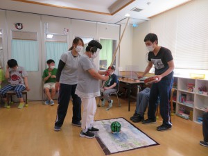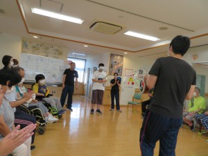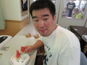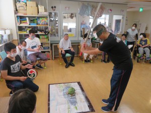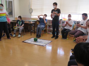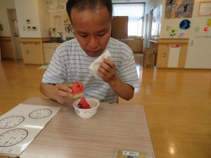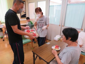 すいか割り2022年8月24日今年も恒例の すいか割りを行いました。 収穫の数が少なかったので、ビーチボールも使って( ^ω^)・・・ みんなで一緒に楽しみました(^_-)-☆ 育ちが悪いスイカもありました・・・ 残念( ノД`)シクシク… すいか割りのお楽しみ・・・試食会‼ おいしくみんなで一緒に食べました(*^^)v 来年も畑の手入れを頑張るぞ‼ 施設情報愛媛県新居浜市にある総合福祉施設コミュニティハウス三恵子どもから障がい者、高齢者が集う憩いの場コミュニティハウス三恵〒792-0893 愛媛県新居浜市多喜浜1-2-16TEL:0897-46-4545 FAX:0897-46-4811コミュニティハウス三恵WEBサイト最近の記事2025年10月7日10月のお誕生会総合福祉館 コミュニティハウス三恵2025年6月18日おやつ作り(ホットサンド)総合福祉館 コミュニティハウス三恵2025年6月18日レクレーション(ブーメラン)総合福祉館 コミュニティハウス三恵2025年6月18日個別外出総合福祉館 コミュニティハウス三恵2025年6月18日介護教室(血圧のお話)総合福祉館 コミュニティハウス三恵2025年4月21日節分総合福祉館 コミュニティハウス三恵コミュニティハウス三恵の記事一覧