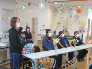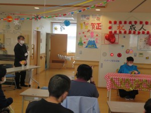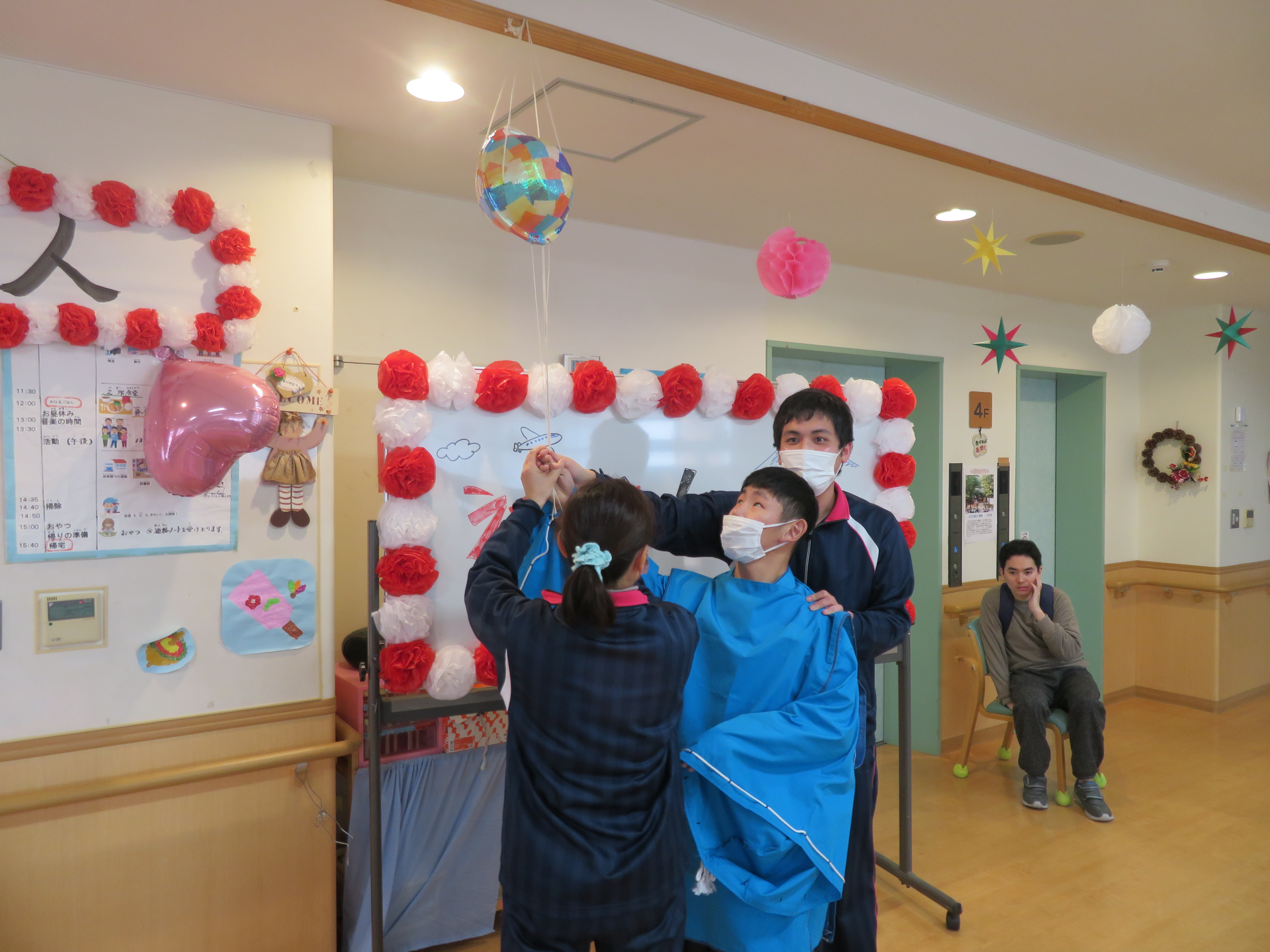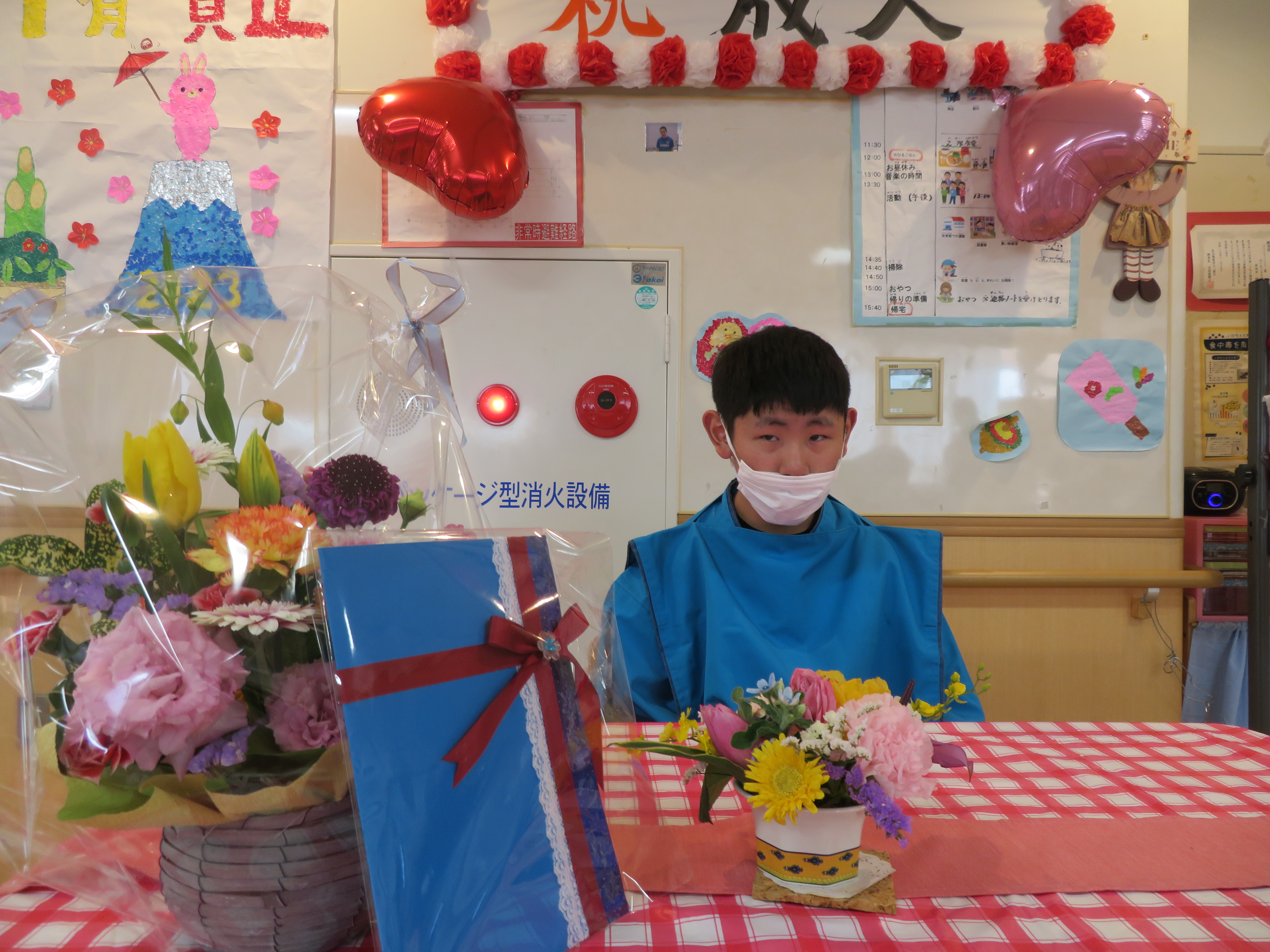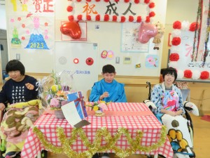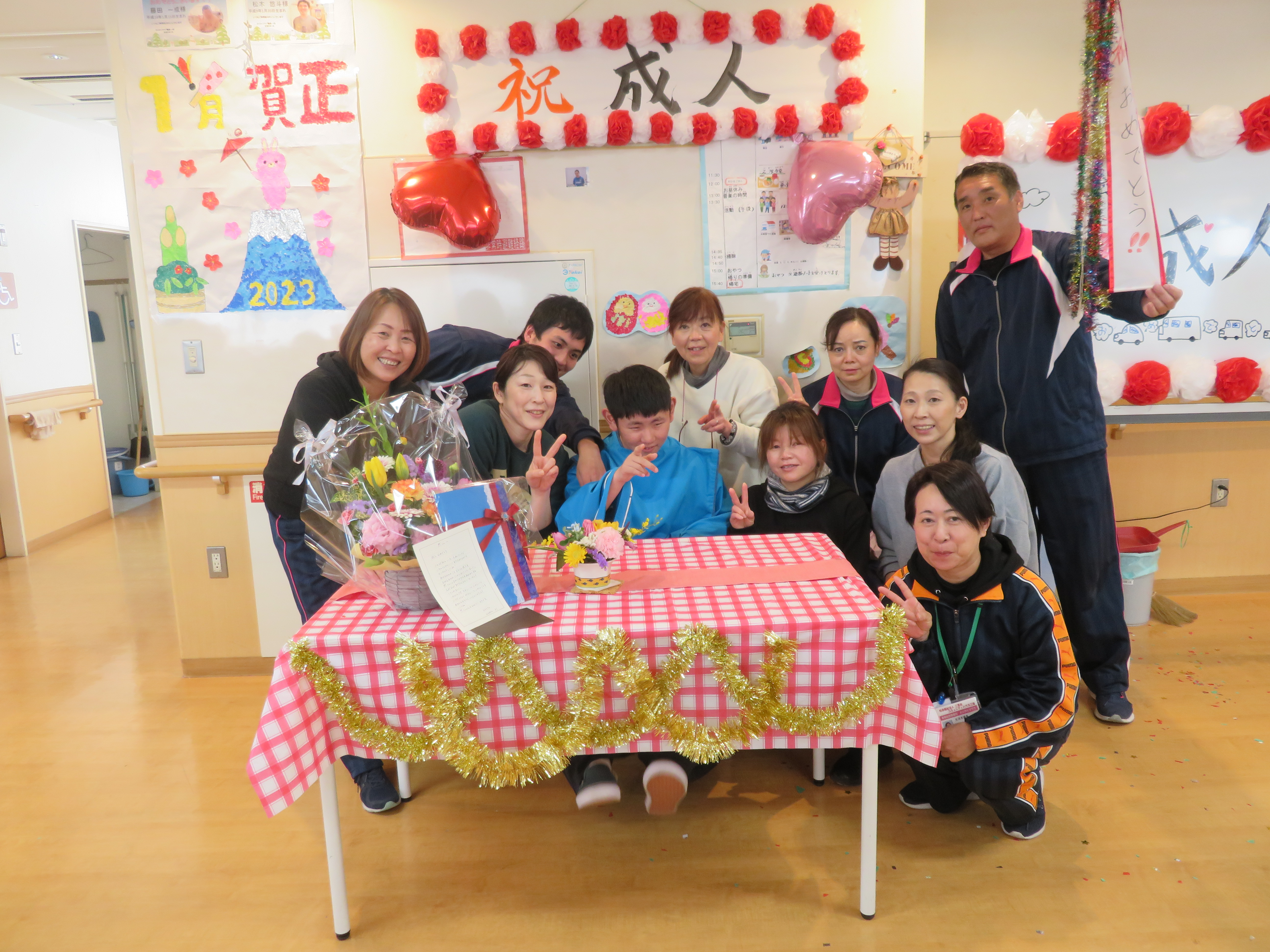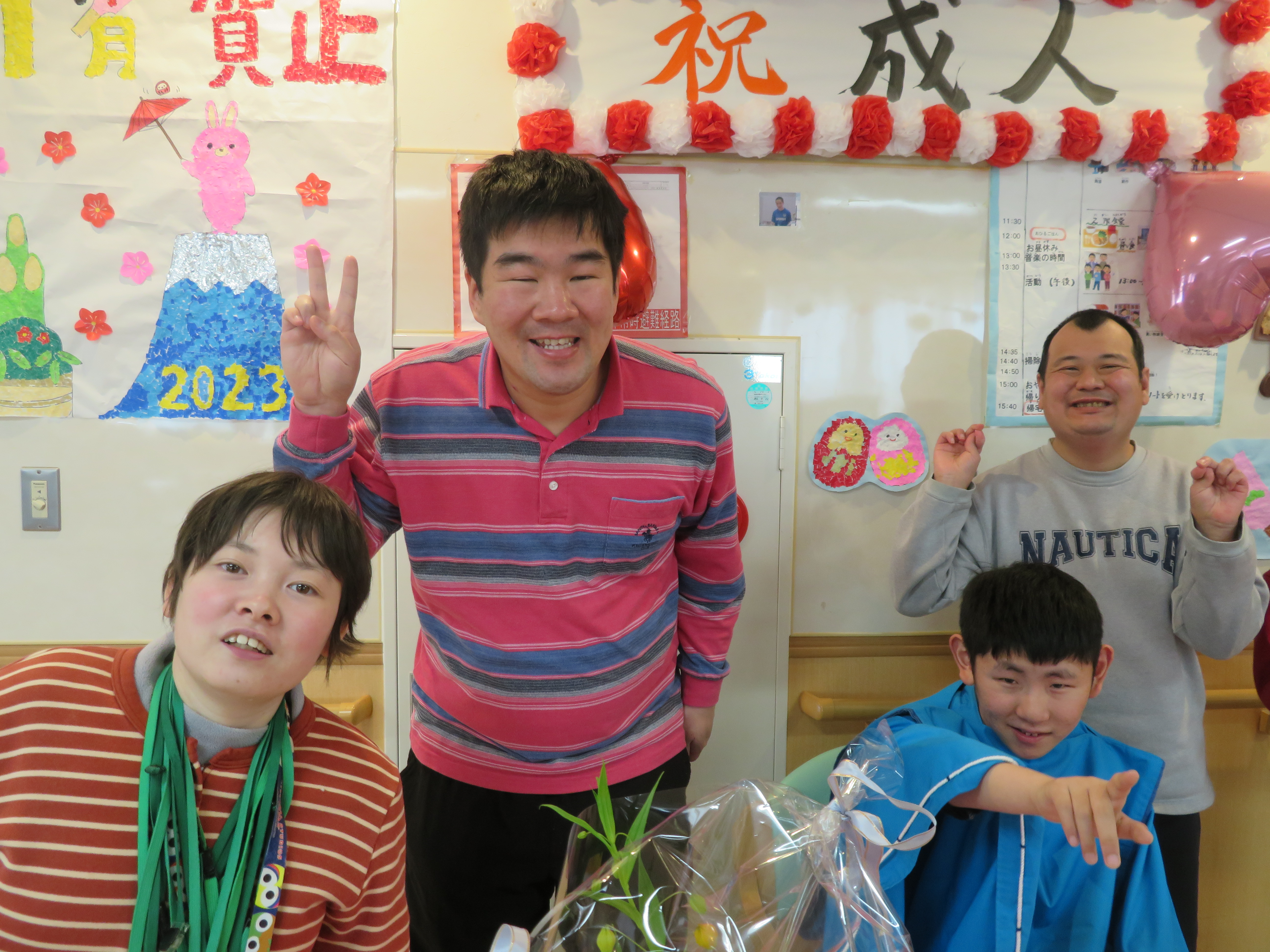 わくわく二十歳のお祝い2023年1月23日わくわくクラブにて、二十歳を迎える利用者さんのお祝いを行いました。 館長さん、各階の主任さん放課後等デイサービスの職員さんもお祝いに来てくださいました。 お母さんからのお手紙を、、、 素敵な、手紙をありがとうございました。 くす玉を割って( ^ω^)・・・ おめでとうございます!(*^-^*) 皆さんと記念撮影(#^.^#) 楽しくみんなで一緒にお祝いしました。 施設情報愛媛県新居浜市にある総合福祉施設コミュニティハウス三恵子どもから障がい者、高齢者が集う憩いの場コミュニティハウス三恵〒792-0893 愛媛県新居浜市多喜浜1-2-16TEL:0897-46-4545 FAX:0897-46-4811コミュニティハウス三恵WEBサイト最近の記事2025年10月7日10月のお誕生会総合福祉館 コミュニティハウス三恵2025年6月18日おやつ作り(ホットサンド)総合福祉館 コミュニティハウス三恵2025年6月18日レクレーション(ブーメラン)総合福祉館 コミュニティハウス三恵2025年6月18日個別外出総合福祉館 コミュニティハウス三恵2025年6月18日介護教室(血圧のお話)総合福祉館 コミュニティハウス三恵2025年4月21日節分総合福祉館 コミュニティハウス三恵コミュニティハウス三恵の記事一覧