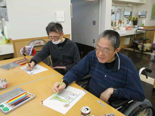4/30 作品制作(2階)2025年4月30日 これからも元気でたくましく過ごせますように。 みんなで、鯉のぼりにお願いしながら塗り絵しました。 クリックすると写真が出ます。 R07.04.30 作品制作(2階) 施設情報愛媛県東温市にある障害者支援施設三恵ホーム明るく楽しく元気よくみんないきいき三恵ホーム障害者支援施設 三恵ホーム〒791-0311 愛媛県東温市則之内甲2819TEL:089-966-3555 FAX:089-966-3571三恵ホームWEBサイト最近の記事2025年10月14日10/11 外気浴(3階)障害者支援施設 三恵ホーム2025年10月14日10/10 給食(ステーキの日)障害者支援施設 三恵ホーム2025年10月10日10/10 作品制作(2階)障害者支援施設 三恵ホーム2025年10月8日10/8 カラオケ(3階)障害者支援施設 三恵ホーム2025年10月7日10/4 作品制作(2階)障害者支援施設 三恵ホーム2025年9月23日9/23 魚釣りゲーム(3階)障害者支援施設 三恵ホーム三恵ホームの記事一覧