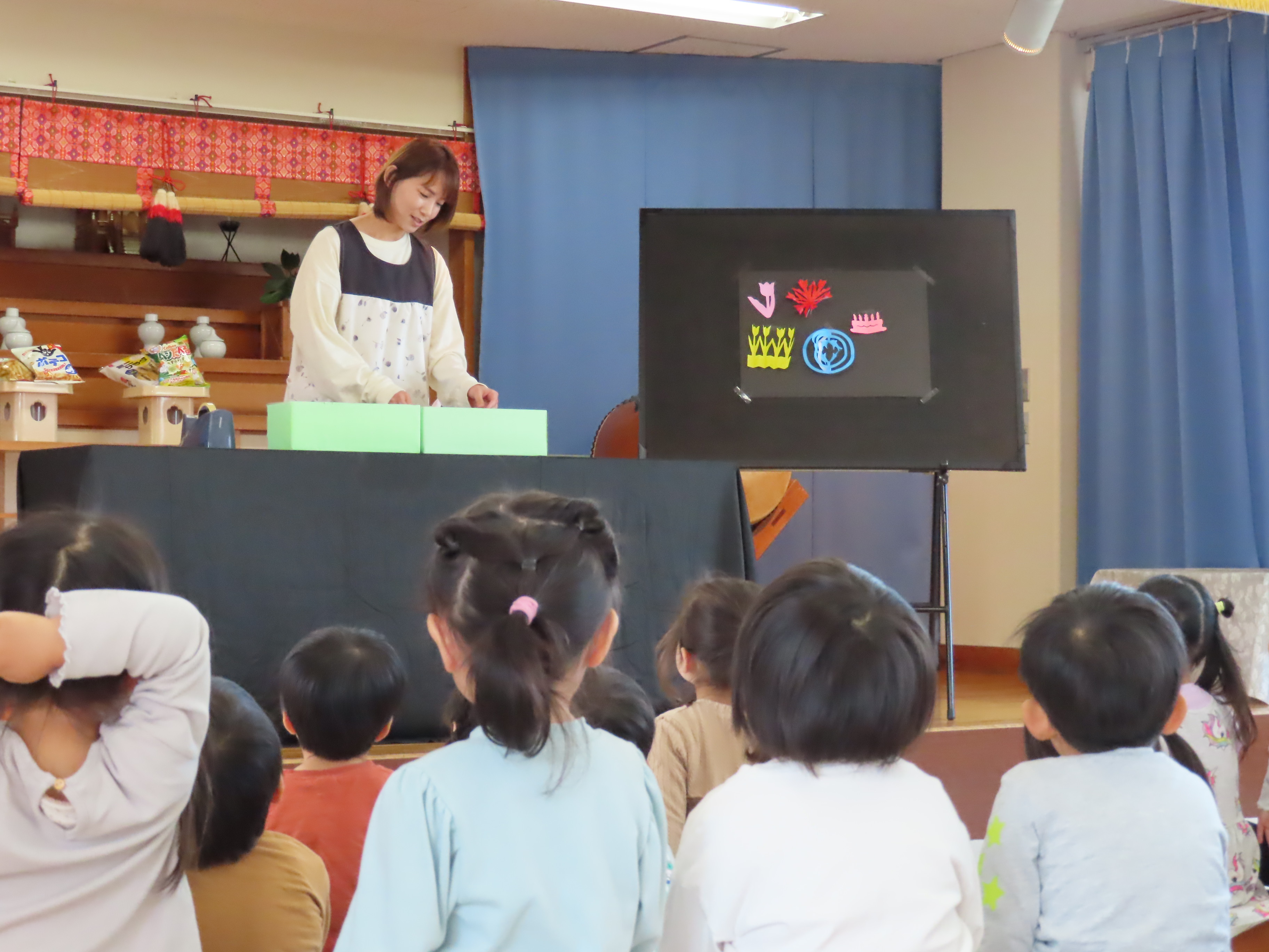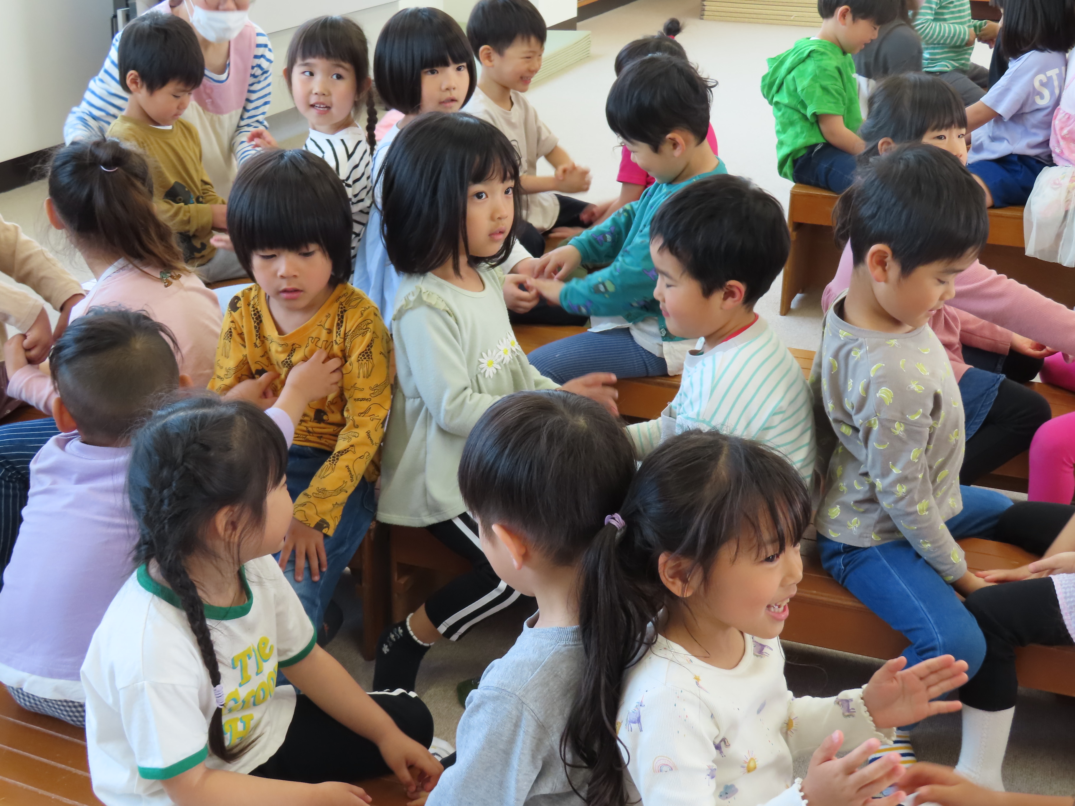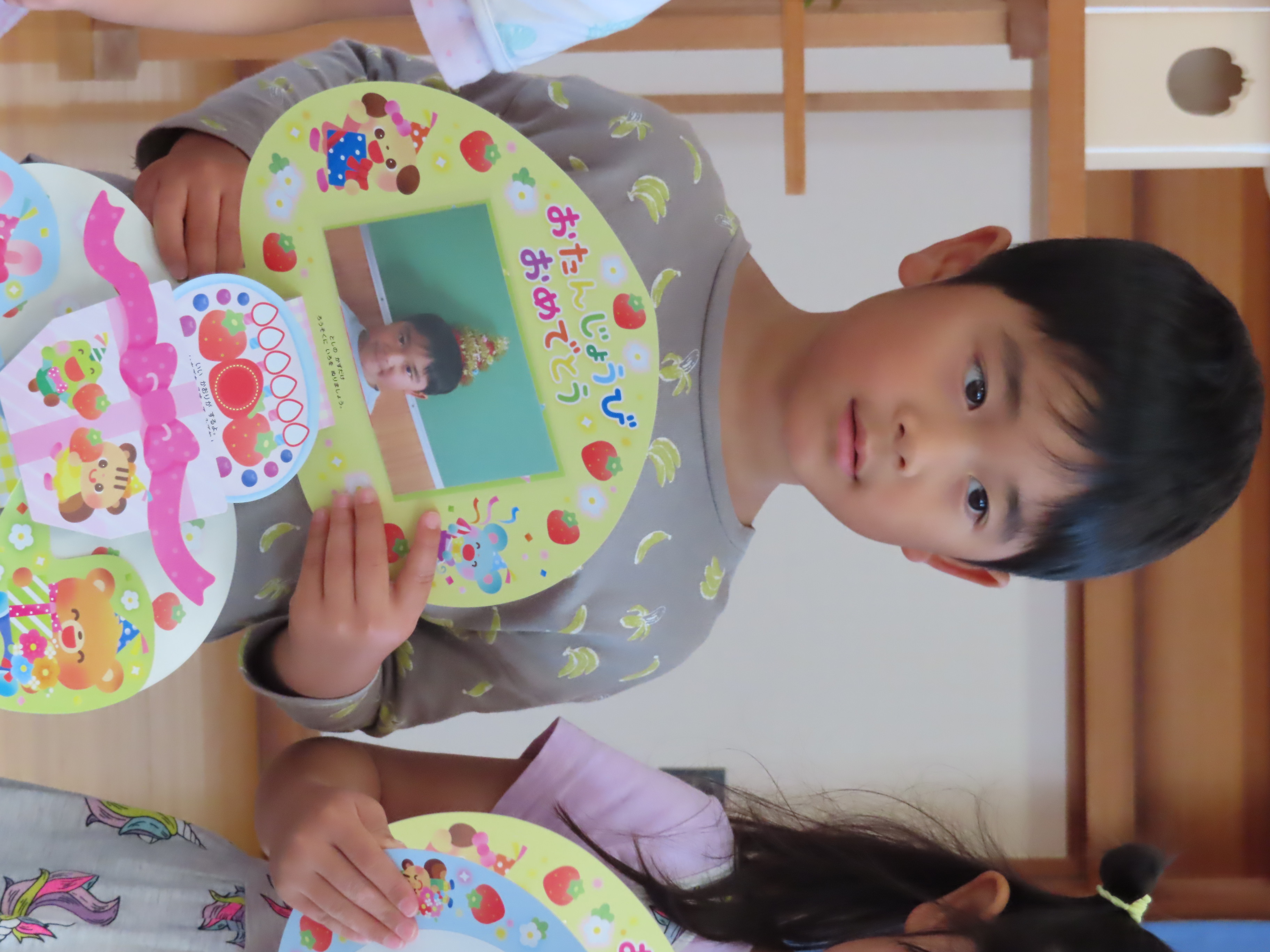 幼児クラスのお誕生会の様子です(*^_^*) お誕生児の紹介では、自分の名前と年齢をしっかりとみんなの前で言うことができていました!!保育士による出し物は、切り紙とマジックショー!‼切り紙は、どんな形にかわっていくのだろう?と期待いっぱいに保育士の手先を見つめ、いざ完成した切り紙をみると「すご~い✨」と感心していました!!マジックショーでは、なんで?どうして?と不思議そうにし、これまた「先生!すご~い✨」と拍手をたくさん送っていました(*^_^*) 誕生日を迎えるお友だち、おめでとうございます♡