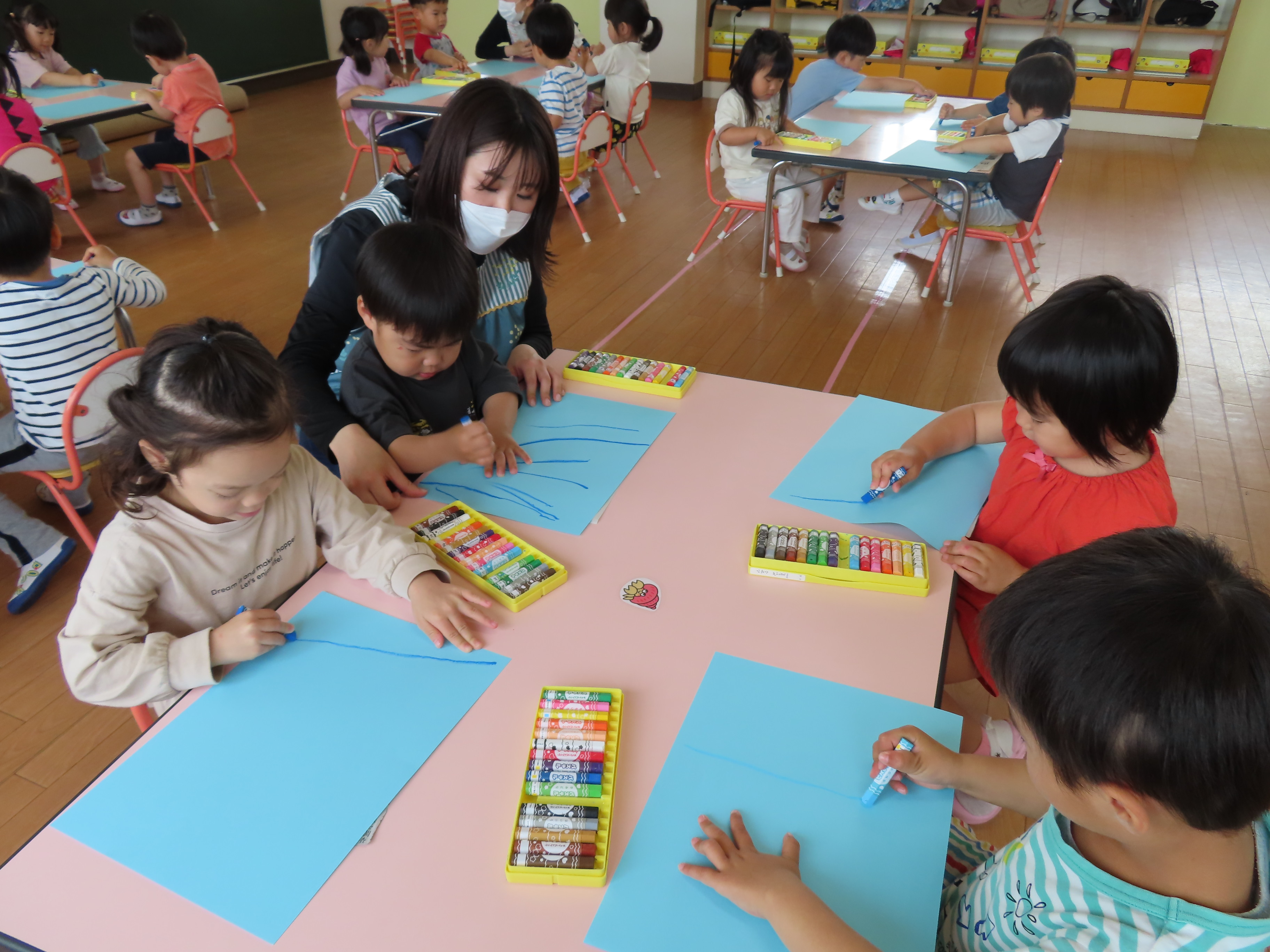 幼児クラスの参観日の様子です!幼児さんにもなると、「今日はお母さんが見にきてくれるから、頑張る!!」とみてもらえることを喜びと力に変えて、いつもより張り切って参観に臨む子がたくさんいましたよ(*^_^*)頼もしくなってきたものです!! 制作や集団遊びなど、真剣に取り組む姿を見ていただけたでしょうか?(*^_^*)