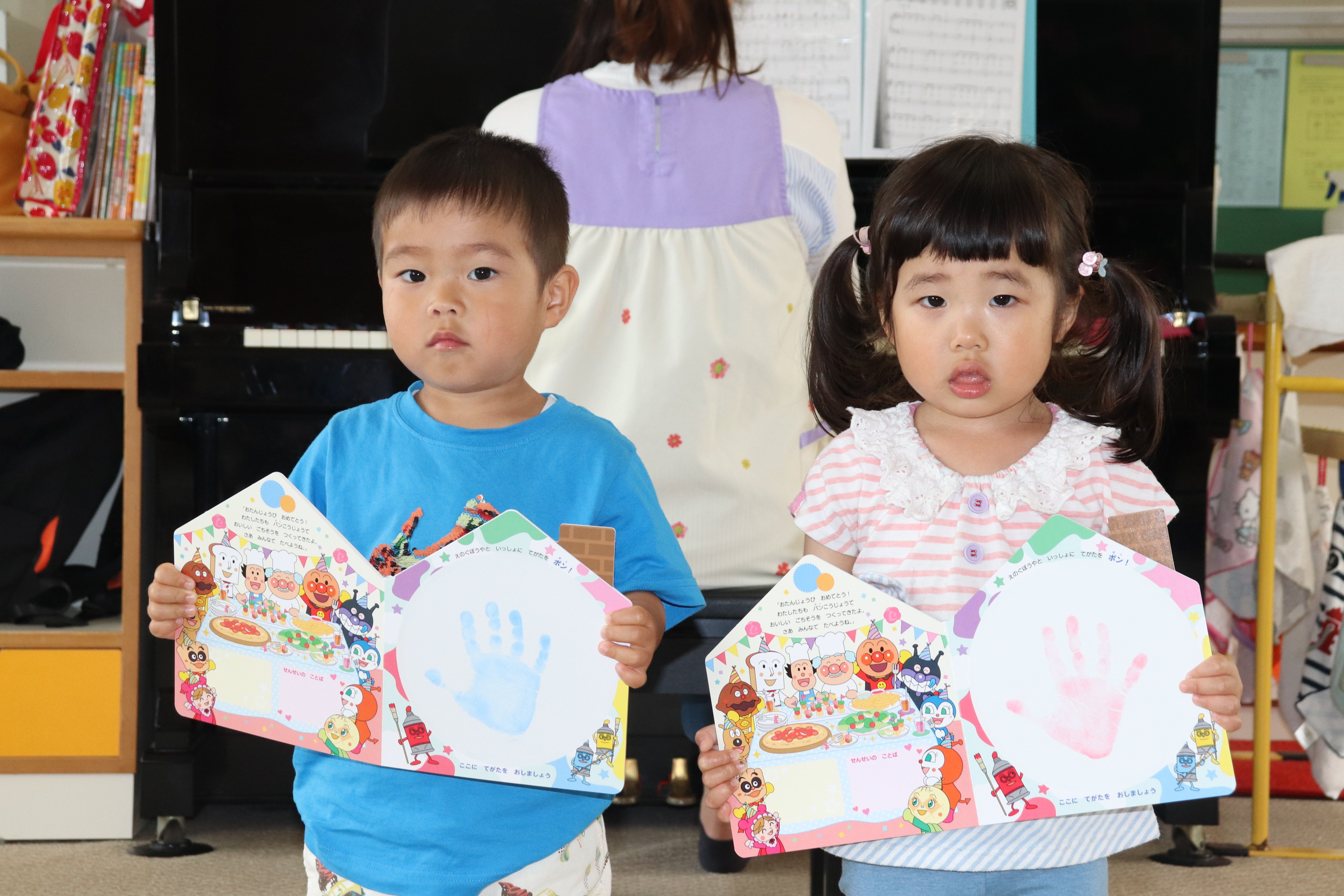 6月誕生会~2歳児クラス~2023年6月13日すみれ・たんぽぽぐみのお誕生会の様子です♪ 毎月各クラスからお誕生日のお友だちに「歌のプレゼント」をしています!今月すみれぐみは「おつかいありさん」たんぽぽぐみは「とけいのうた」どちらのクラスもドンドン上手に歌えるようになり、振り付けもできるようになってとてもかわいい♡です!来月からは幼児クラスのお友だちと一緒にお誕生会!楽しみですね。6月生まれさんお誕生日おめでとうございます(*^-^*) 施設情報愛媛県新居浜市にある児童福祉施設十全保育園げんきな子 がんばる子 やさしい子 楽しく食べるげんきな子児童福祉施設 十全保育園〒792-0011愛媛県新居浜市西原町2-3-12TEL:0897-33-3055 FAX:0897-33-3078十全保育園WEBサイト最近の記事2025年8月27日プール最終日~♪児童福祉施設 十全保育園2025年8月27日プール大会児童福祉施設 十全保育園2025年8月27日お茶のおけいこ児童福祉施設 十全保育園2025年8月12日職員会児童福祉施設 十全保育園2025年8月7日いっぱいあそんだよ♪~つぼみ・ちゅうりっぷ・もも~児童福祉施設 十全保育園2025年7月25日サマーキッズカーニバル♫児童福祉施設 十全保育園十全保育園の記事一覧