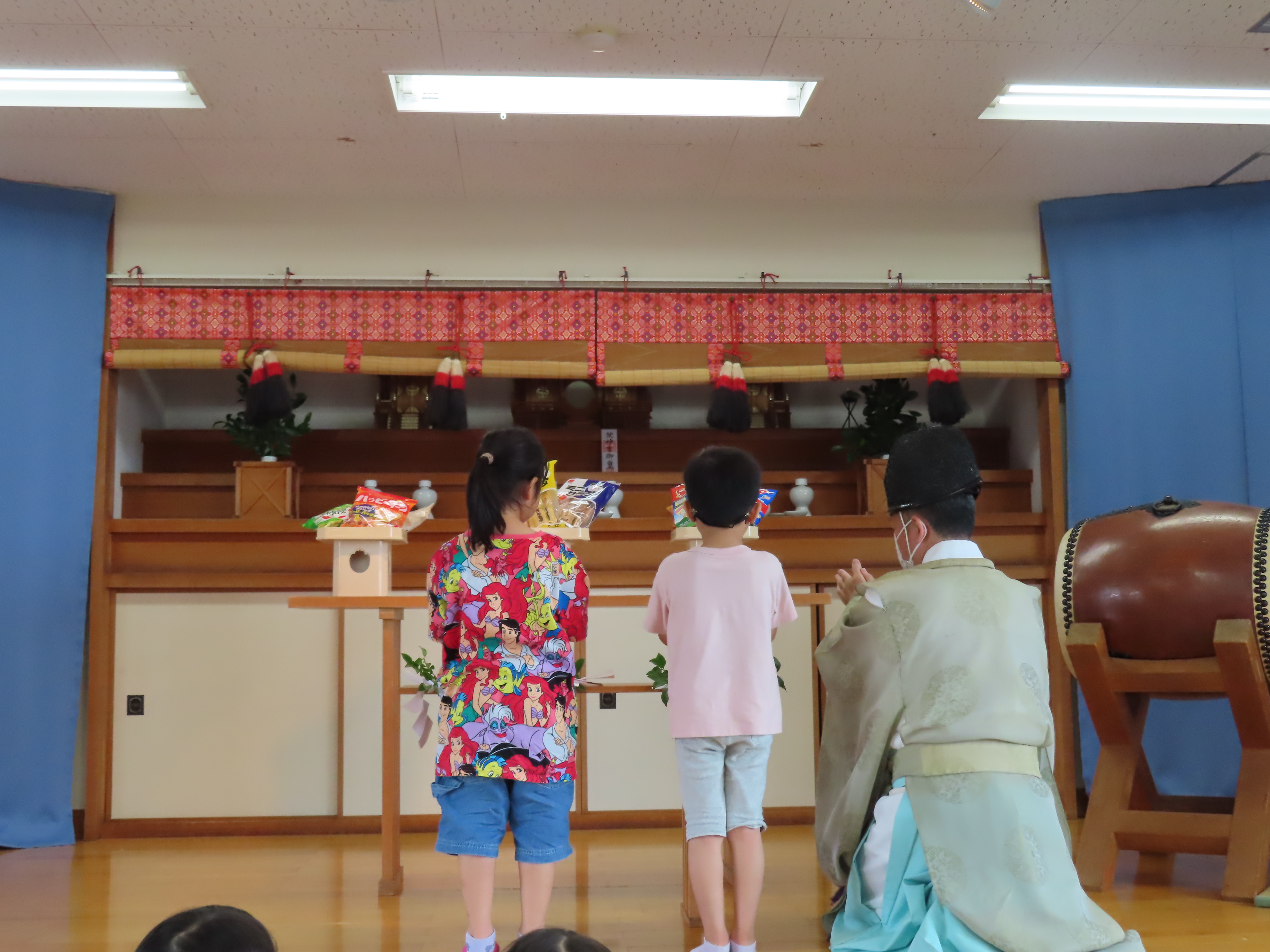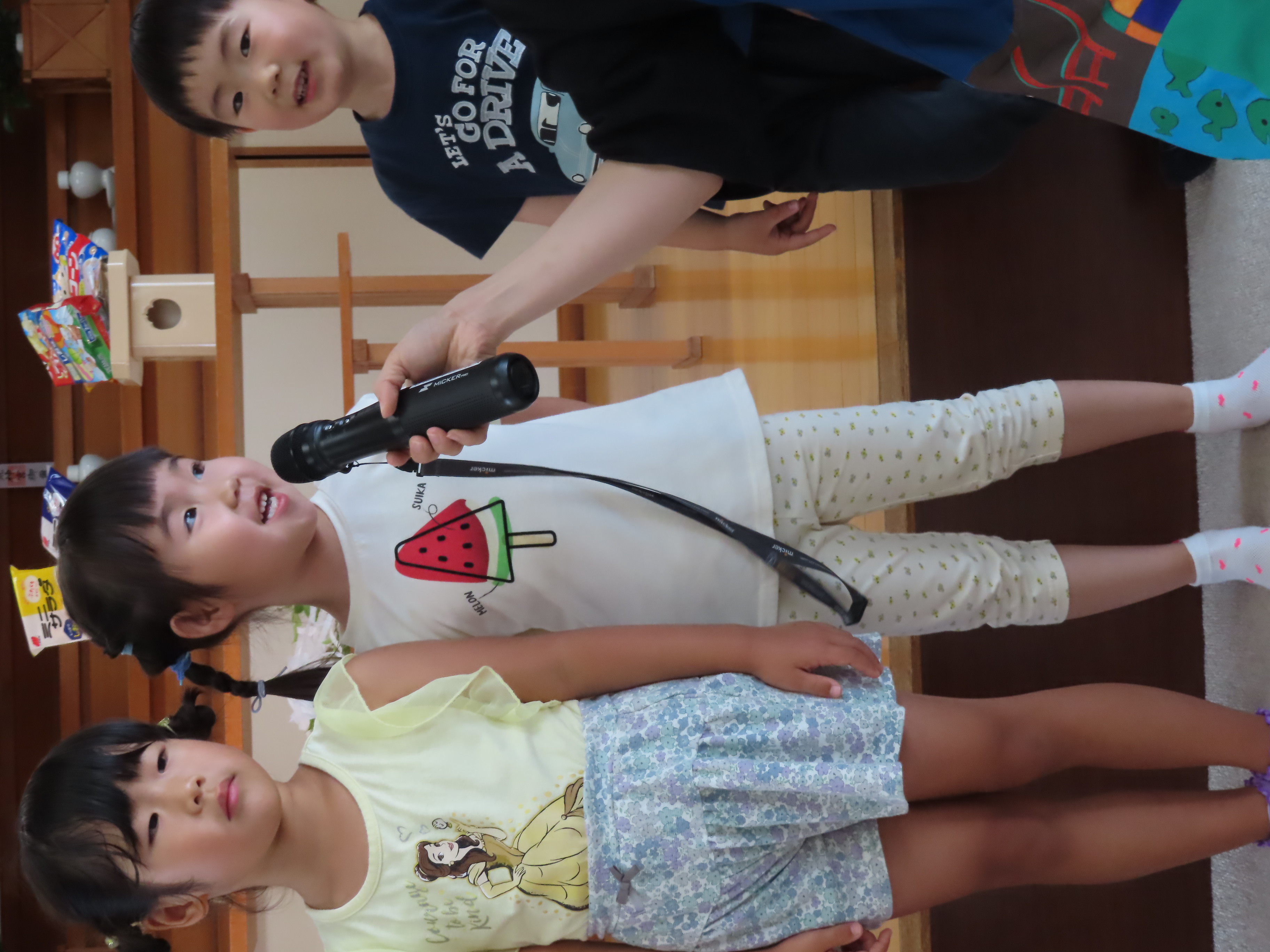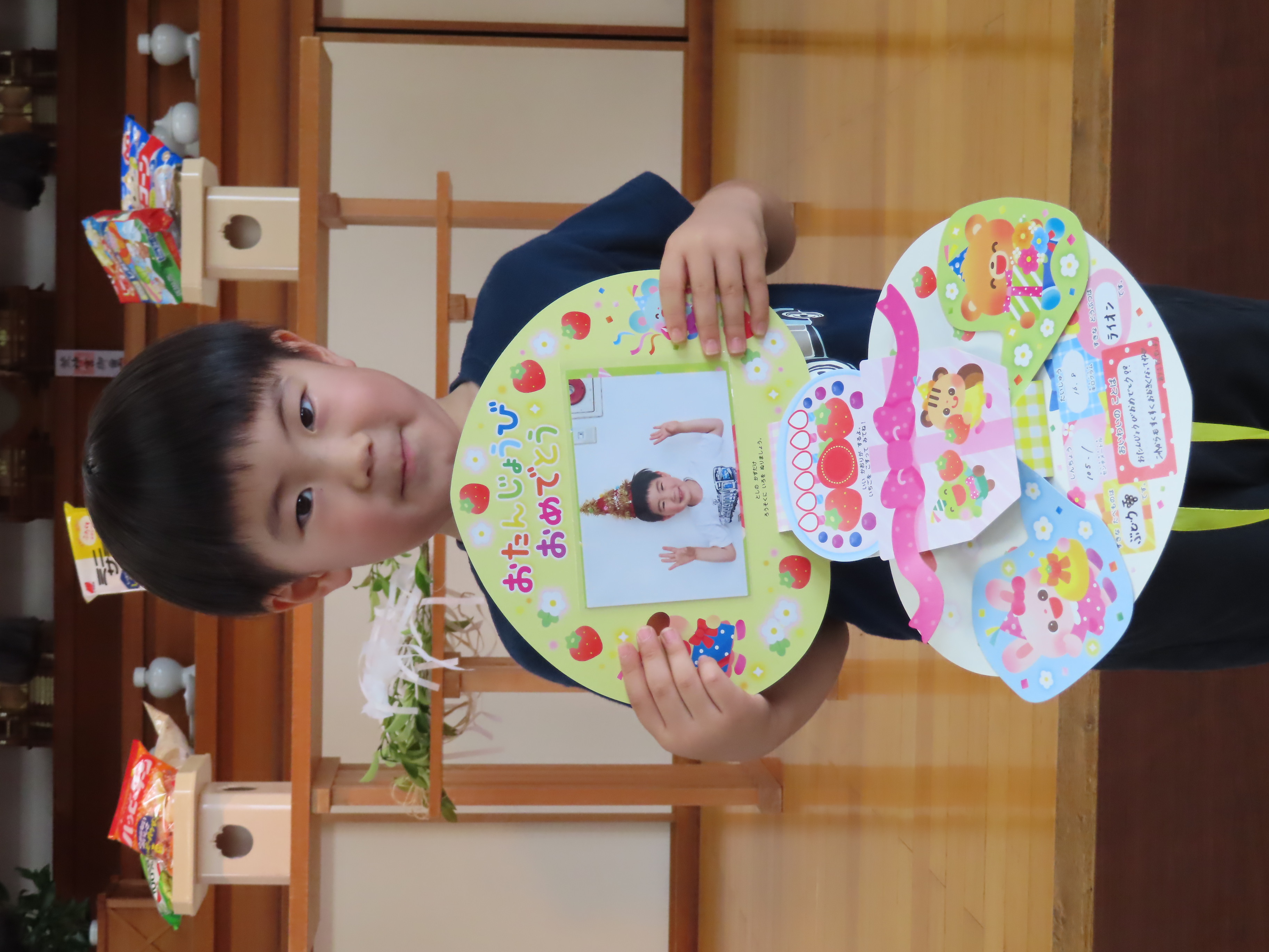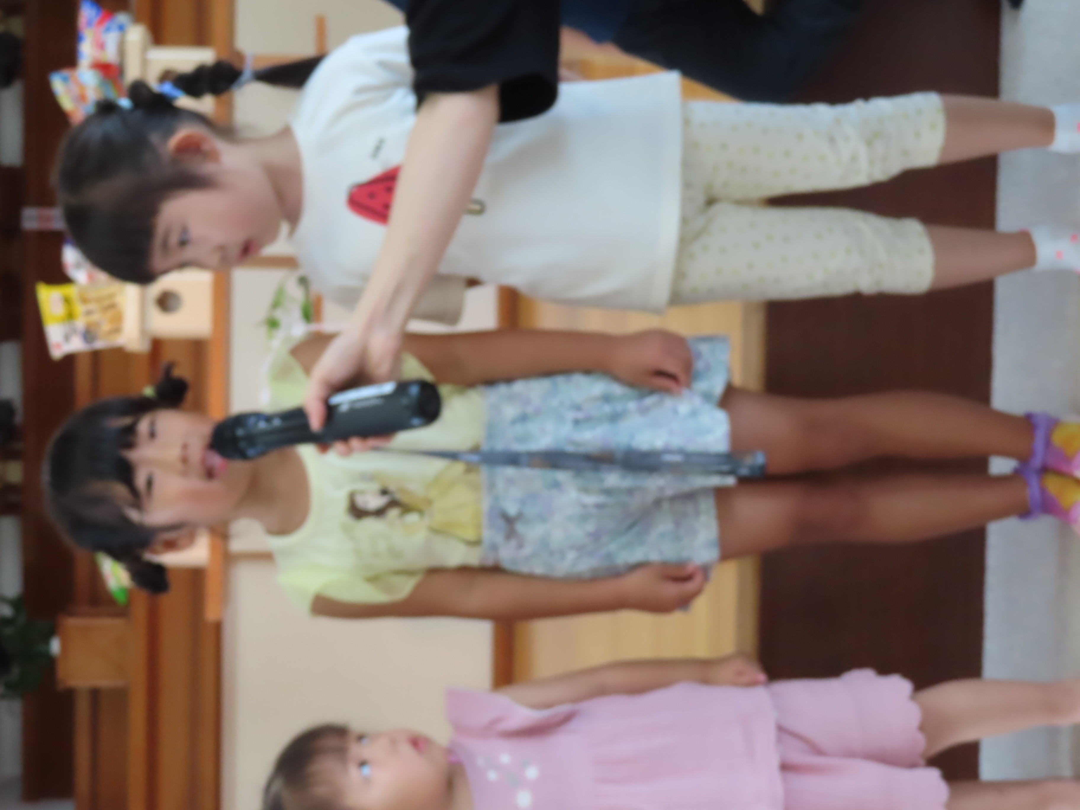 7月の誕生会の様子です(*^_^*)今月から、2歳児クラスのすみれ組とたんぽぽ組も幼児クラスと一緒に4階での誕生会に参加です♪ 今から何が始まるの~!??と興味いっぱいに静かに様子を見つめる2歳児さん達の表情がなんだかおかしいやら、かわいらしいやら(#^^#) 歌のプレゼントもしっかり前に出て‼歌ってくれました♪ これから、幼児クラスと同じ活動も増やしながら、色々な行事も楽しんでくれたらと思います♪ 7月生まれのお友だち‼!お誕生日おめでとうございます(^^♪
