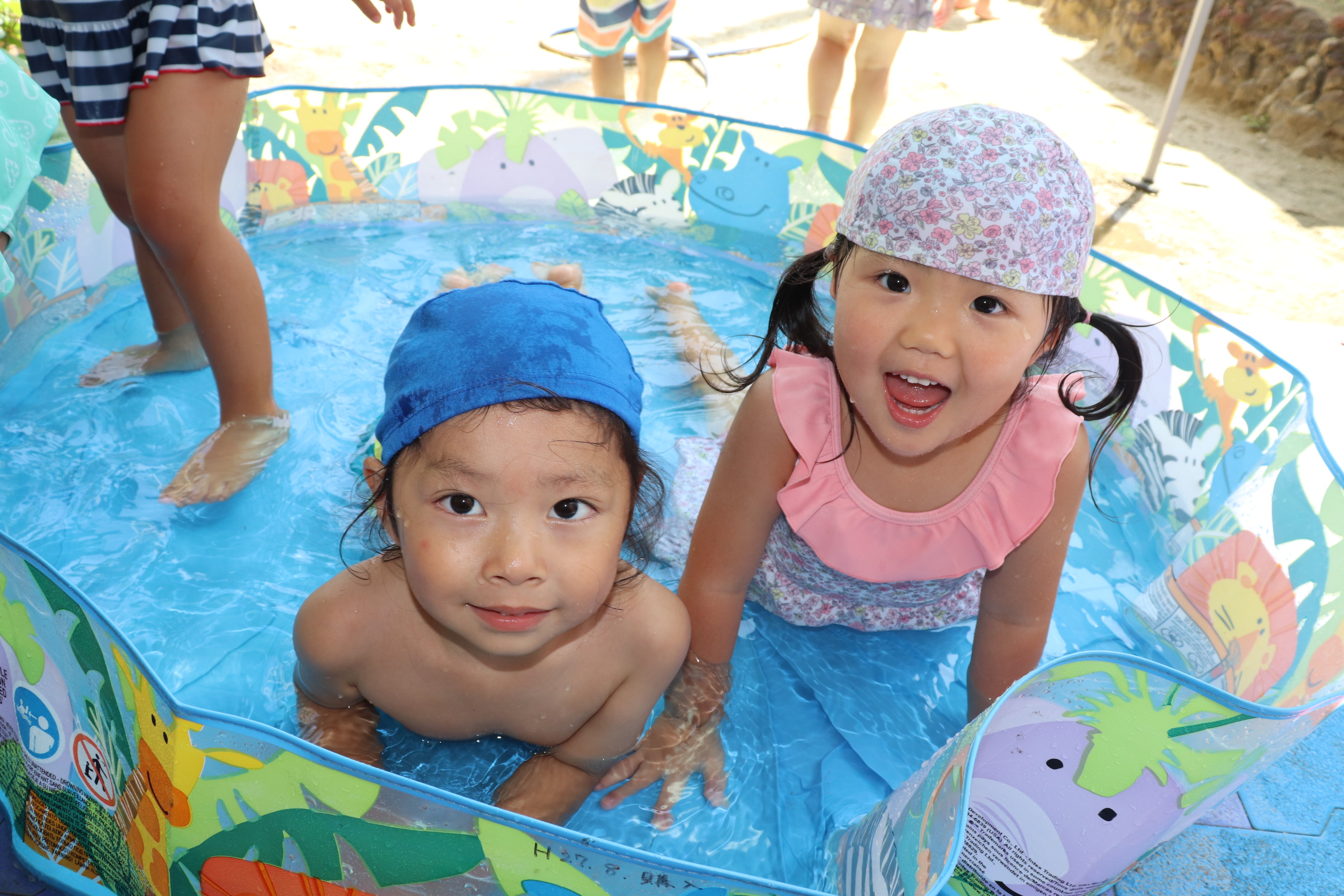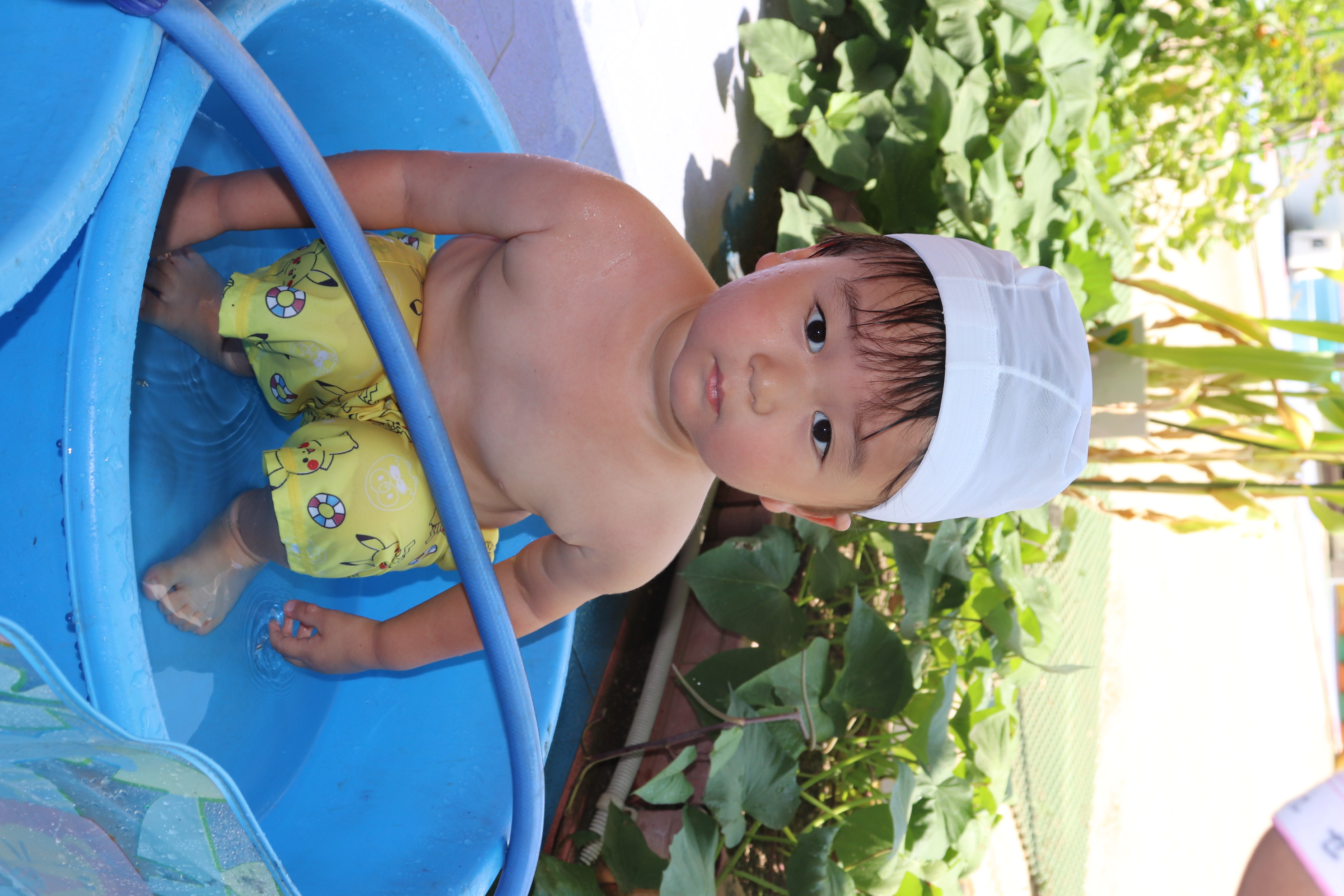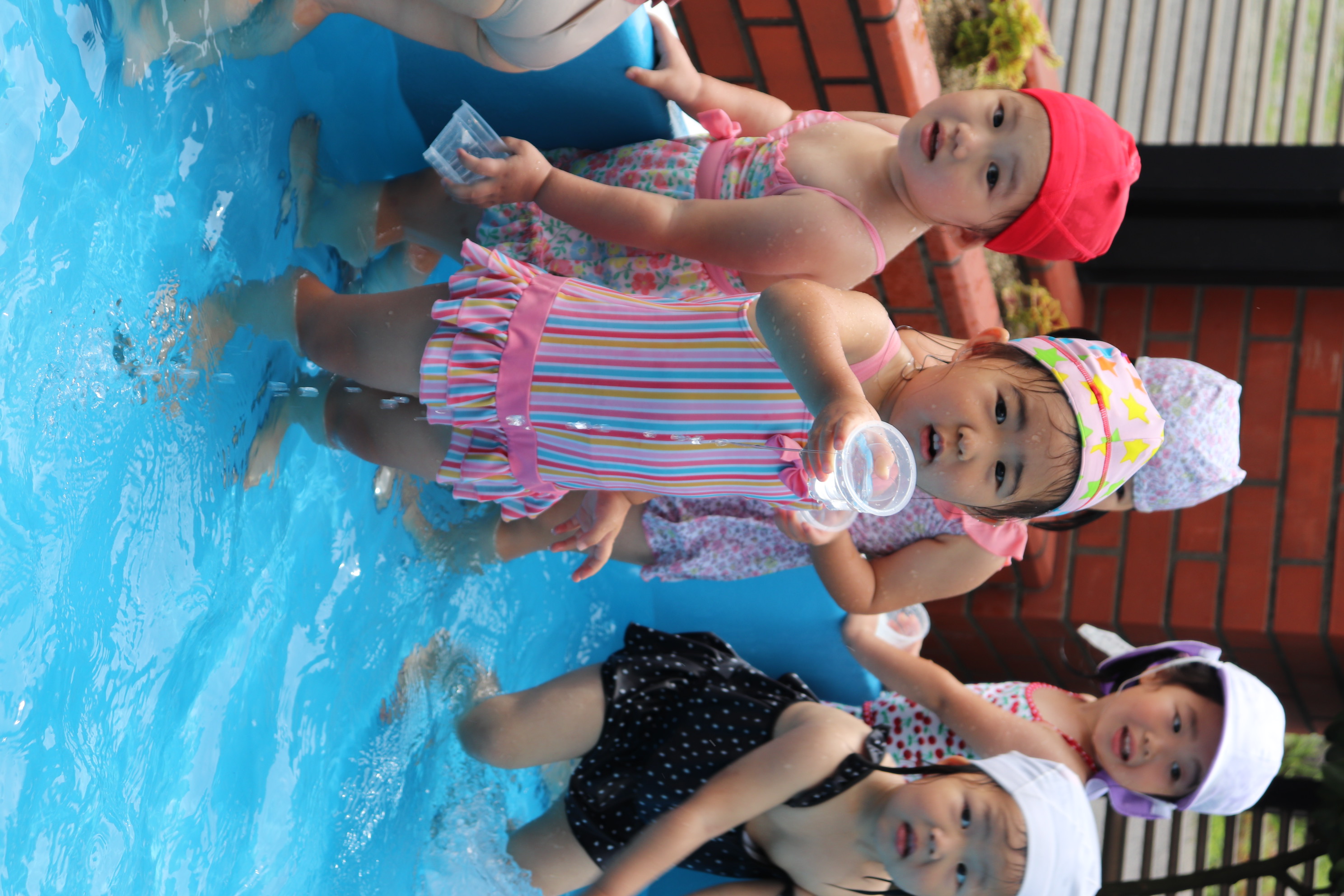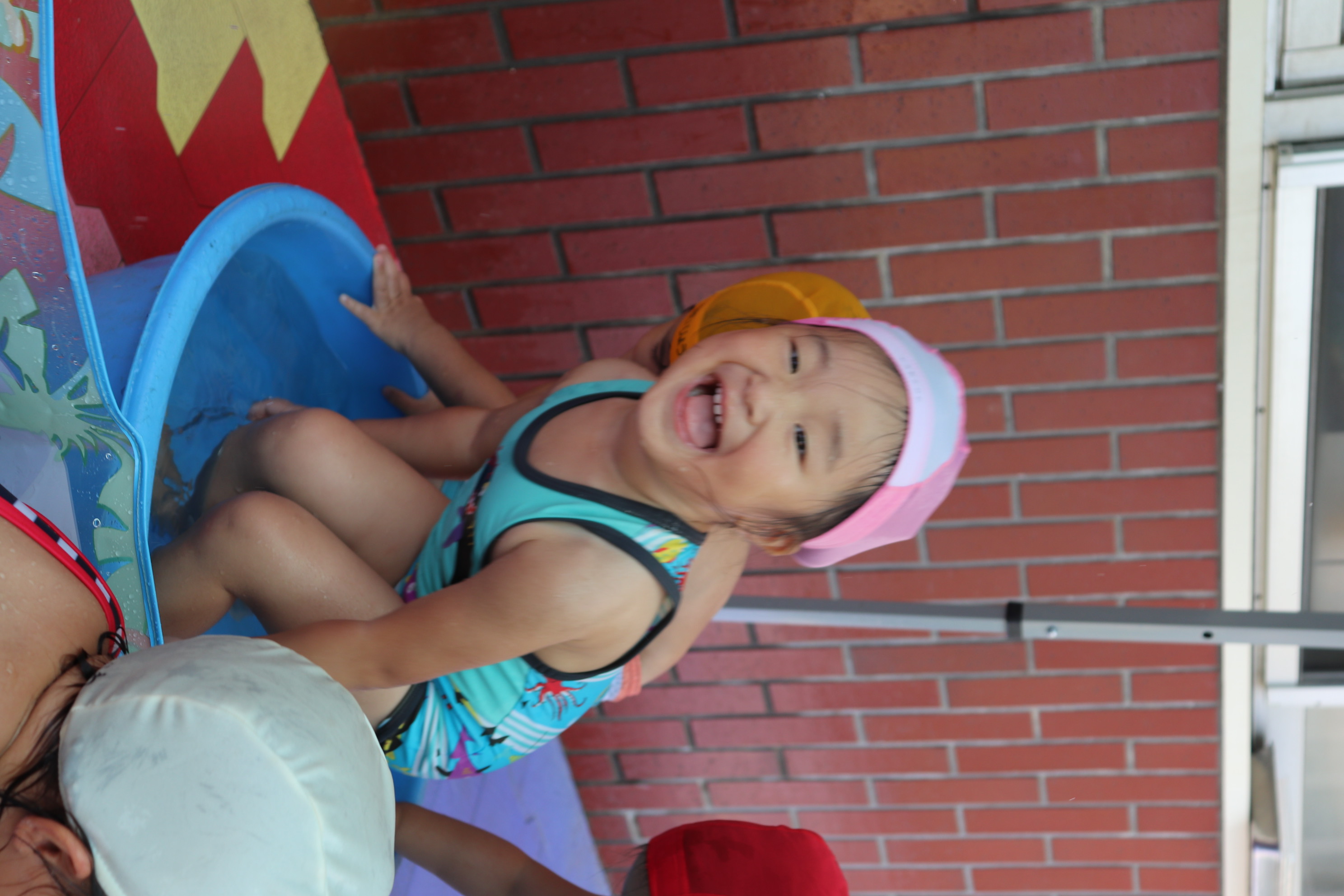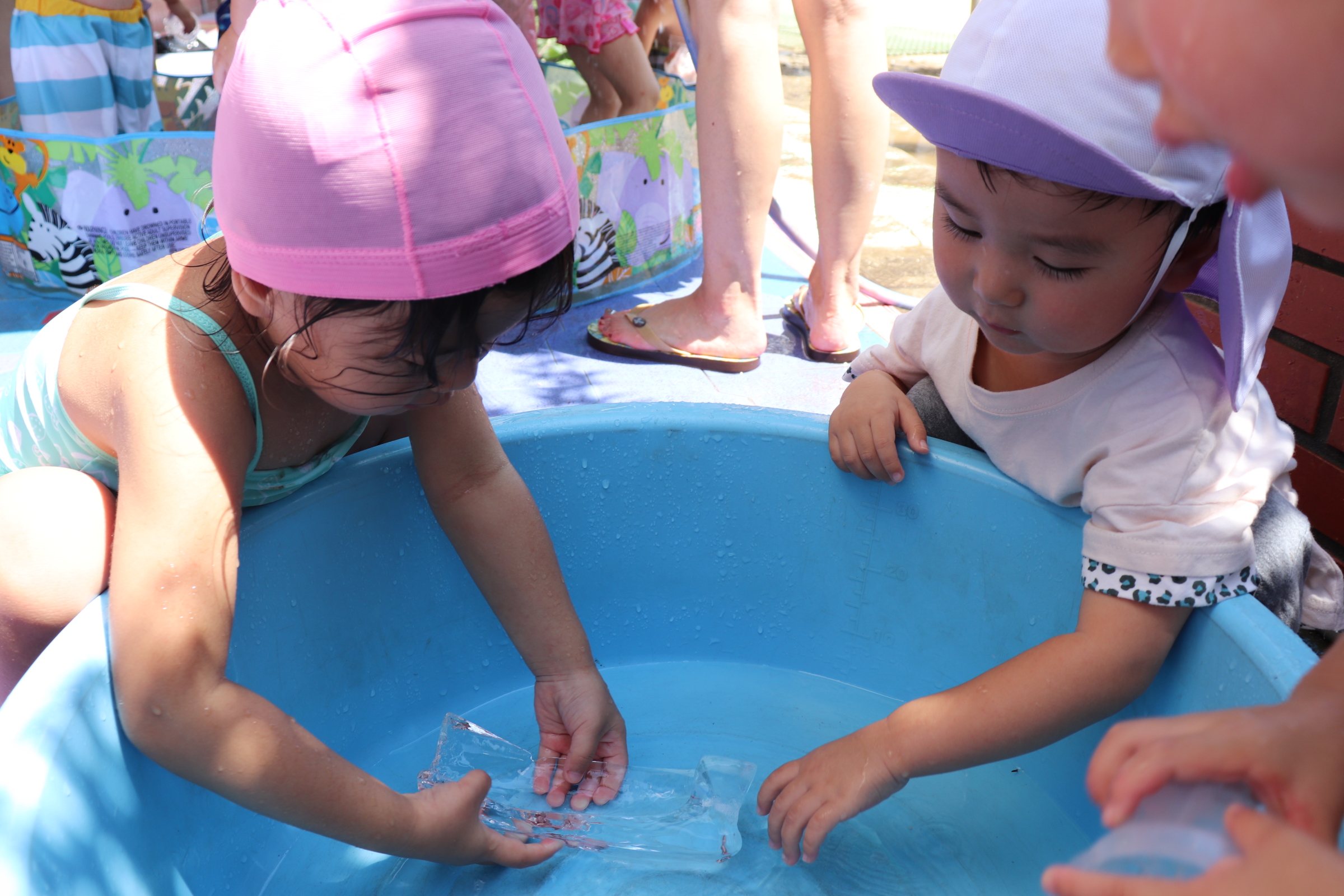 今年から、幼児クラスと同じ大きなプールでのプール遊びができるようになり、ご覧の通り最っ高に楽しんでいるすみれ組です(*^_^*) 隙あらば、保育士に向かって水をかけてくれるヤンチャな子どもたちです(^^)/ 氷遊びや色水遊びなど、色々な夏の遊びを設定しながら毎日元気に‼楽しんでいます!!