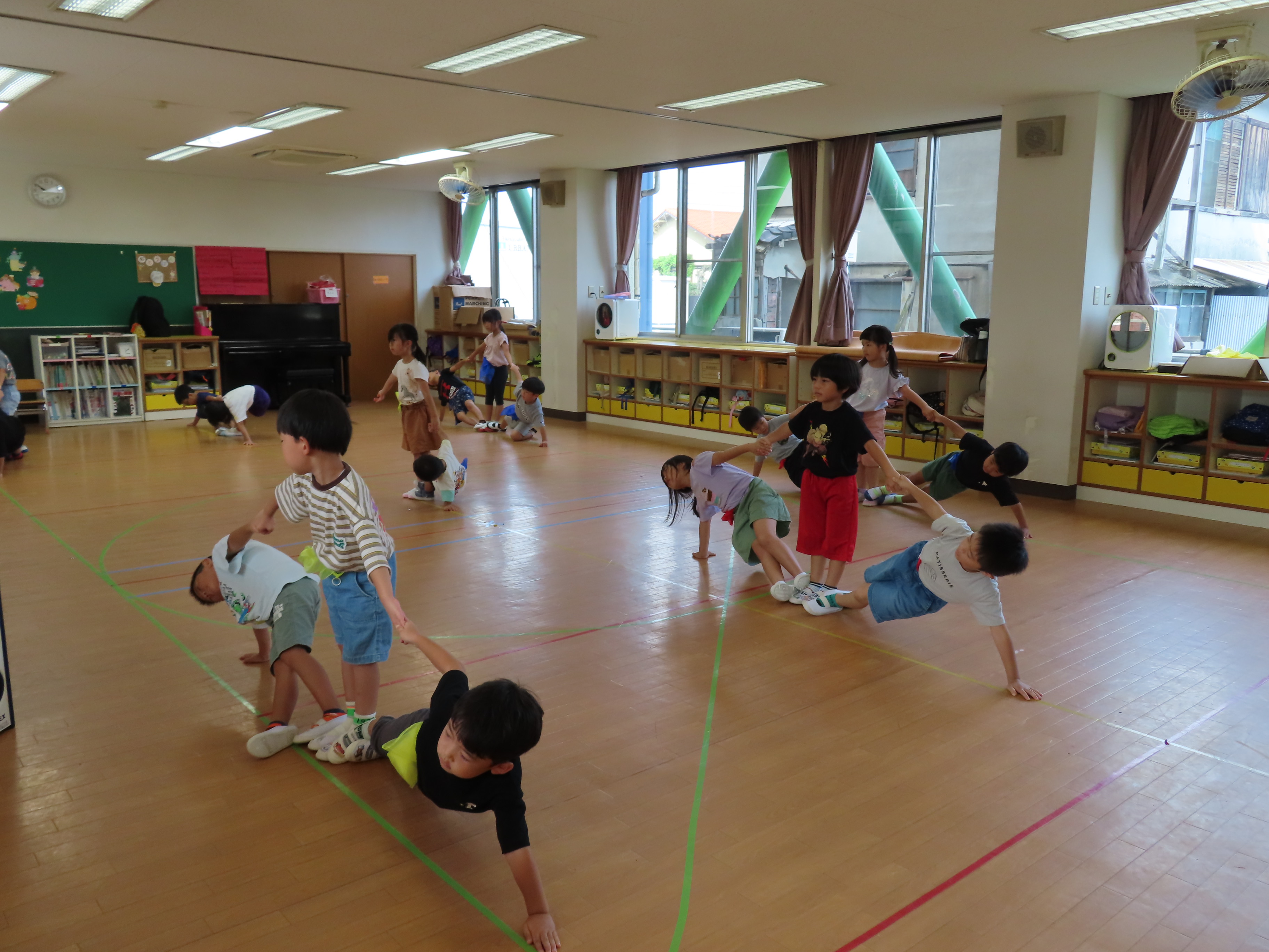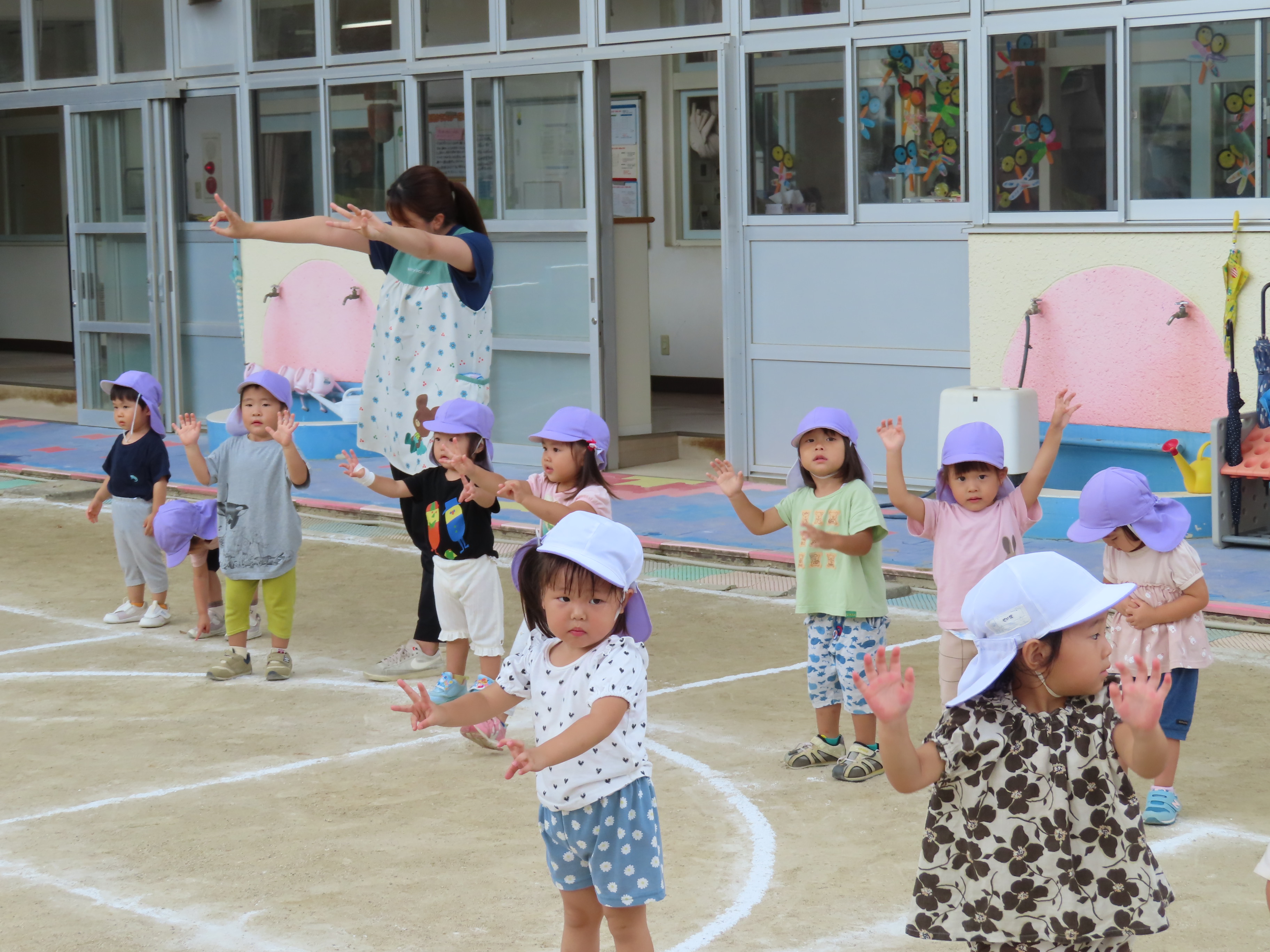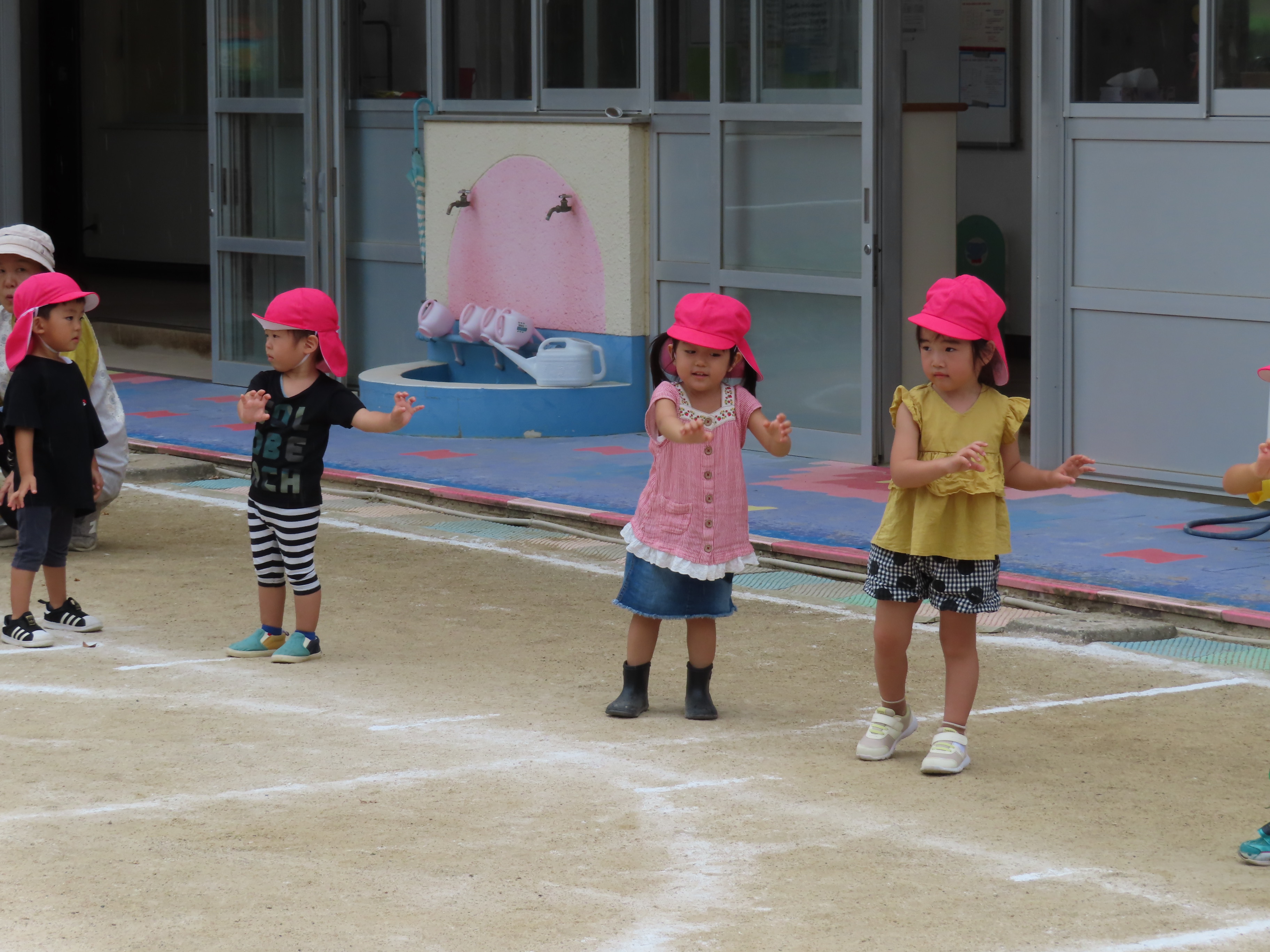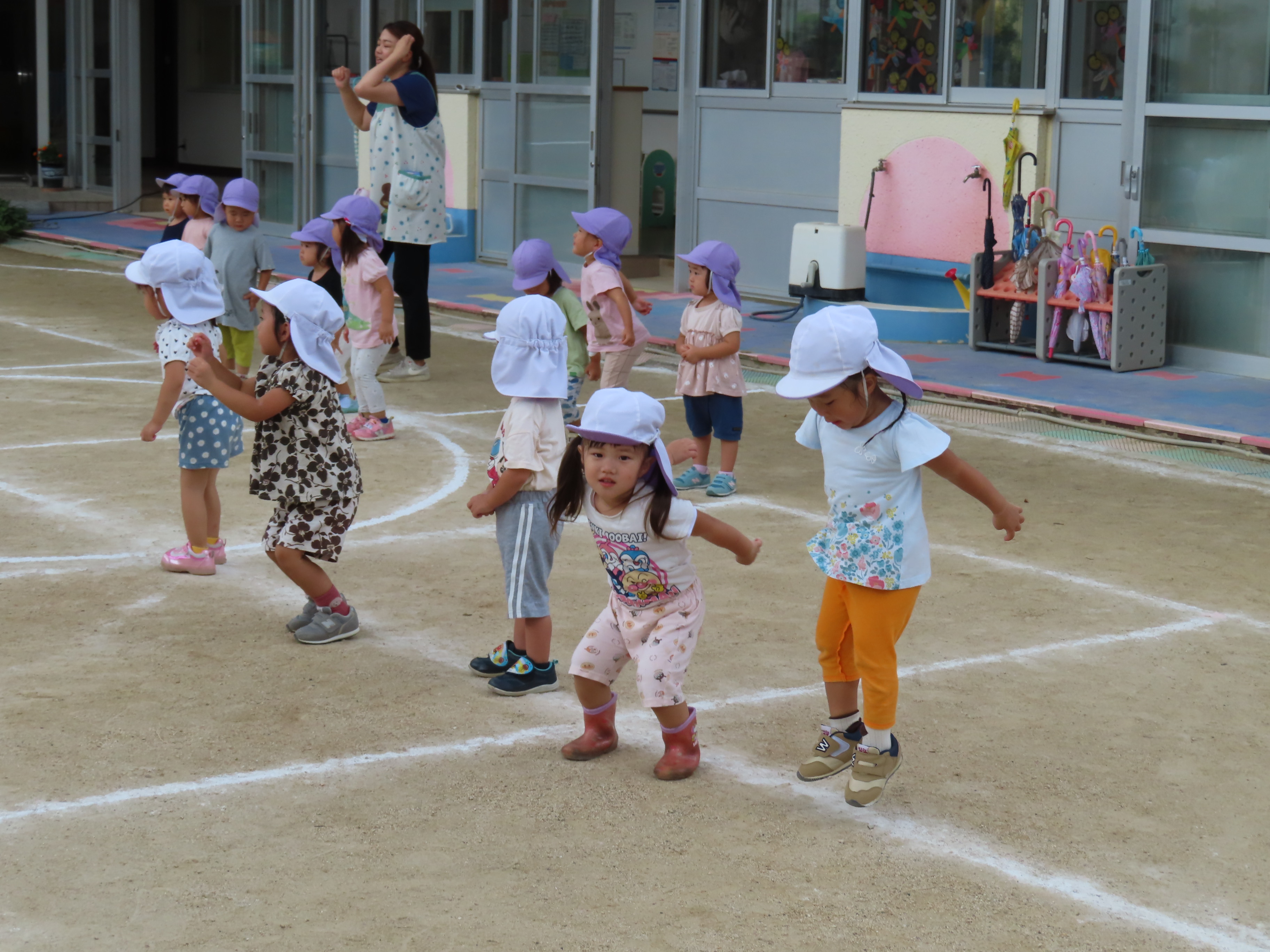 もうすぐ10月!!というのに、日中はなかなか涼しくなりませんね(*_*; さて、暑さはまだまだ続いてはいますが、今月から運動会に向けて練習を開始し、子どもたちは毎日頑張って取り組んでいます!!特に年長児さんたちは、憧れていた鼓隊に胸をワクワクさせながら、練習しています(*^_^*) 今年度は、通常のプログラムに戻して、全クラスの子どもたちが運動会に出場です♪本番までのお楽しみでもあるので、あまり写真を載せることができませんが、練習の様子を少~しだけおみせしたいと思います♪