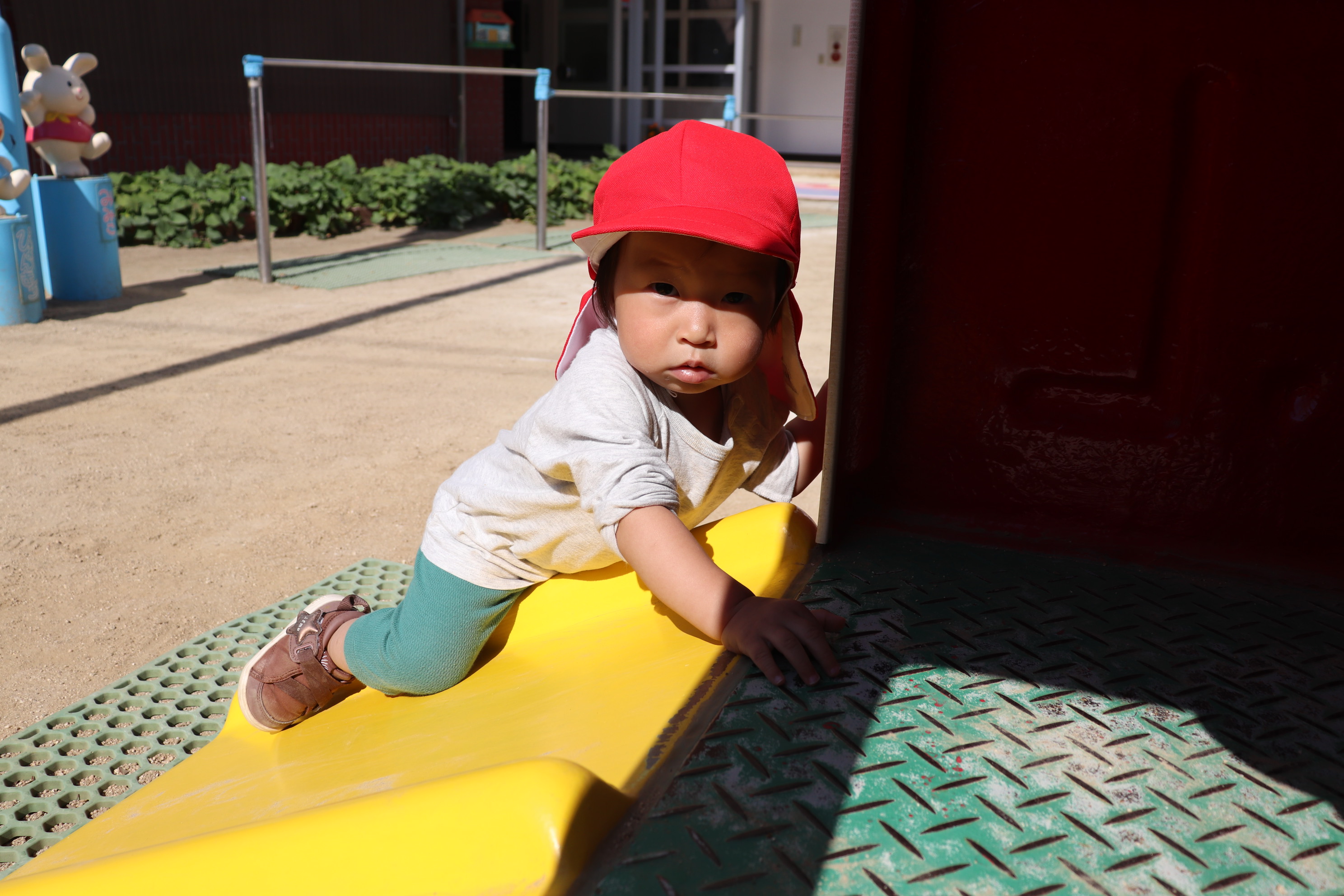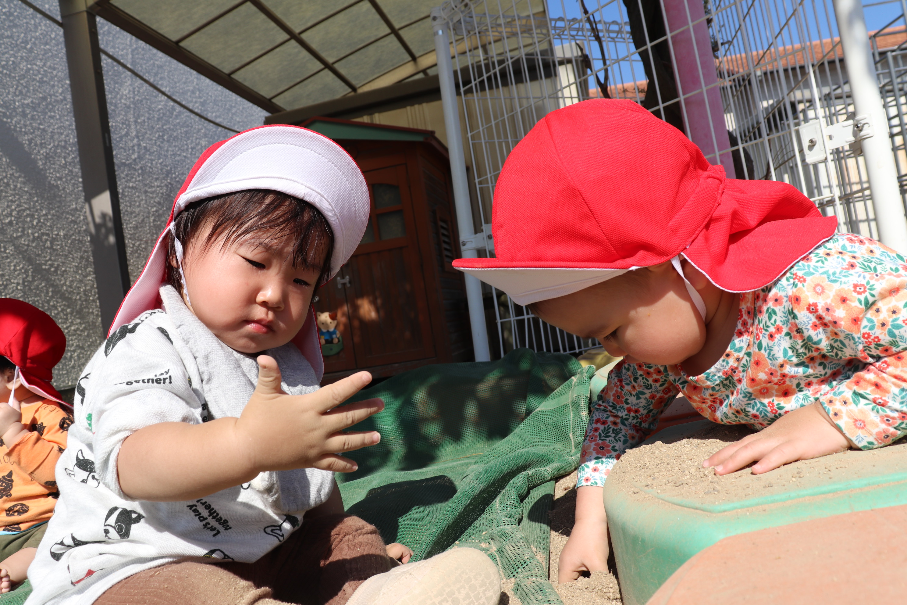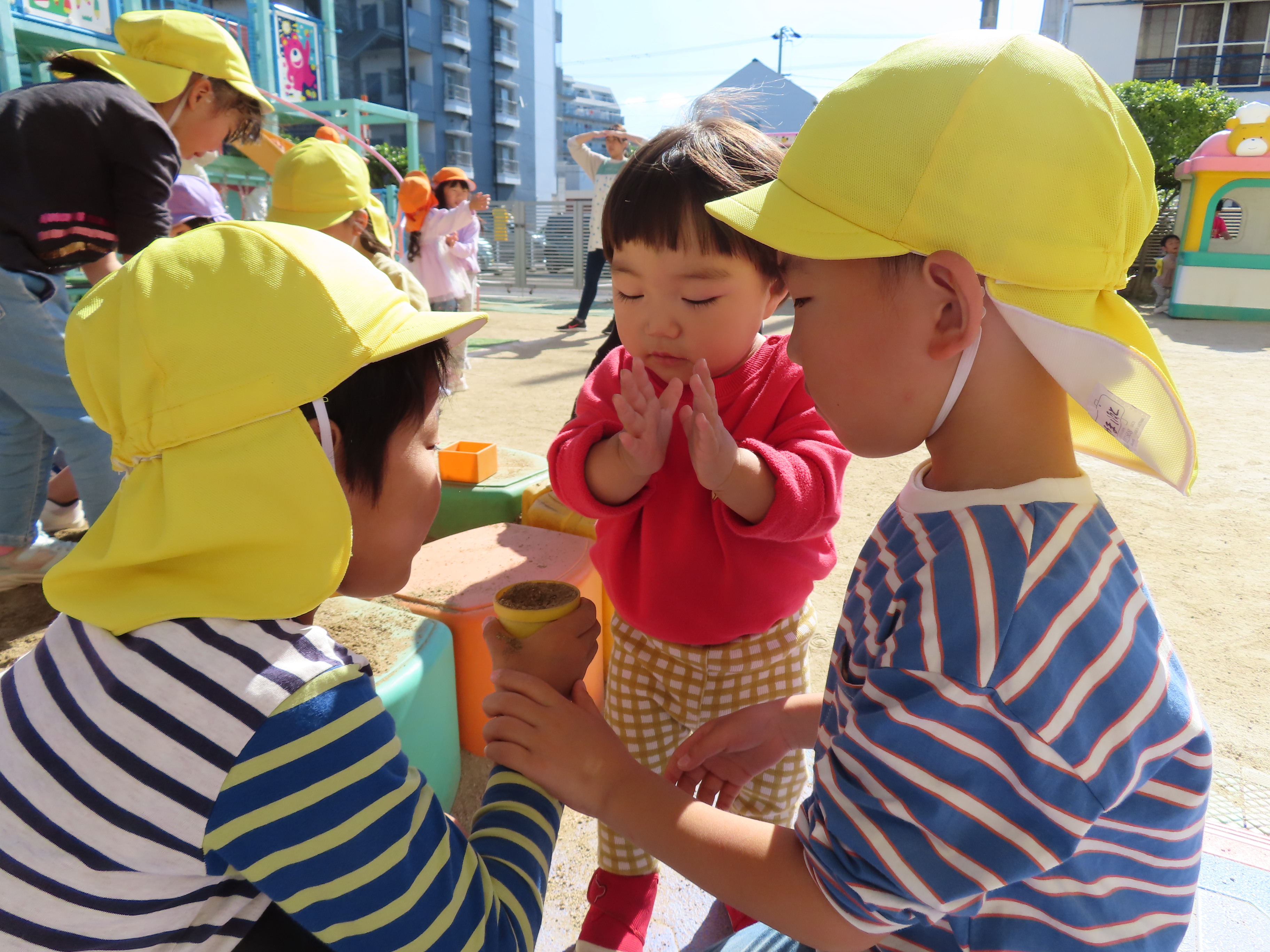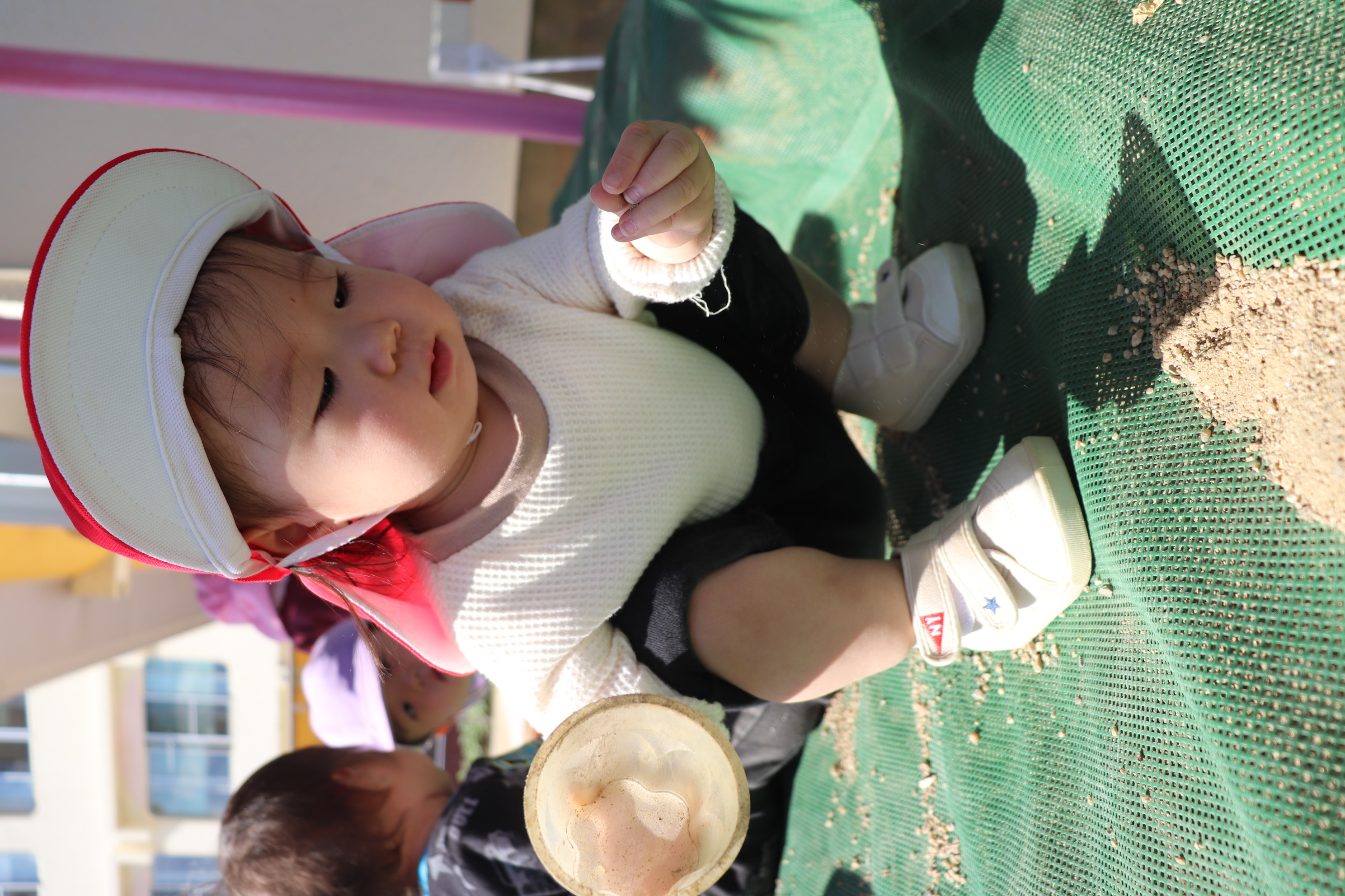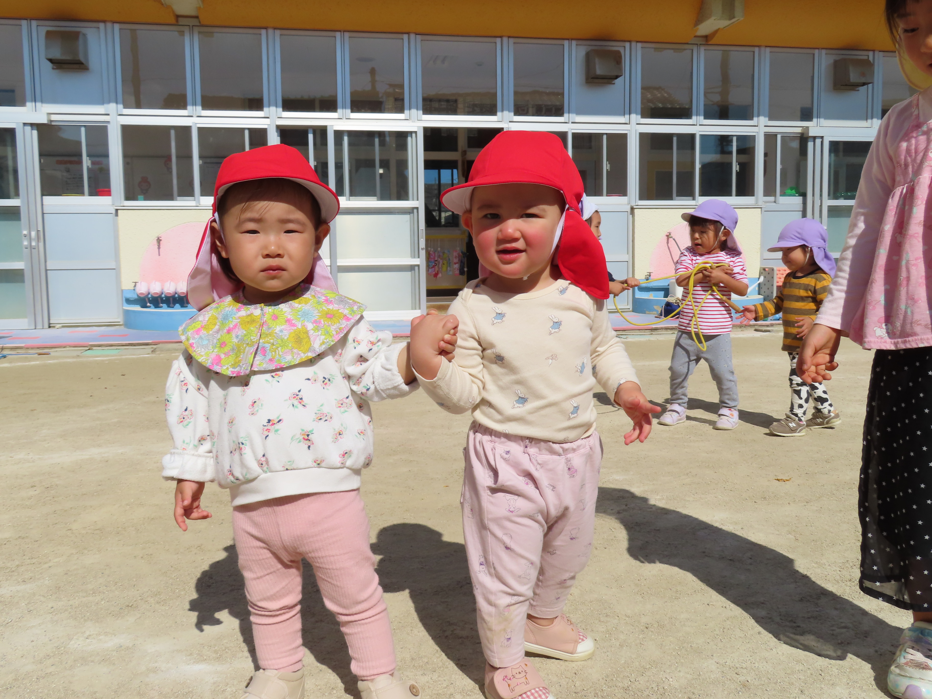 お外遊び、第2だ~ん!!0歳児の小さな子どもたちも、自分で上手に歩けるようになって、靴をはいて歩く喜ぶを感じながらお外遊びも楽しんでいます(*^_^*)