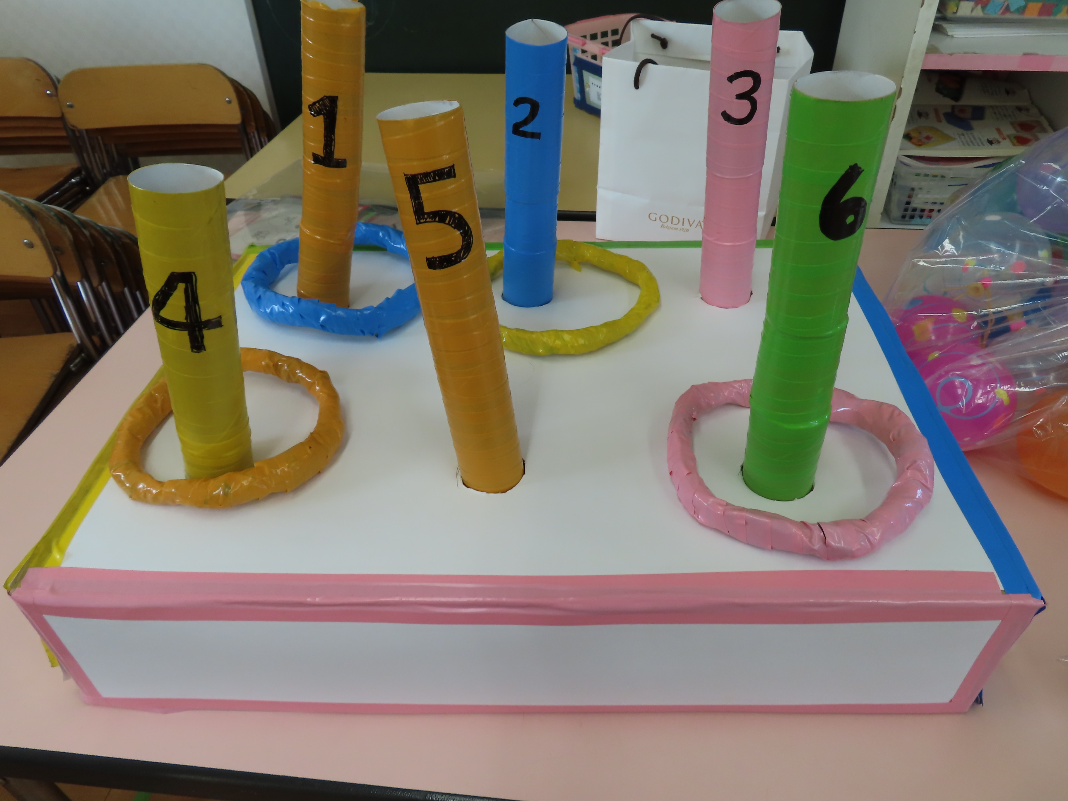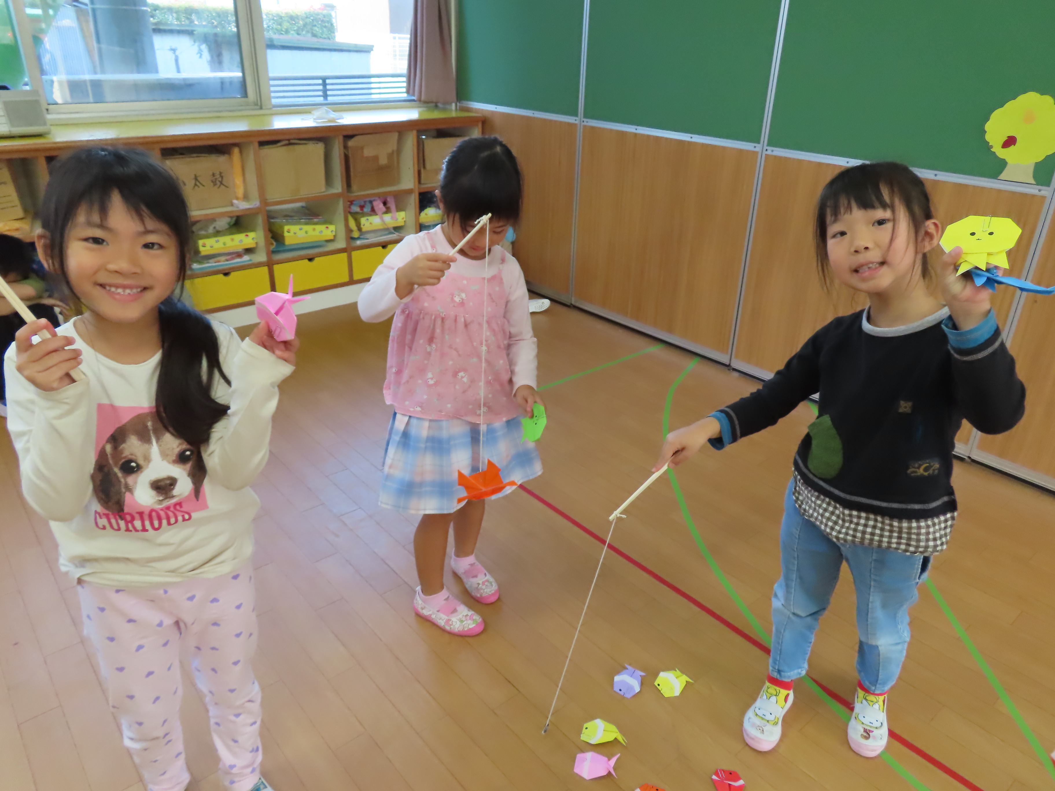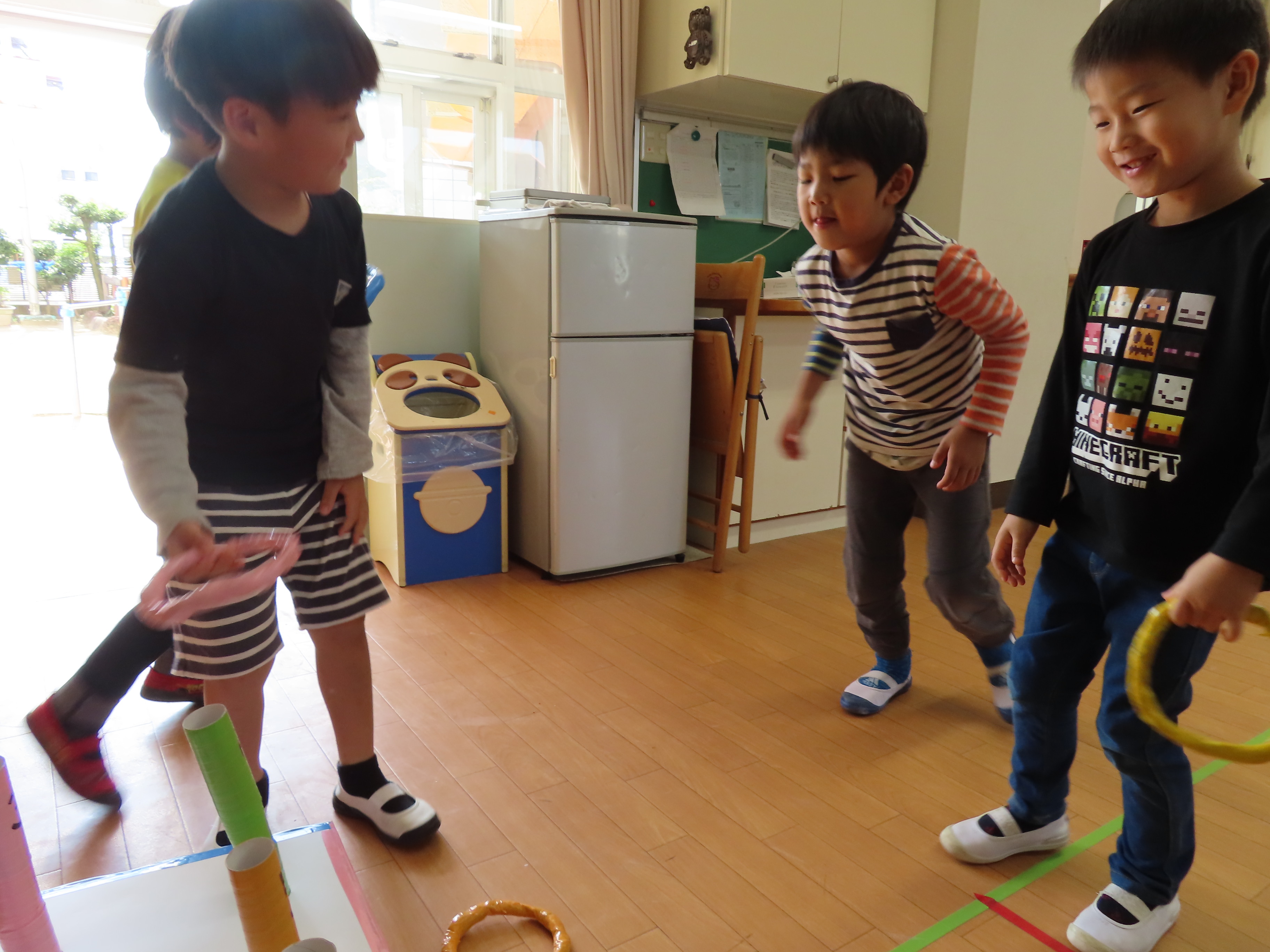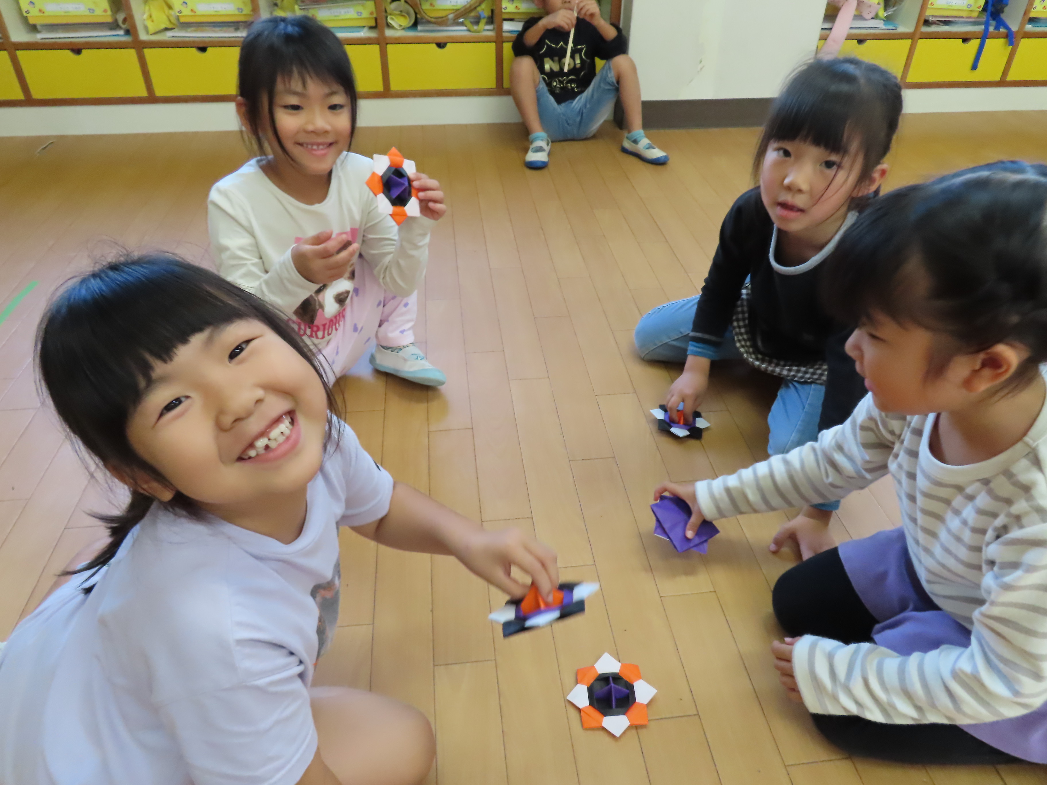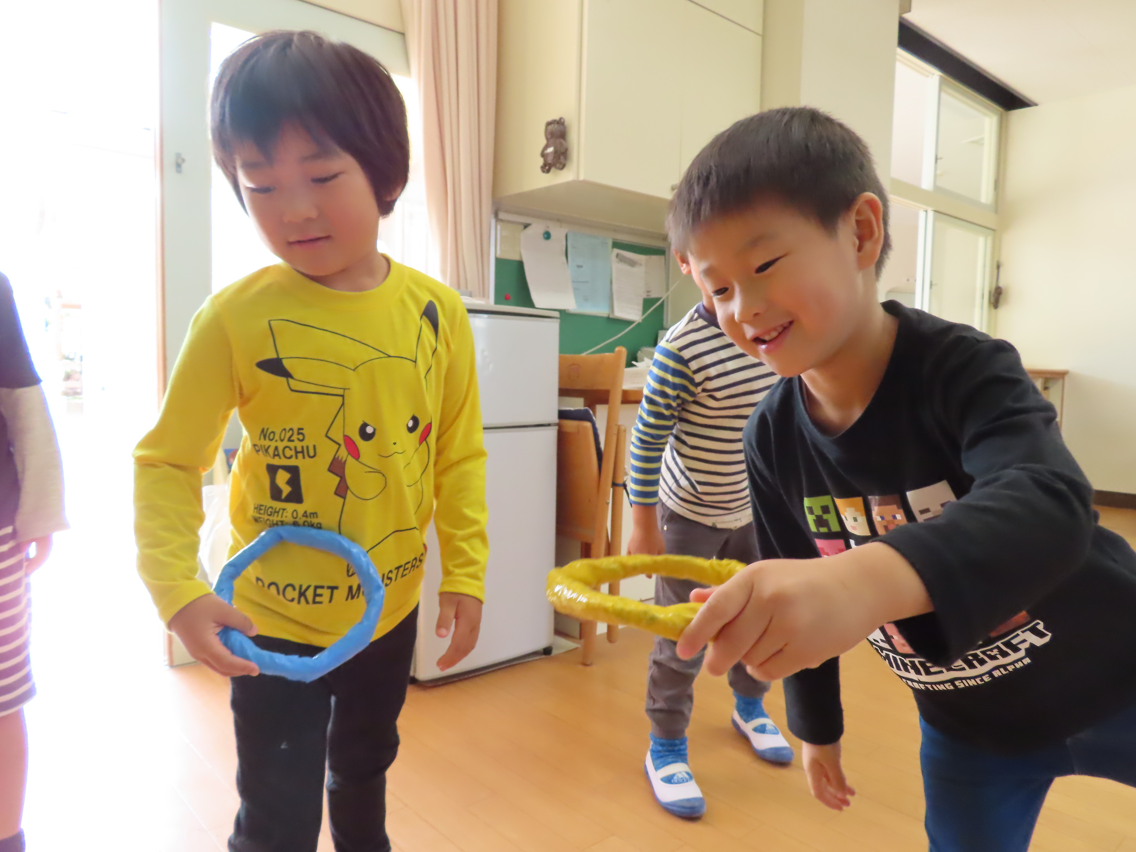西校生の1年生が、子どもたちと交流するために来園してくれました。本来なら、大勢の学生さんたちが来てくれて、子どもたちと一緒に遊んだりと楽しい時間を持つ予定だったのですが、インフルエンザの感染回避のため代表の4名が園にきてくれ、学生さんたちが作ってくれた手作りおもちゃを子どもたちにプレゼントしてくれました。一緒に遊べなかったのは残念でしたが、クイズゲームをしたり、子どもたちからの歌のプレゼントを聞いてもらったりと少しの時間ではありましたが、一緒に楽しい時間を過ごしました(*^_^*) 頂いた手作りおもちゃで、楽しく遊びたいと思います♪ 学生さんたち!ありがとうございました。