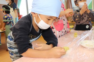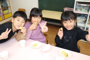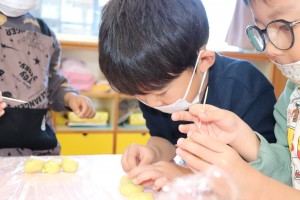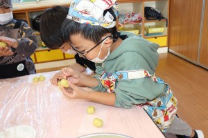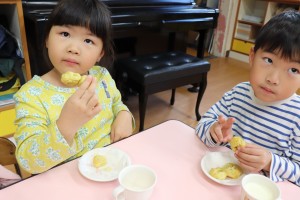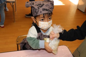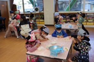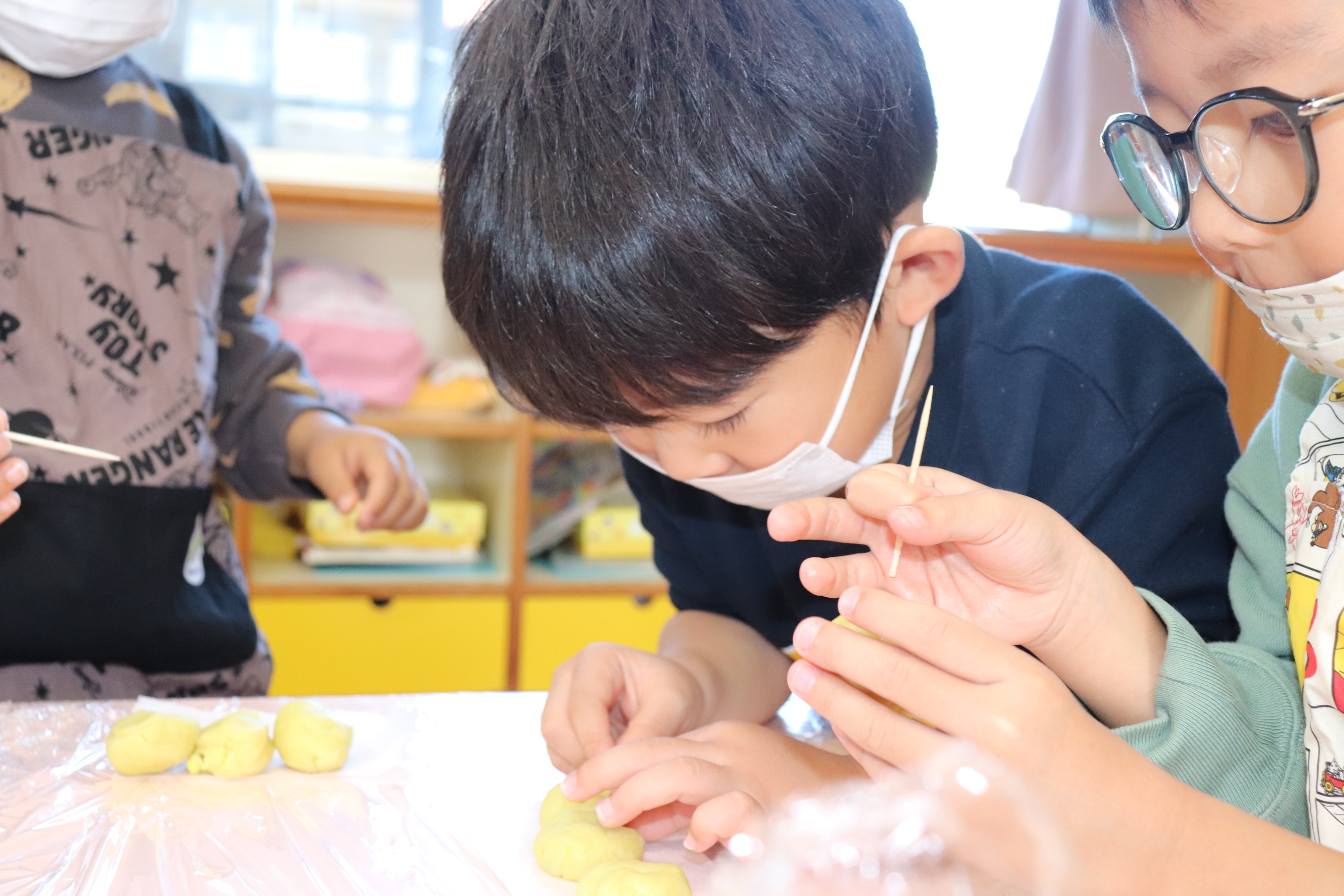 クッキング♪(11月17日)2023年11月20日先日収穫したさつま芋を使って、年長児さんたちでクッキングをしました‼今回は、お芋クッキーを作りました(*^_^*) 油、砂糖、小麦粉、さつま芋を混ぜあわせてコネコネ~!!四角く自分で形を作って、爪楊枝で顔を描いて完成です!! 顔を描くことに、とっても真剣になり、自分の思うものができるまで、何度も書き直す子もいたりとこだわりながら作っていましたよ。給食先生に焼いてもらって、おやつの時間においしく頂きました♡ごちそうさまでした~!! 施設情報愛媛県新居浜市にある児童福祉施設十全保育園げんきな子 がんばる子 やさしい子 楽しく食べるげんきな子児童福祉施設 十全保育園〒792-0011愛媛県新居浜市西原町2-3-12TEL:0897-33-3055 FAX:0897-33-3078十全保育園WEBサイト最近の記事2025年8月27日プール最終日~♪児童福祉施設 十全保育園2025年8月27日プール大会児童福祉施設 十全保育園2025年8月27日お茶のおけいこ児童福祉施設 十全保育園2025年8月12日職員会児童福祉施設 十全保育園2025年8月7日いっぱいあそんだよ♪~つぼみ・ちゅうりっぷ・もも~児童福祉施設 十全保育園2025年7月25日サマーキッズカーニバル♫児童福祉施設 十全保育園十全保育園の記事一覧