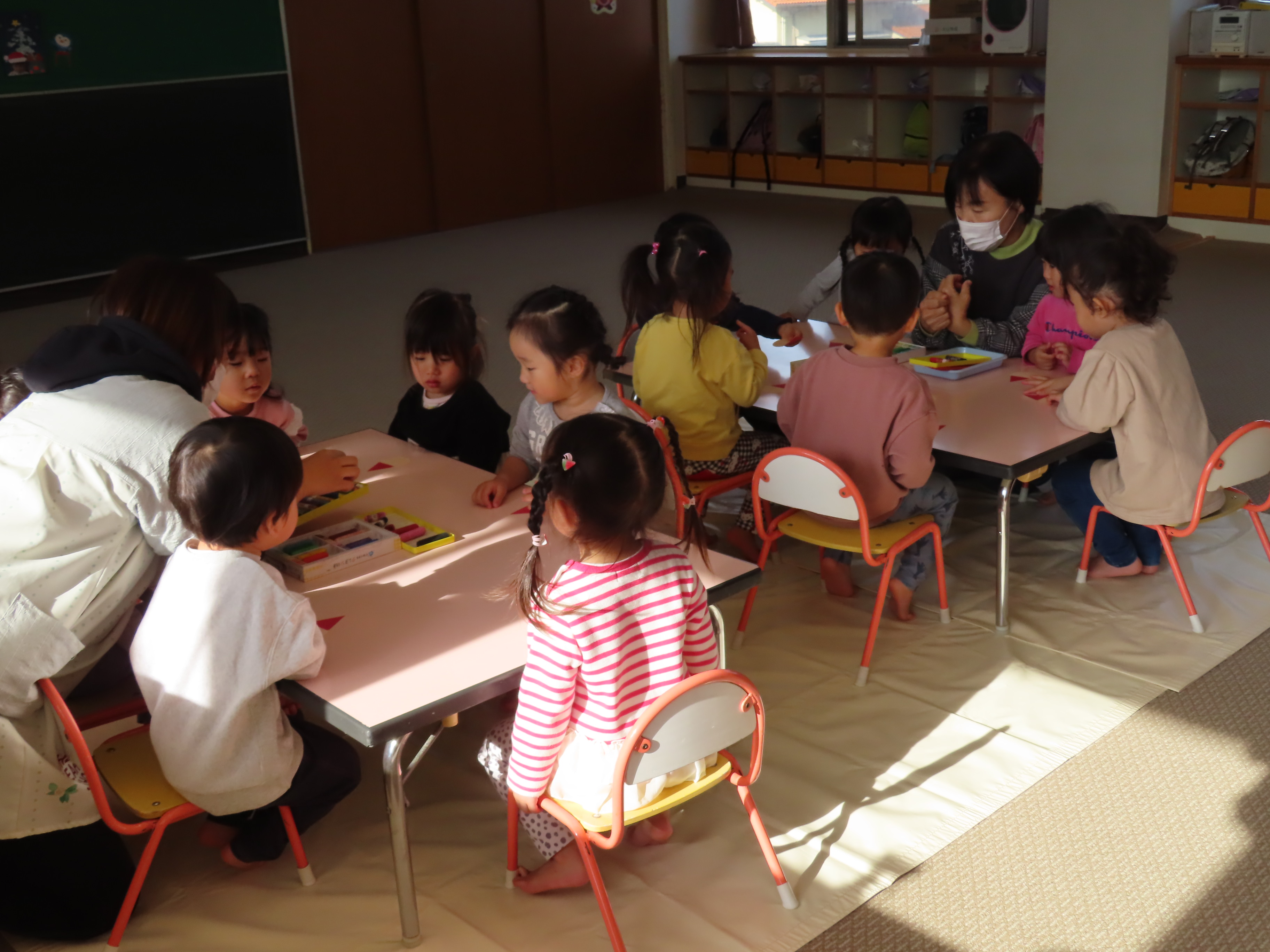 参観日(12月6、7日)2023年12月19日参観日の様子です。クリスマスのオーナメントを作ったり、お店屋さんごっこをしたり、お絵描きをしたりと、それぞれの年齢で設定保育を考え、色々な活動を楽しみました。6月の参観日の子どもたちの様子と比べてどうでしたか?「こんなことができるようになってる!!」「6月は泣いていたけど、今回は笑顔だ~!」などなど、たくさんの成長した姿を発見できたかと思います!お家では、お母さんたちについ甘えちゃう子どもたちも、保育園ではしっかり頑張っていますよ(*^_^*)たくさんのご参加ありがとうございました。 施設情報愛媛県新居浜市にある児童福祉施設十全保育園げんきな子 がんばる子 やさしい子 楽しく食べるげんきな子児童福祉施設 十全保育園〒792-0011愛媛県新居浜市西原町2-3-12TEL:0897-33-3055 FAX:0897-33-3078十全保育園WEBサイト最近の記事2025年8月27日プール最終日~♪児童福祉施設 十全保育園2025年8月27日プール大会児童福祉施設 十全保育園2025年8月27日お茶のおけいこ児童福祉施設 十全保育園2025年8月12日職員会児童福祉施設 十全保育園2025年8月7日いっぱいあそんだよ♪~つぼみ・ちゅうりっぷ・もも~児童福祉施設 十全保育園2025年7月25日サマーキッズカーニバル♫児童福祉施設 十全保育園十全保育園の記事一覧