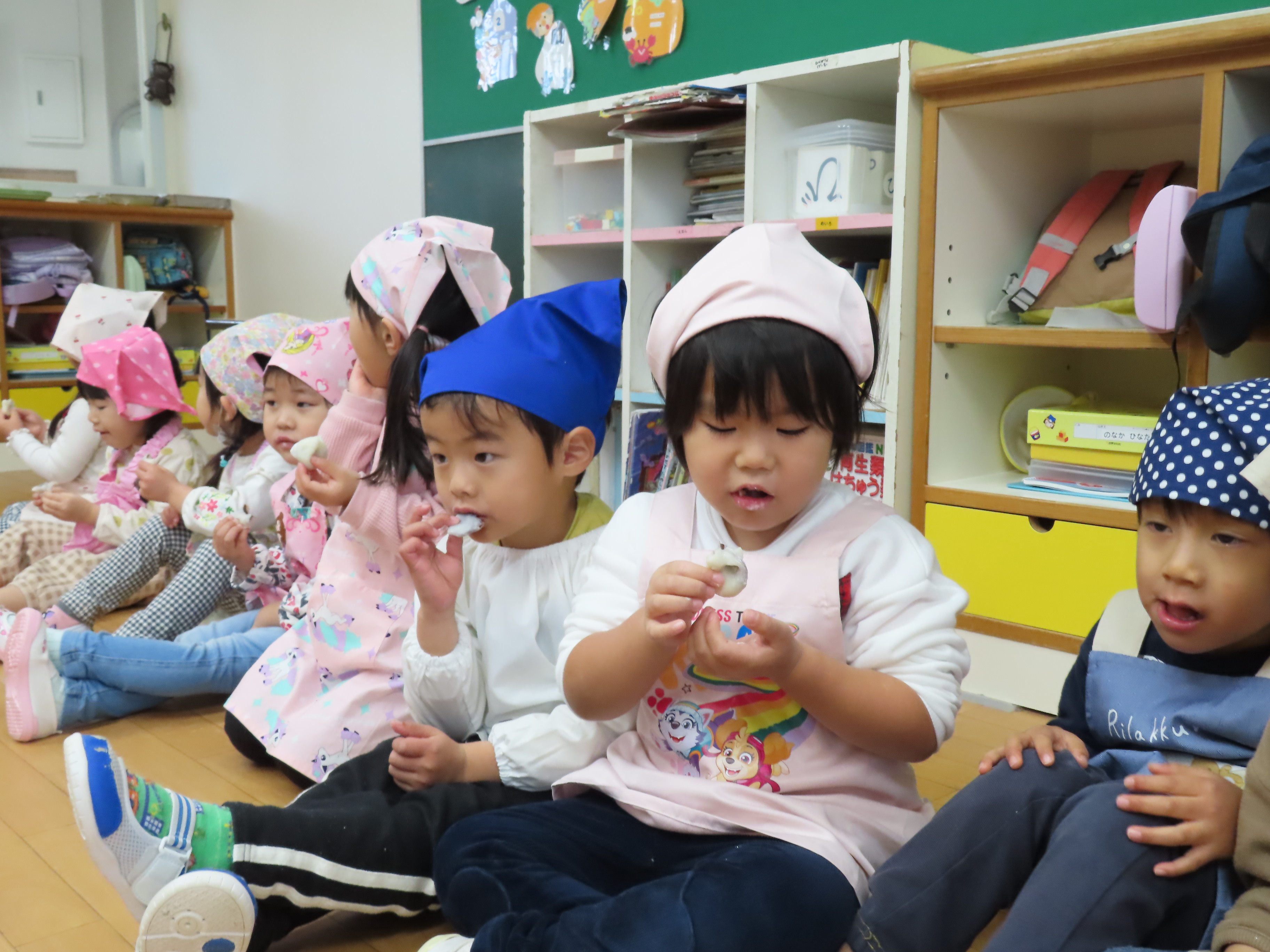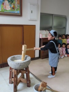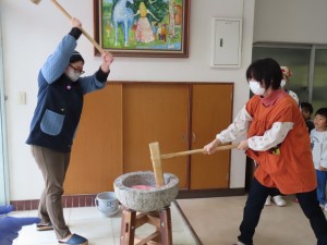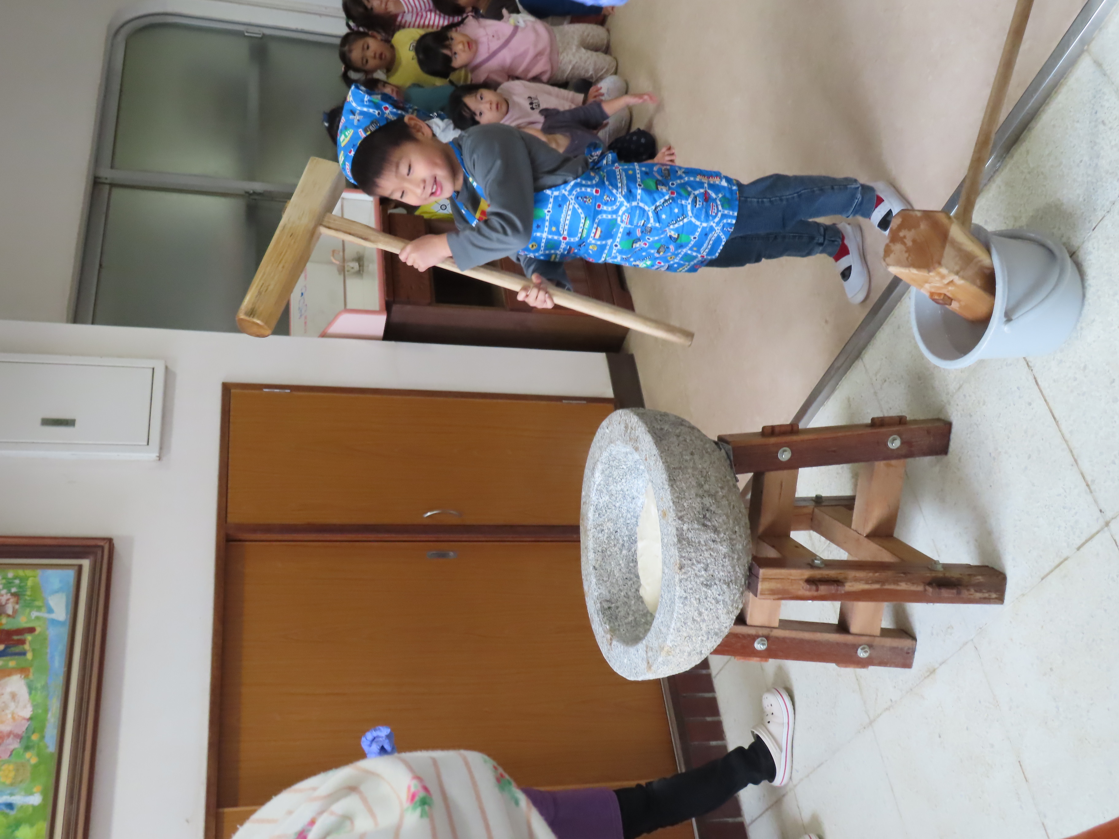 おもちつき(12月15日)2023年12月19日おもちつきを行いました~(*^_^*) なかなか、おもちをつく様子を近くでみる機会はないので、子どもたちもまだかまだかとエプロンや三角巾をつけながら待ち遠しくてたまらない様子でした!保育士がおもちをつくときも子どもたちは「よいしょ~よいしょ~!」と大きな声で応援をしてくれました(*^^)v 子どもたちは、安全を配慮して、薄皮持ちを食べました。つきたてのお餅は、あったかくて♡おいしくて♡お餅が大好きな子は、「おいし~♡」と幸せそうにほおばってました♡ 施設情報愛媛県新居浜市にある児童福祉施設十全保育園げんきな子 がんばる子 やさしい子 楽しく食べるげんきな子児童福祉施設 十全保育園〒792-0011愛媛県新居浜市西原町2-3-12TEL:0897-33-3055 FAX:0897-33-3078十全保育園WEBサイト最近の記事2025年8月27日プール最終日~♪児童福祉施設 十全保育園2025年8月27日プール大会児童福祉施設 十全保育園2025年8月27日お茶のおけいこ児童福祉施設 十全保育園2025年8月12日職員会児童福祉施設 十全保育園2025年8月7日いっぱいあそんだよ♪~つぼみ・ちゅうりっぷ・もも~児童福祉施設 十全保育園2025年7月25日サマーキッズカーニバル♫児童福祉施設 十全保育園十全保育園の記事一覧
