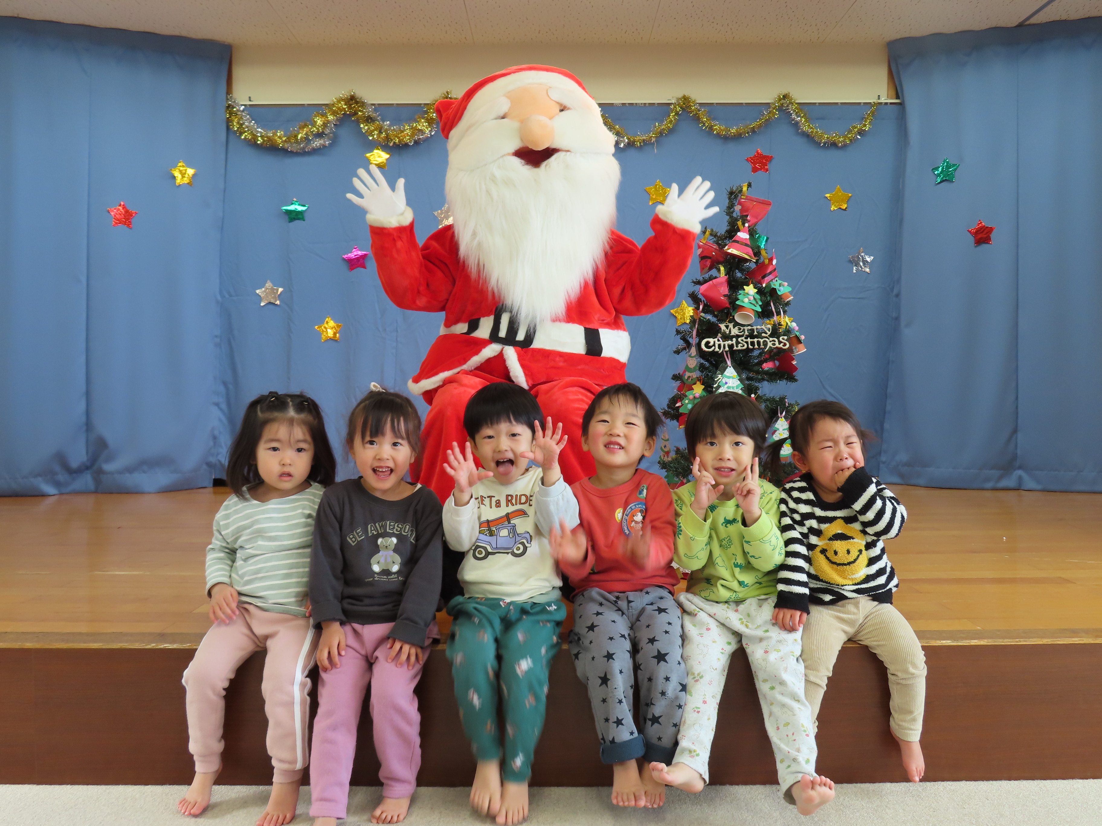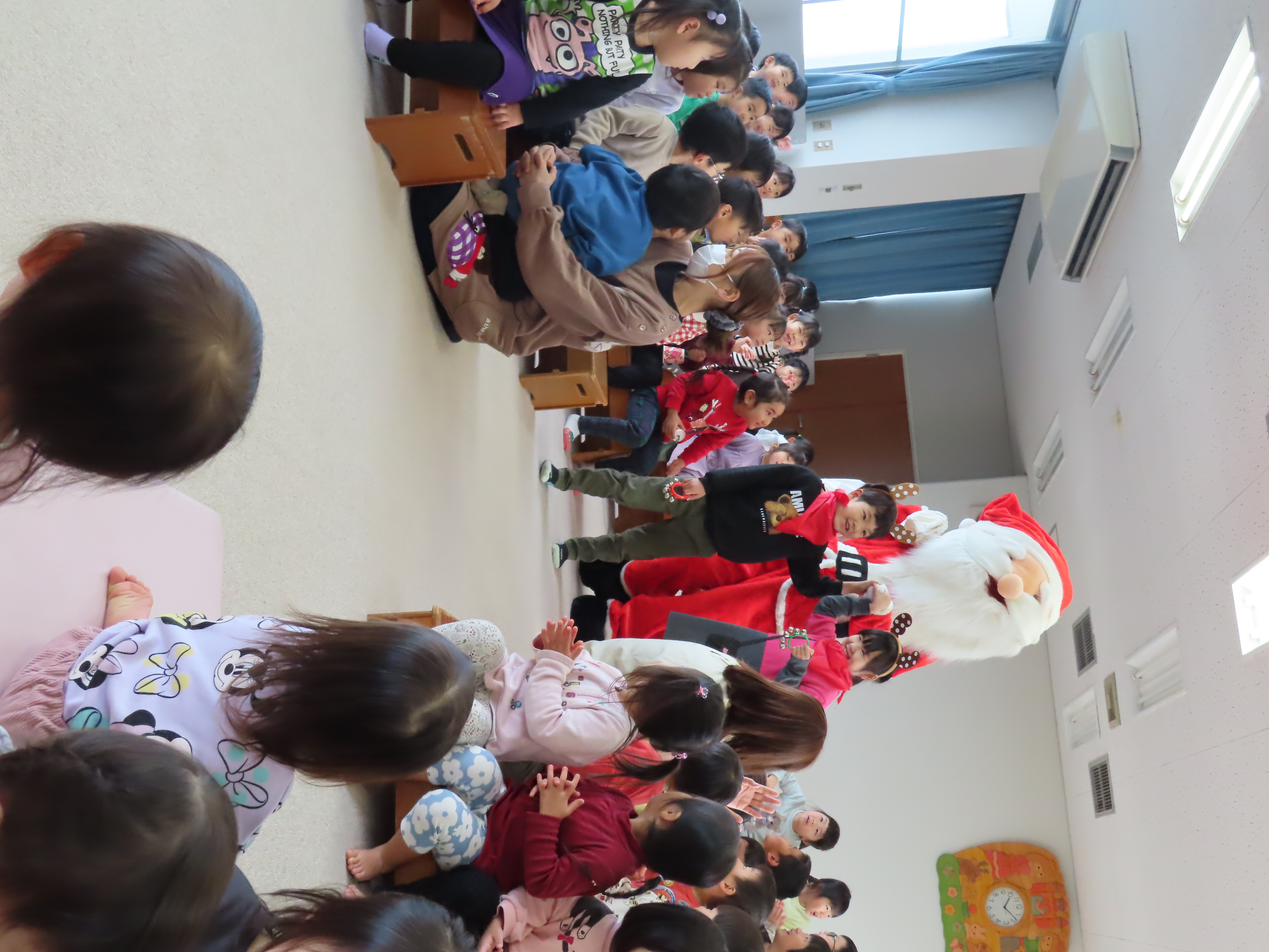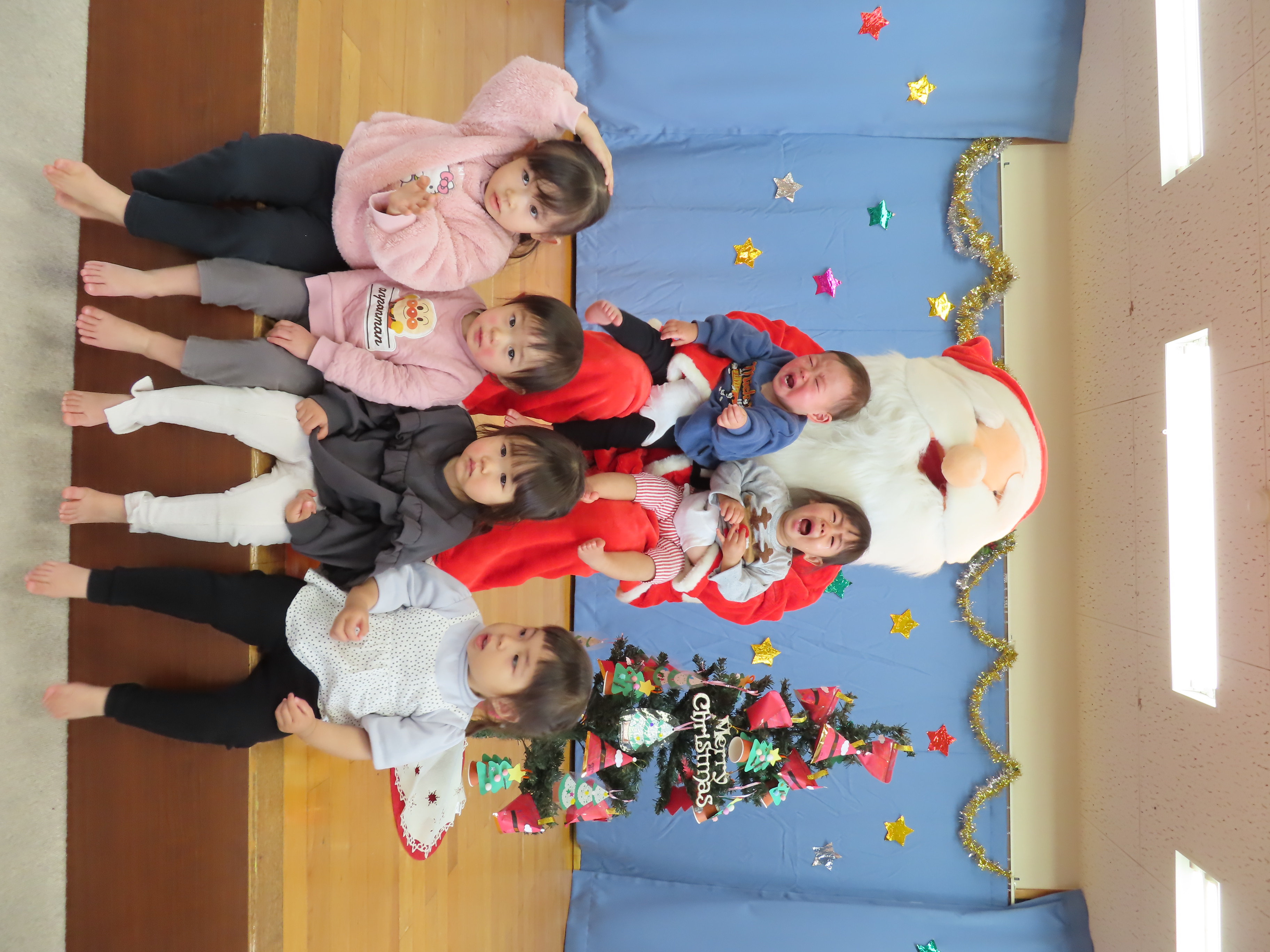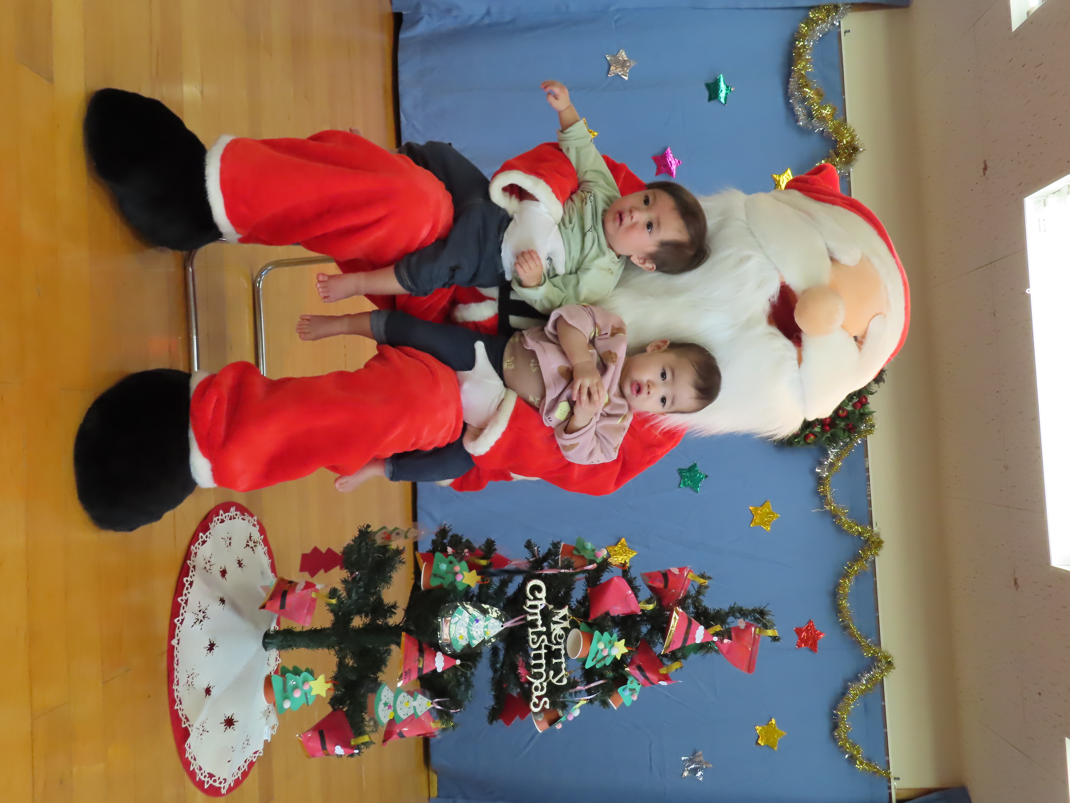 やってきました!クリスマス~♪きてくれました‼サンタさん~♡ みんなのお家にもサンタさんが来てくれたかな?十全保育園にもサンタさんがきてくれたので、みんなと一緒にクリスマス会を楽しみました(*^_^*) 思いのほか、大きなサンタさんの登場に小さなお友だちは驚いて、泣いちゃいました(*_*; それでも、少しづつサンタさんの存在に慣れつつ…笑顔も増えていった子どもたちです。 各クラス、手作りしたオーナメントを紹介したり、代表でサンタさんからクリスマスプレゼントをもらったり、保育士による催し物を楽しんだりと、みんなでステキな時間を過ごしましたよ♪ 今年最後の大イベント!!をみんなで楽しめて良かったです(*^_^*)
