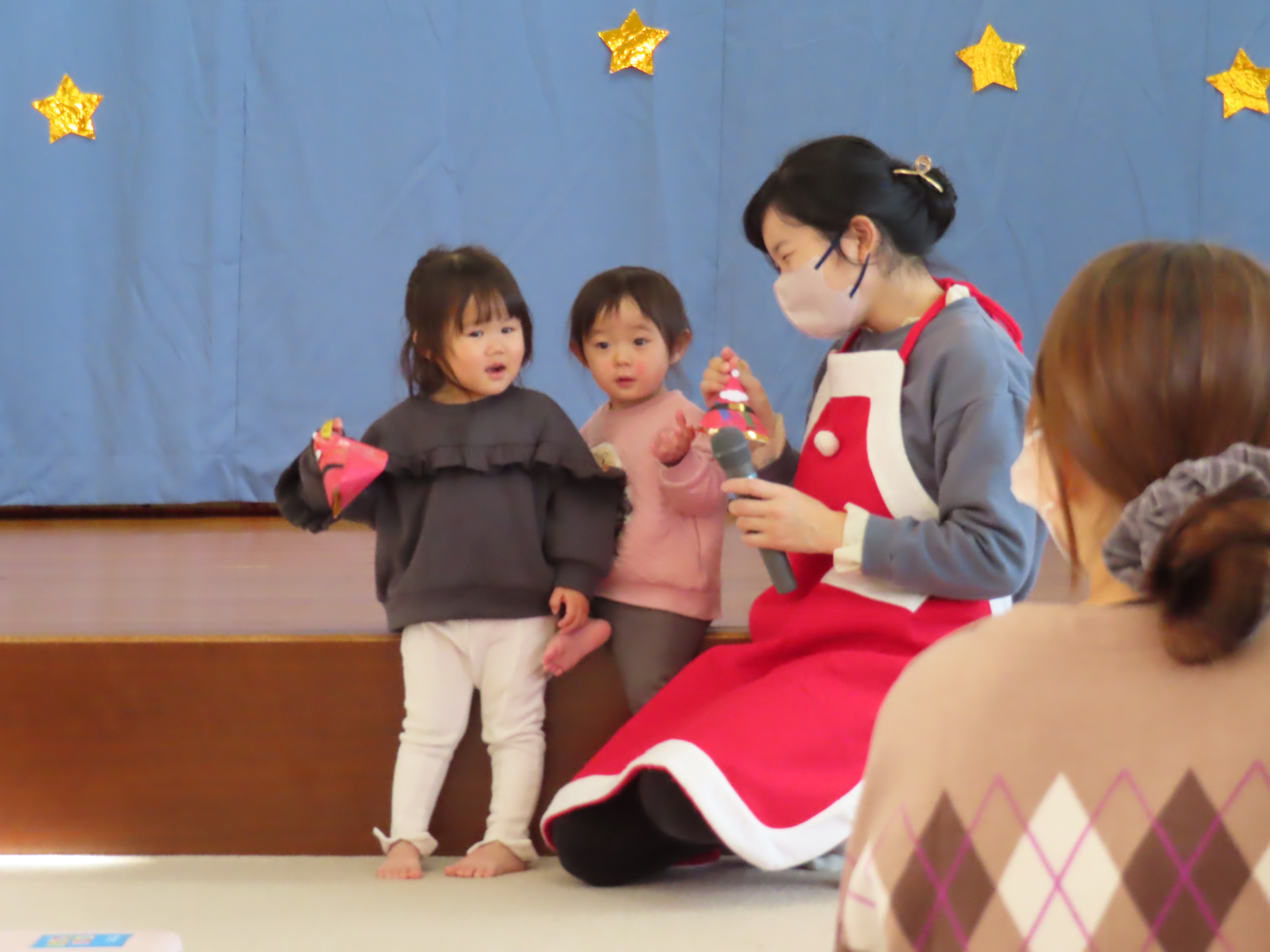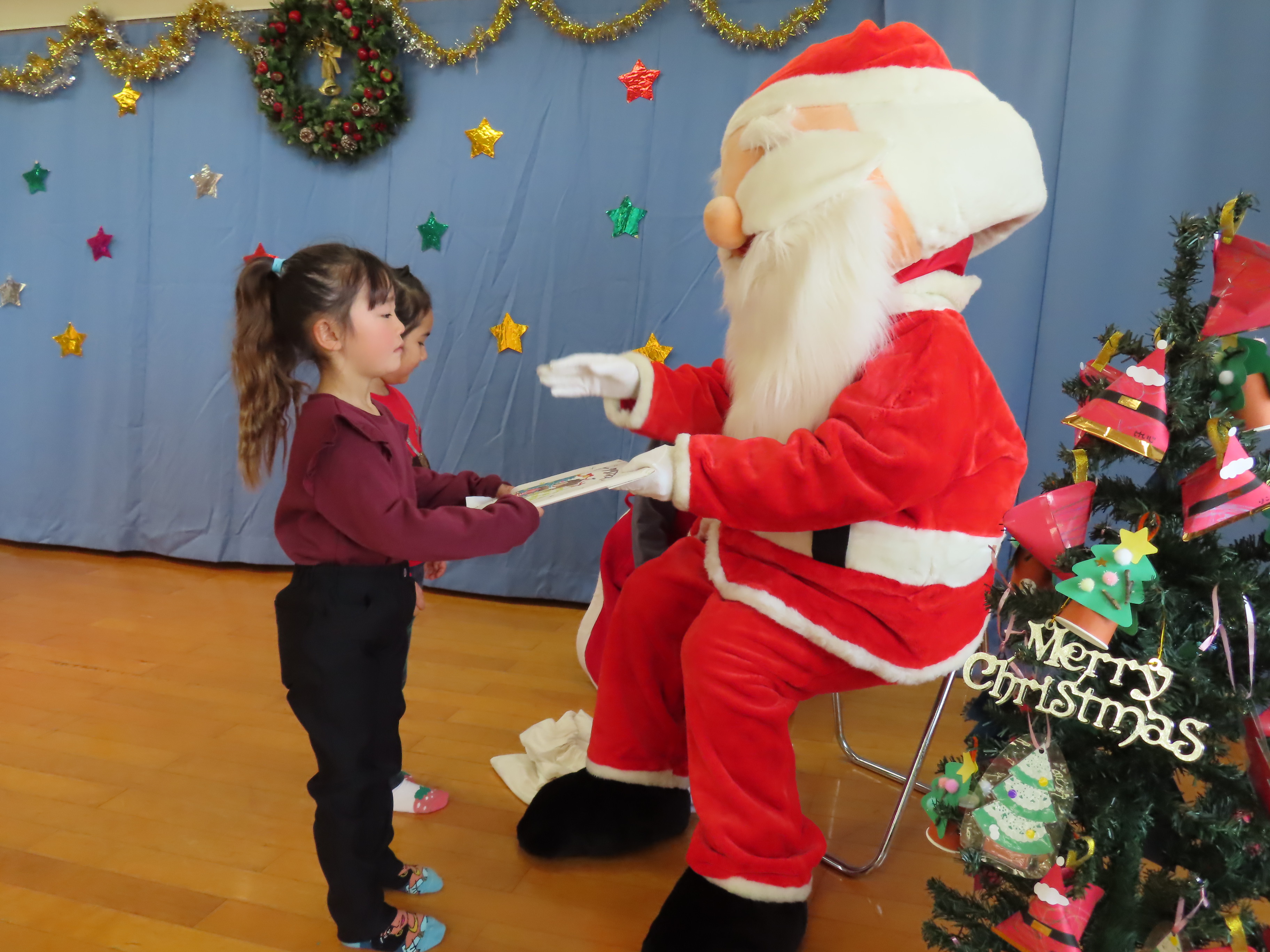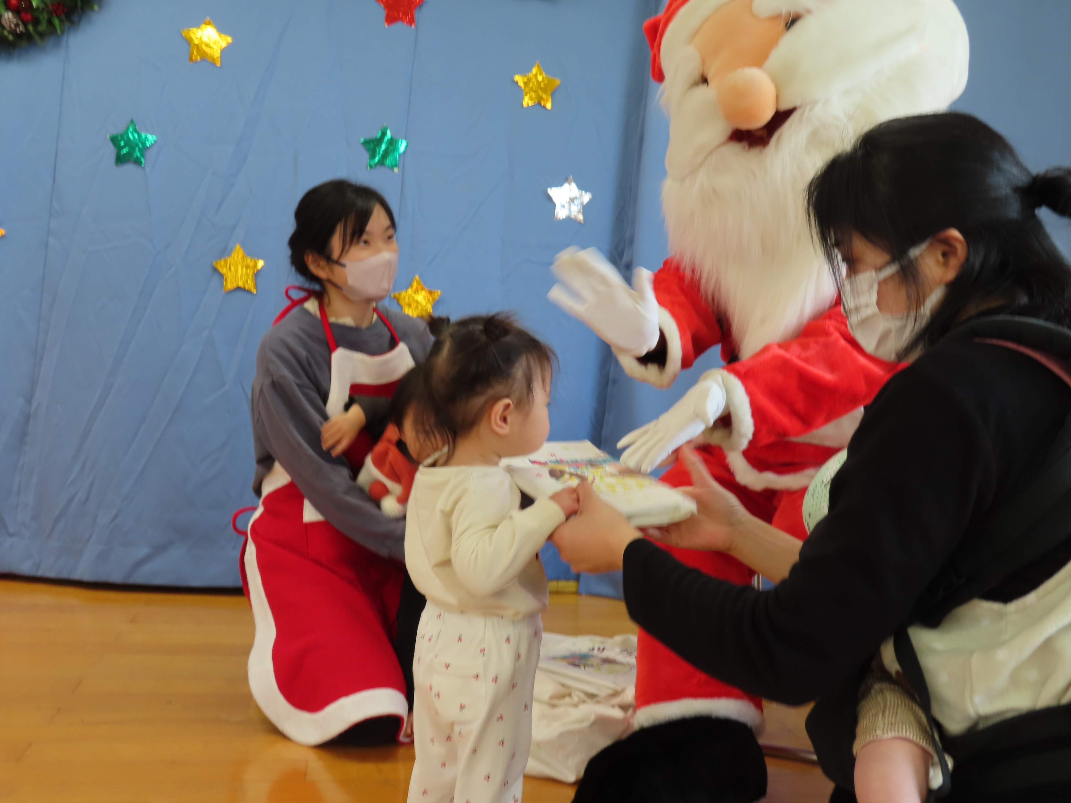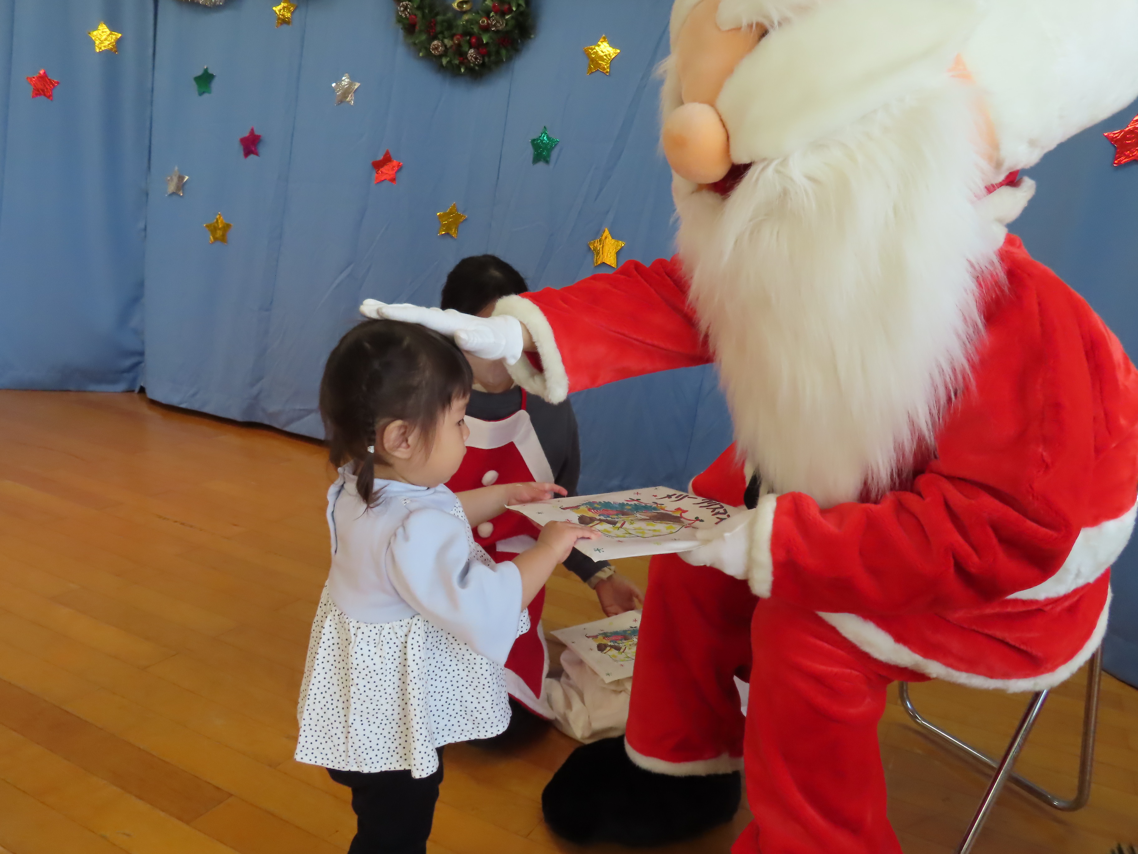 やってきました!クリスマス~♪きてくれました‼サンタさん~♡ みんなのお家にもサンタさんが来てくれたかな?十全保育園にもサンタさんがきてくれたので、みんなと一緒にクリスマス会を楽しみました(*^_^*) 思いのほか、大きなサンタさんの登場に小さなお友だちは驚いて、泣いちゃいました(*_*; それでも、少しづつサンタさんの存在に慣れつつ…笑顔も増えていった子どもたちです。 各クラス、手作りしたオーナメントを紹介したり、代表でサンタさんからクリスマスプレゼントをもらったり、保育士による催し物を楽しんだりと、みんなでステキな時間を過ごしましたよ♪ 今年最後の大イベント!!をみんなで楽しめて良かったです(*^_^*)