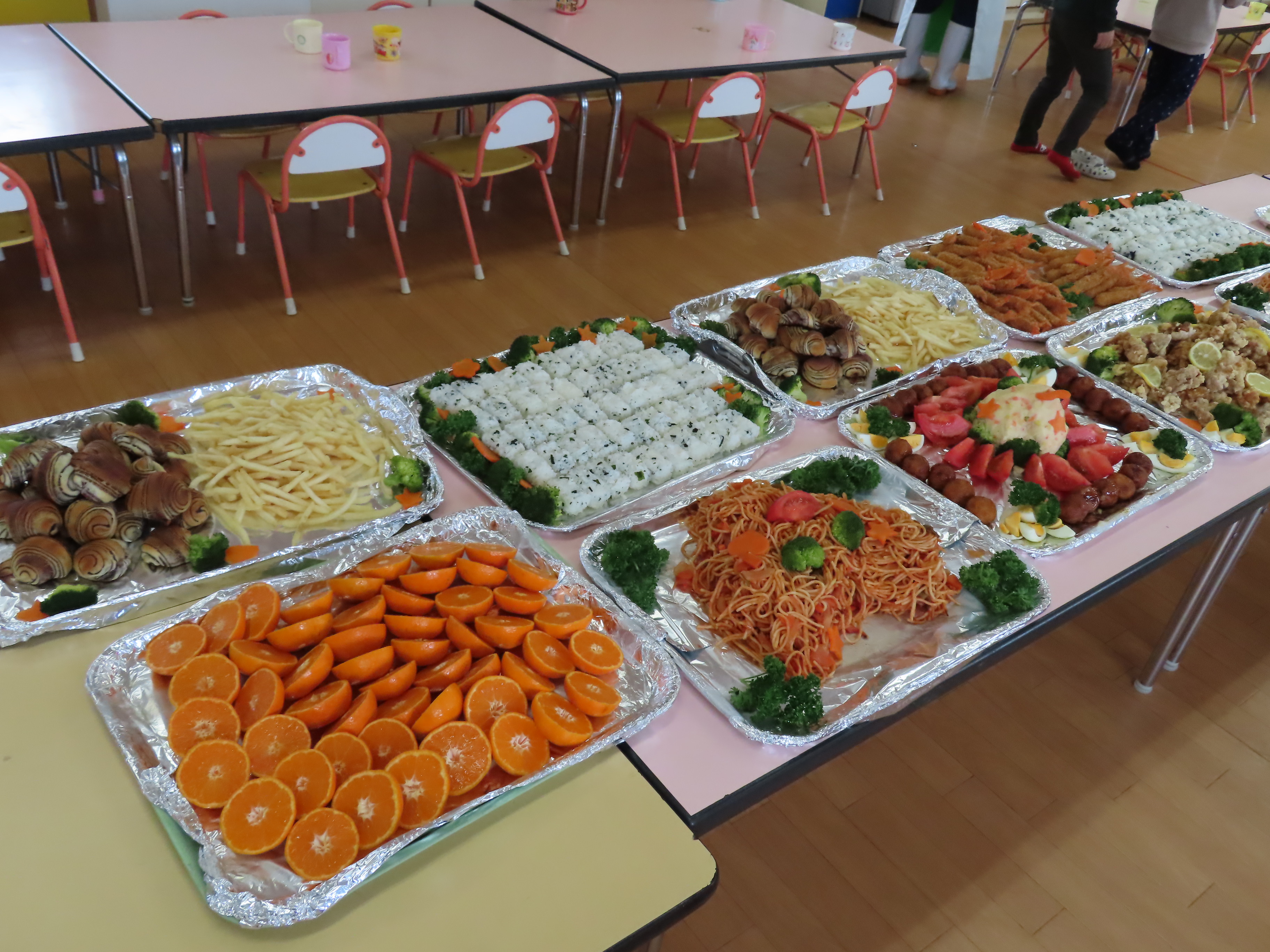 お昼は、給食先生が頑張って作ってくれたバイキング給食です(*^_^*)