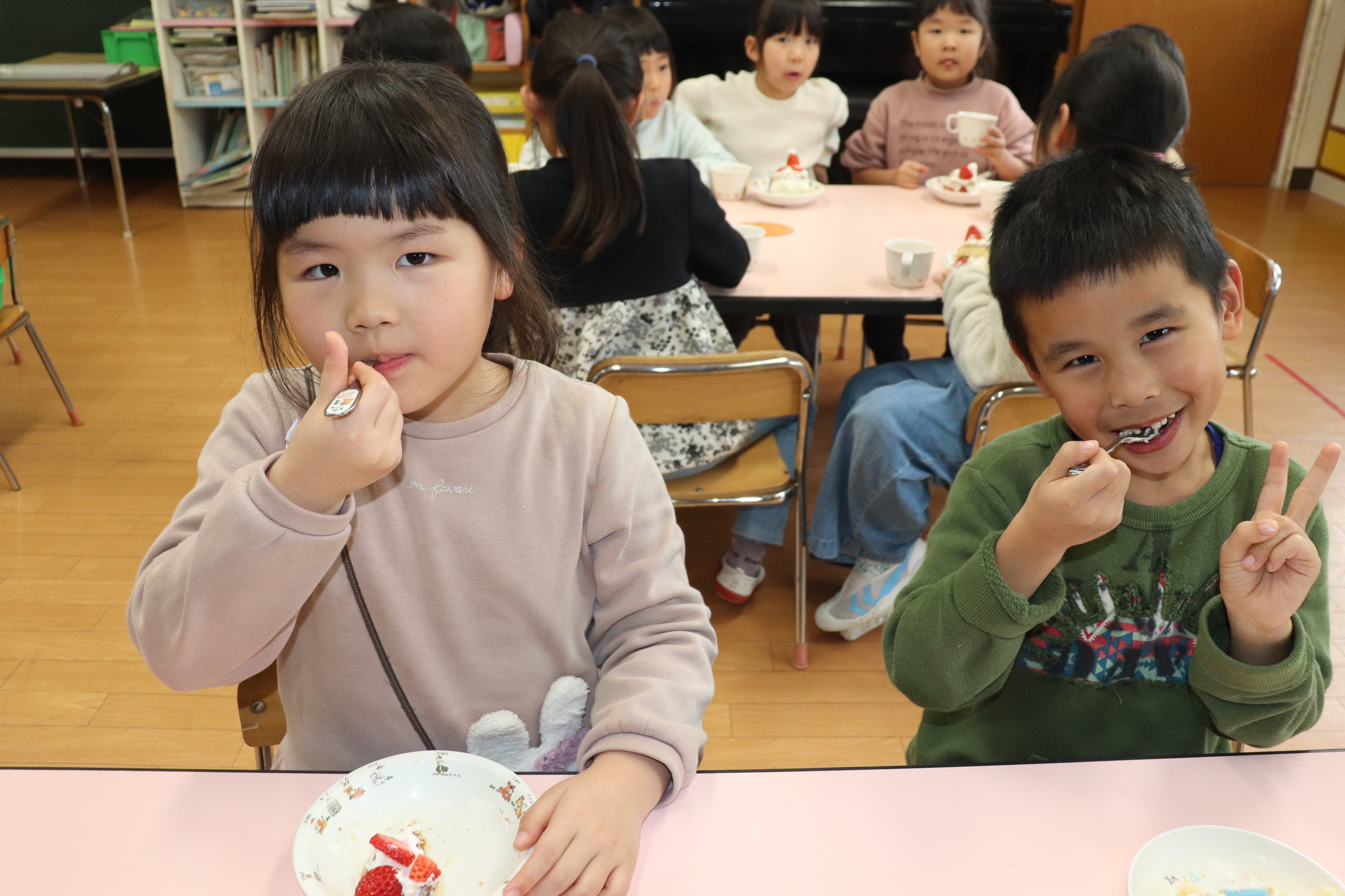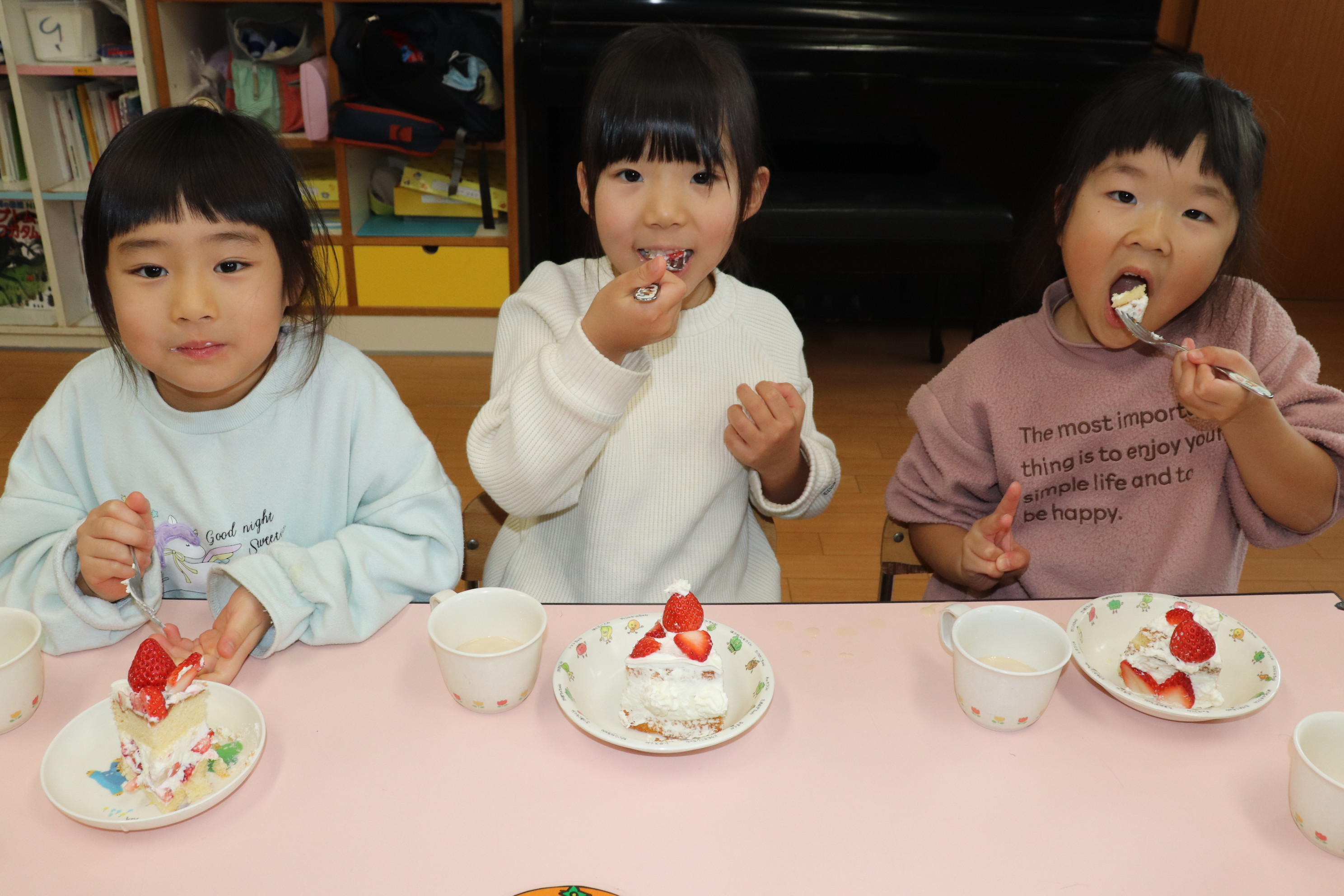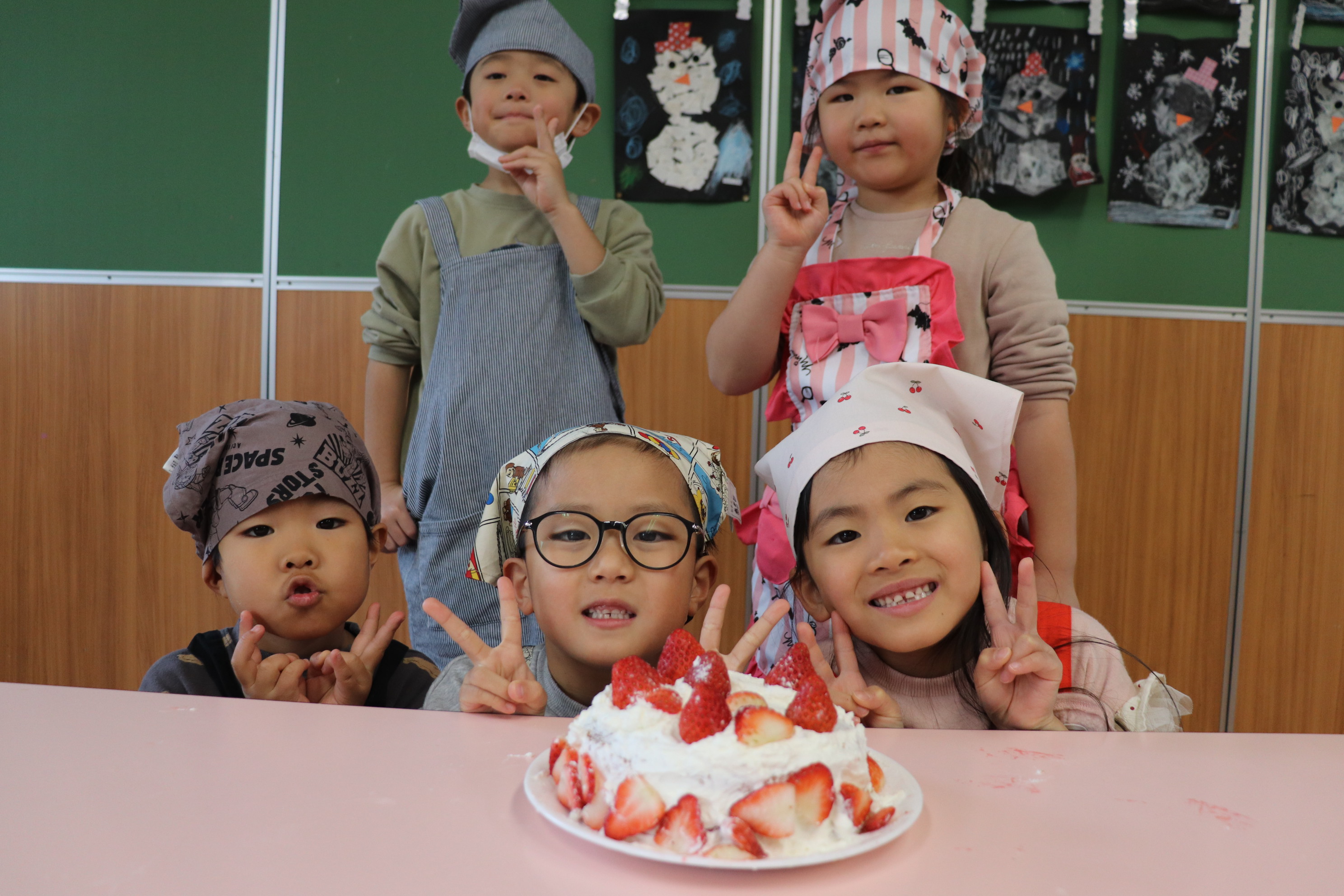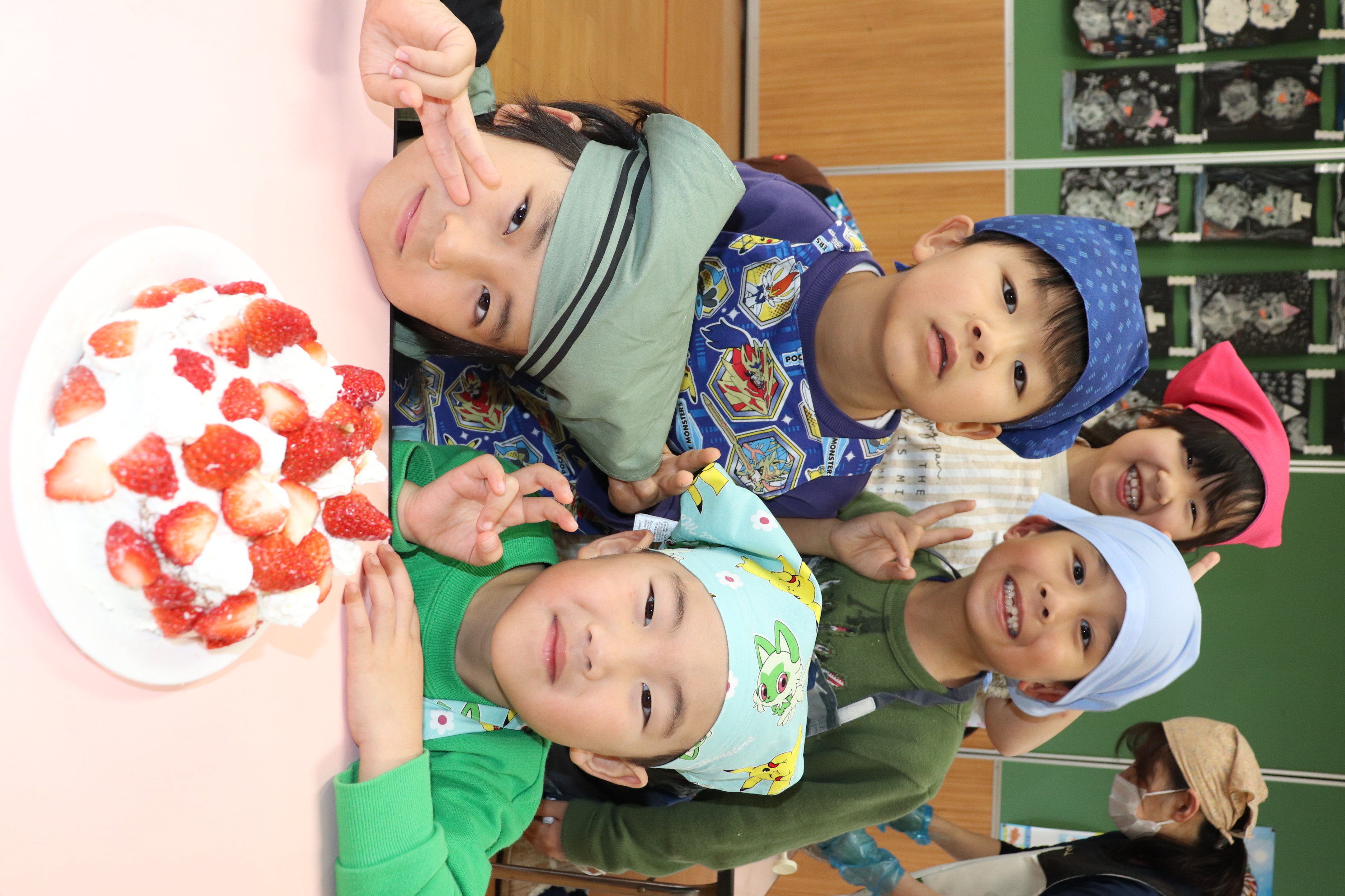 年長児さんたちは、クリスマスケーキ飾りをしました♪ 生クリームを塗って、苺をのせて♡かわいくデコレーション(*^_^*) 「先生~!早く食べたあ~い!」と言いながら、作ってました(笑)自分たちで飾ったケーキをおやつに頂きました!ごちそうさまでしたっ!!