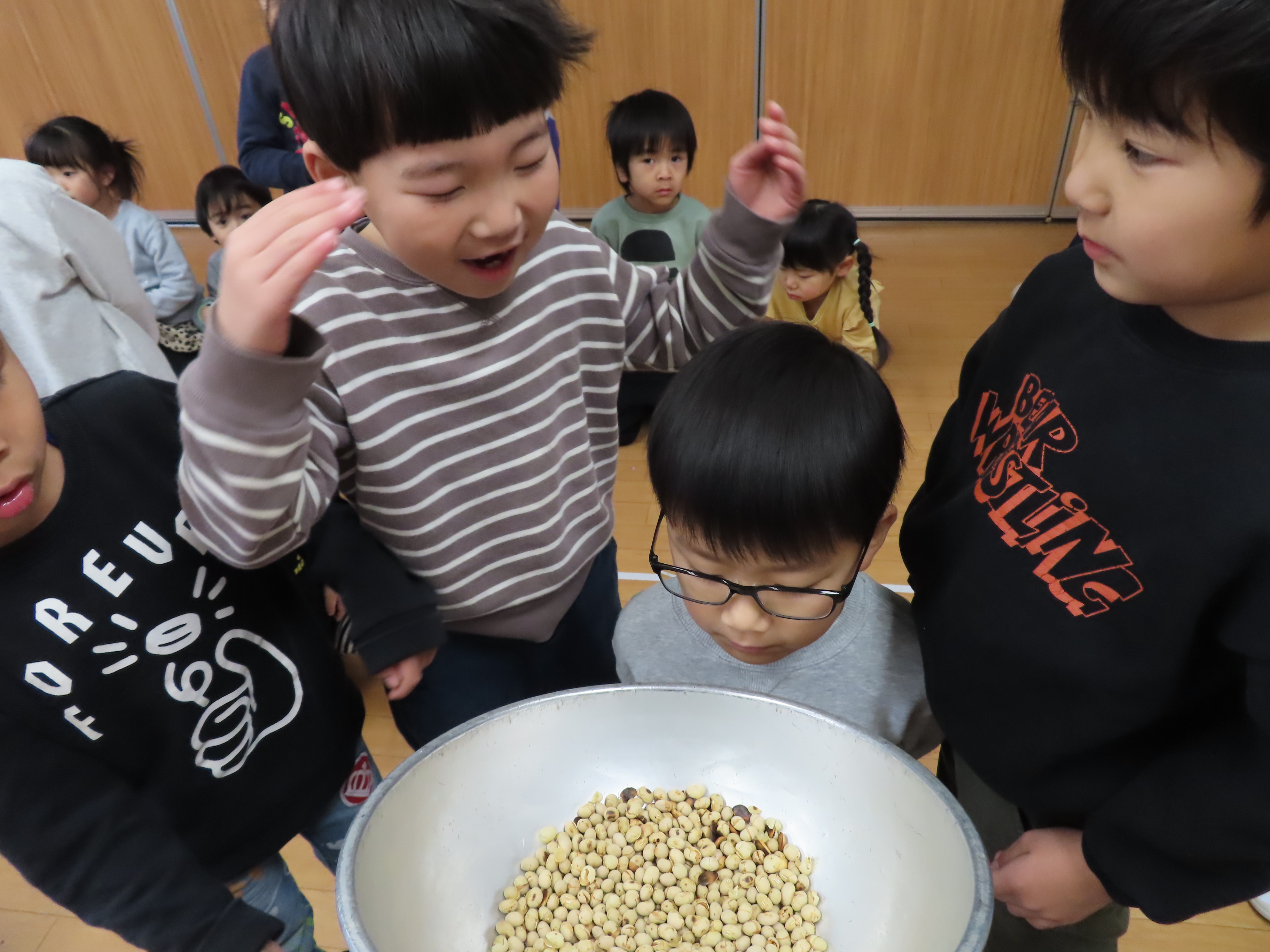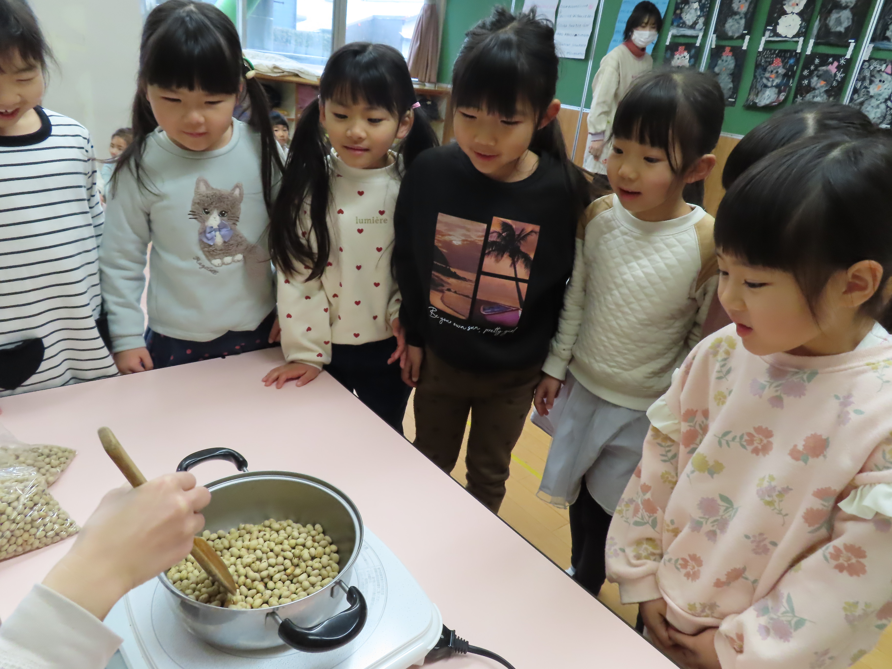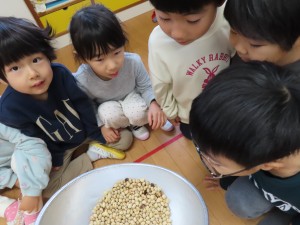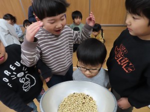 豆まきの準備!(2月2日)2024年2月2日2月3日は節分の日!ということで、豆まきの準備!!節分についてに紙芝居を読んでもらったあとは、実際に豆を炒るところをみました。炒ると香ばしい匂いがただよい、豆に顔を近づかせて、「良いにおい~♪」と鼻をクンクンさせる子どもたちでした!でも・・・このあとの豆まきは。。。怖い。。。と弱気な子どもたちでした(笑) 施設情報愛媛県新居浜市にある児童福祉施設十全保育園げんきな子 がんばる子 やさしい子 楽しく食べるげんきな子児童福祉施設 十全保育園〒792-0011愛媛県新居浜市西原町2-3-12TEL:0897-33-3055 FAX:0897-33-3078十全保育園WEBサイト最近の記事2025年8月27日プール最終日~♪児童福祉施設 十全保育園2025年8月27日プール大会児童福祉施設 十全保育園2025年8月27日お茶のおけいこ児童福祉施設 十全保育園2025年8月12日職員会児童福祉施設 十全保育園2025年8月7日いっぱいあそんだよ♪~つぼみ・ちゅうりっぷ・もも~児童福祉施設 十全保育園2025年7月25日サマーキッズカーニバル♫児童福祉施設 十全保育園十全保育園の記事一覧