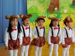 発表会2024年2月20日【3歳児・劇あそび】 3歳児は、劇あそび「どうぞのいす」に挑戦!歌にあわせて踊ったり、一人一人が簡単なセリフを言うことにも挑戦し、子どもたちにとってはドキドキの舞台上だったことでしょう!!でも、楽しんで劇あそびに参加する姿がみられ、観客からの温かい声援を力に変えて、みんな最後まで大きな声でとってもよく頑張ってくれていました(*^_^*) 施設情報愛媛県新居浜市にある児童福祉施設十全保育園げんきな子 がんばる子 やさしい子 楽しく食べるげんきな子児童福祉施設 十全保育園〒792-0011愛媛県新居浜市西原町2-3-12TEL:0897-33-3055 FAX:0897-33-3078十全保育園WEBサイト最近の記事2025年8月27日プール最終日~♪児童福祉施設 十全保育園2025年8月27日プール大会児童福祉施設 十全保育園2025年8月27日お茶のおけいこ児童福祉施設 十全保育園2025年8月12日職員会児童福祉施設 十全保育園2025年8月7日いっぱいあそんだよ♪~つぼみ・ちゅうりっぷ・もも~児童福祉施設 十全保育園2025年7月25日サマーキッズカーニバル♫児童福祉施設 十全保育園十全保育園の記事一覧