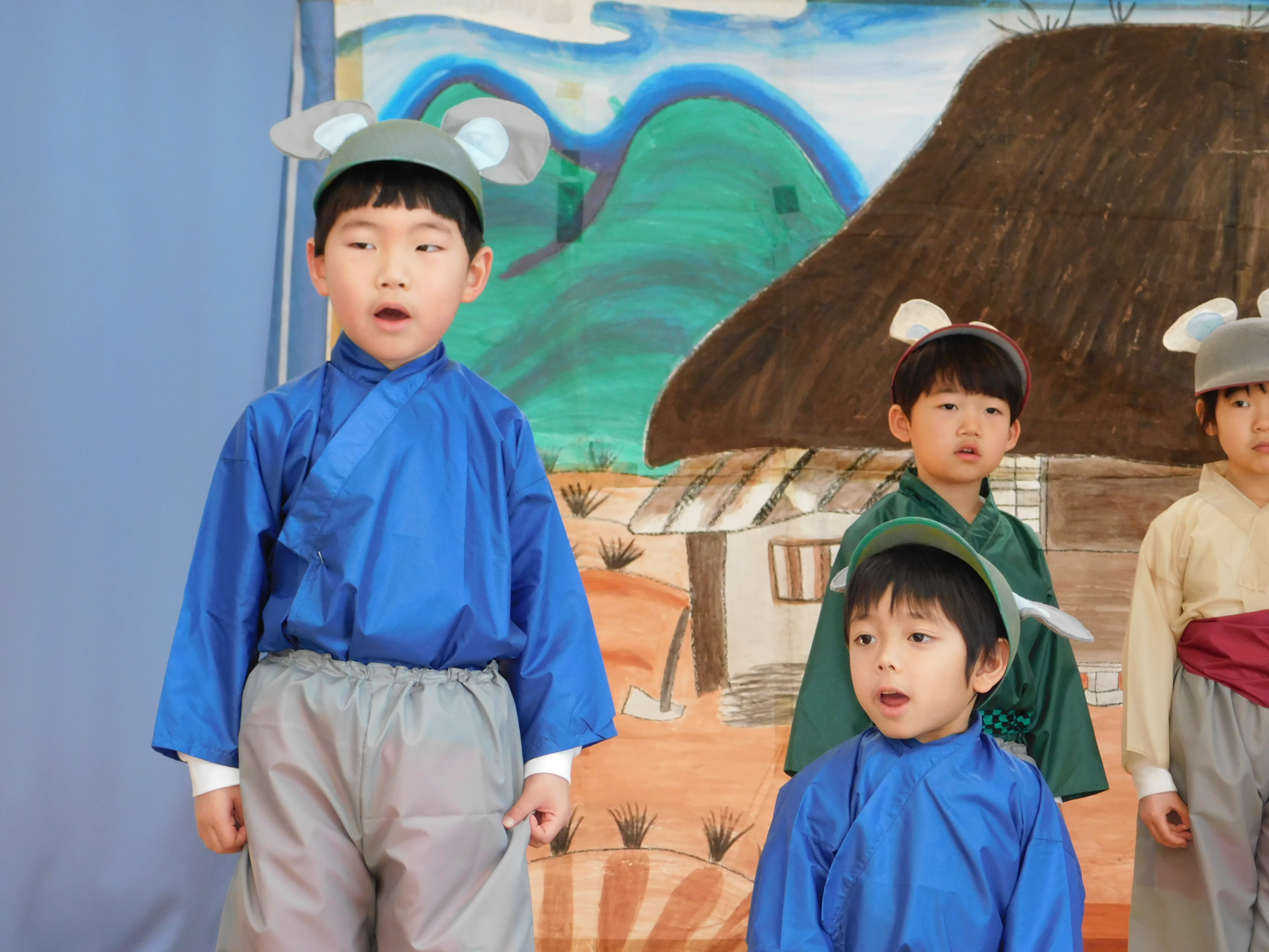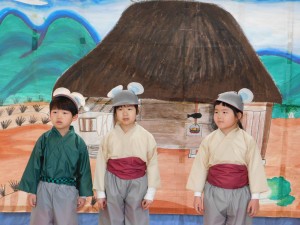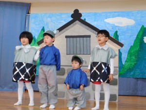 発表会2024年2月20日【5歳児・劇】 年長児さんにとっては、保育園最後の発表会‼!演目は、「ねずみの嫁入り」です。保育士とみんなで決めた、自分の役。「僕は、太陽の役をする!」「わたしは、ネズミの娘!!」と決まった役を喜び、たくさんあるセリフも練習を重ねるごとに上達していきました。本番は、「緊張する~!!」「先生、次のセリフ、これであってる?」と確認したりと、いつになく(笑)緊張した表情をみせていた子どもたちです。緊張を乗り越え、本番を見事にやり遂げた自信を、これからの成長へと変えてくれることと思います(*^_^*) 施設情報愛媛県新居浜市にある児童福祉施設十全保育園げんきな子 がんばる子 やさしい子 楽しく食べるげんきな子児童福祉施設 十全保育園〒792-0011愛媛県新居浜市西原町2-3-12TEL:0897-33-3055 FAX:0897-33-3078十全保育園WEBサイト最近の記事2025年8月27日プール最終日~♪児童福祉施設 十全保育園2025年8月27日プール大会児童福祉施設 十全保育園2025年8月27日お茶のおけいこ児童福祉施設 十全保育園2025年8月12日職員会児童福祉施設 十全保育園2025年8月7日いっぱいあそんだよ♪~つぼみ・ちゅうりっぷ・もも~児童福祉施設 十全保育園2025年7月25日サマーキッズカーニバル♫児童福祉施設 十全保育園十全保育園の記事一覧