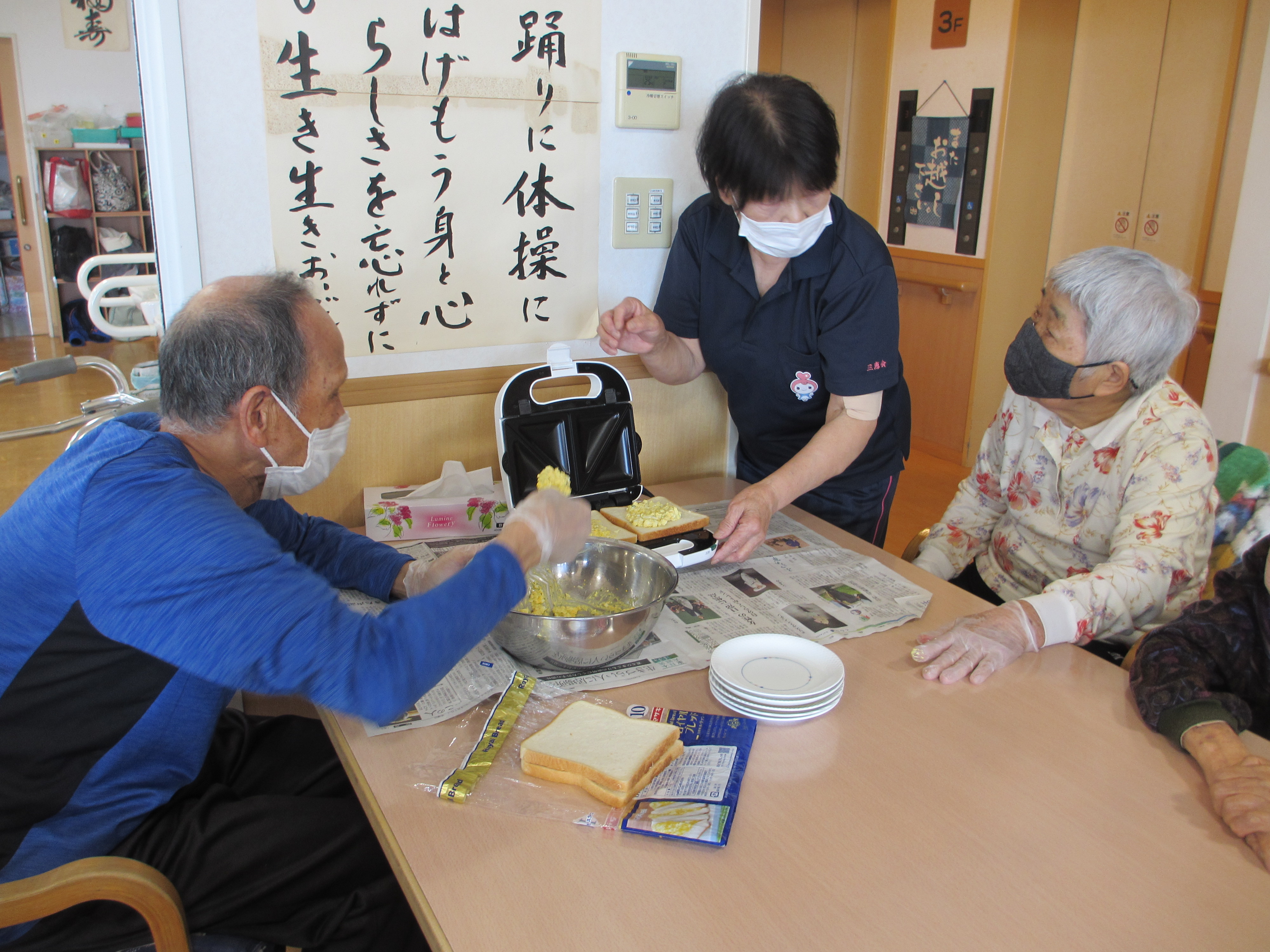 おやつ作り(ホットサンド)2025年6月18日みんなで協力して、美味しいホットサンドができました。 出来立てアツアツをいただきました。 おやつ作りの中でホットサンドは人気です。 施設情報愛媛県新居浜市にある総合福祉施設コミュニティハウス三恵子どもから障がい者、高齢者が集う憩いの場コミュニティハウス三恵〒792-0893 愛媛県新居浜市多喜浜1-2-16TEL:0897-46-4545 FAX:0897-46-4811コミュニティハウス三恵WEBサイト最近の記事2025年10月7日10月のお誕生会総合福祉館 コミュニティハウス三恵2025年6月18日レクレーション(ブーメラン)総合福祉館 コミュニティハウス三恵2025年6月18日個別外出総合福祉館 コミュニティハウス三恵2025年6月18日介護教室(血圧のお話)総合福祉館 コミュニティハウス三恵2025年4月21日節分総合福祉館 コミュニティハウス三恵2025年4月21日初詣(一宮神社)総合福祉館 コミュニティハウス三恵コミュニティハウス三恵の記事一覧