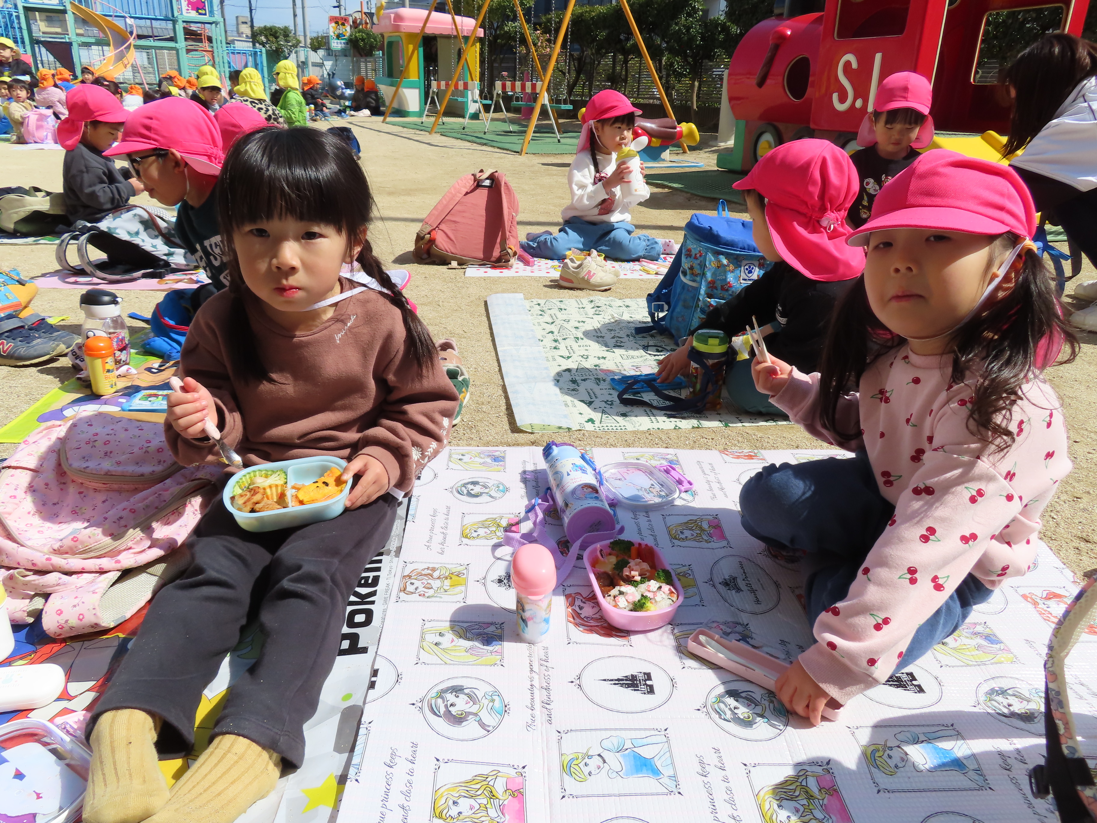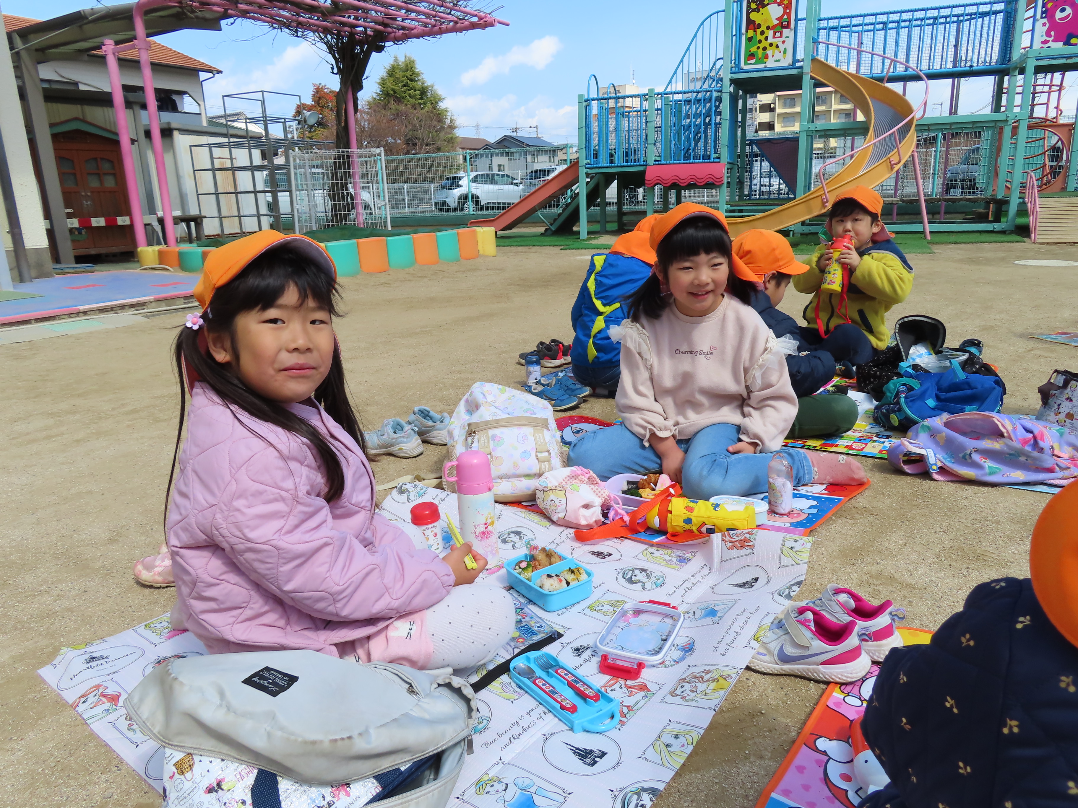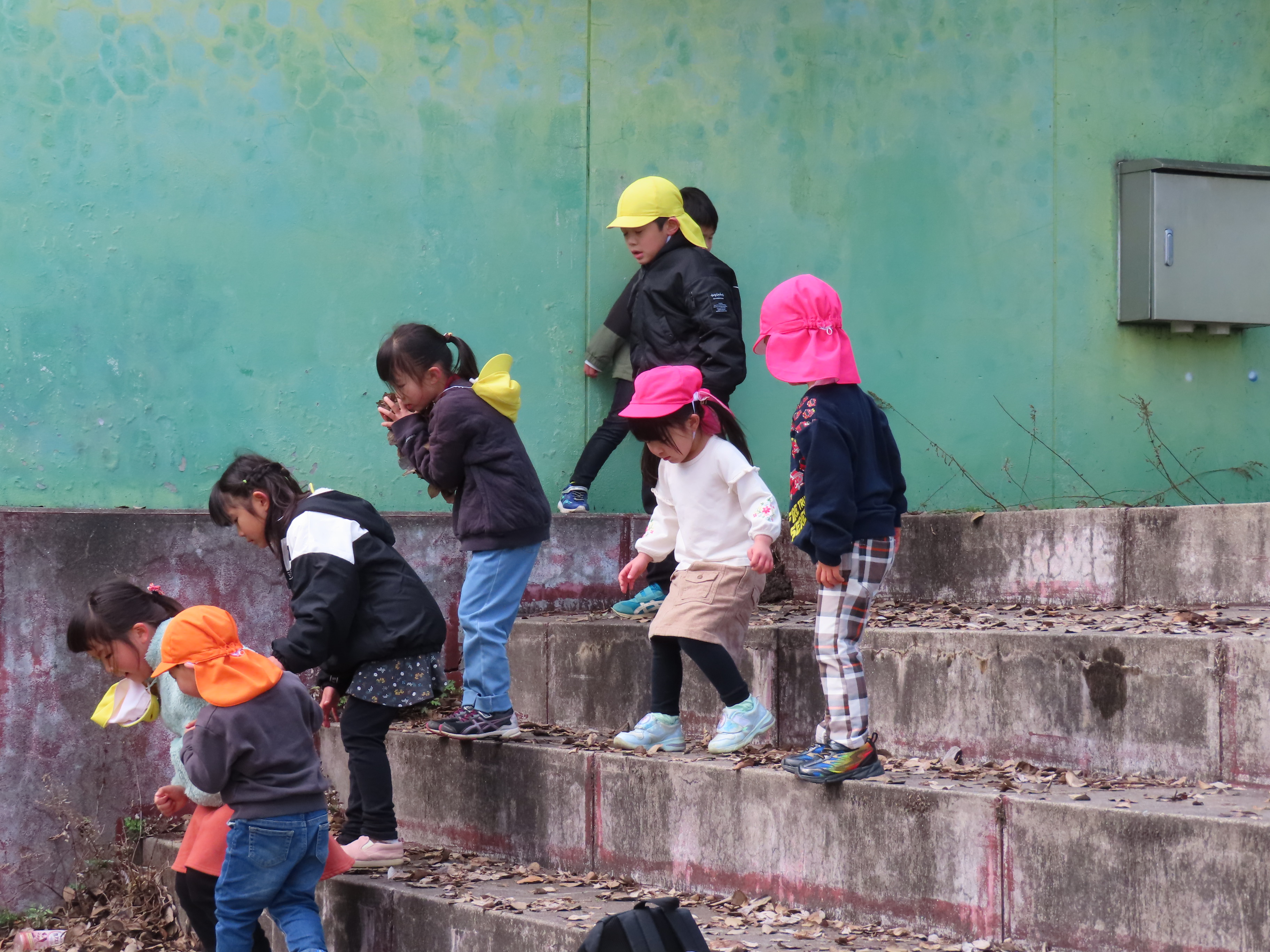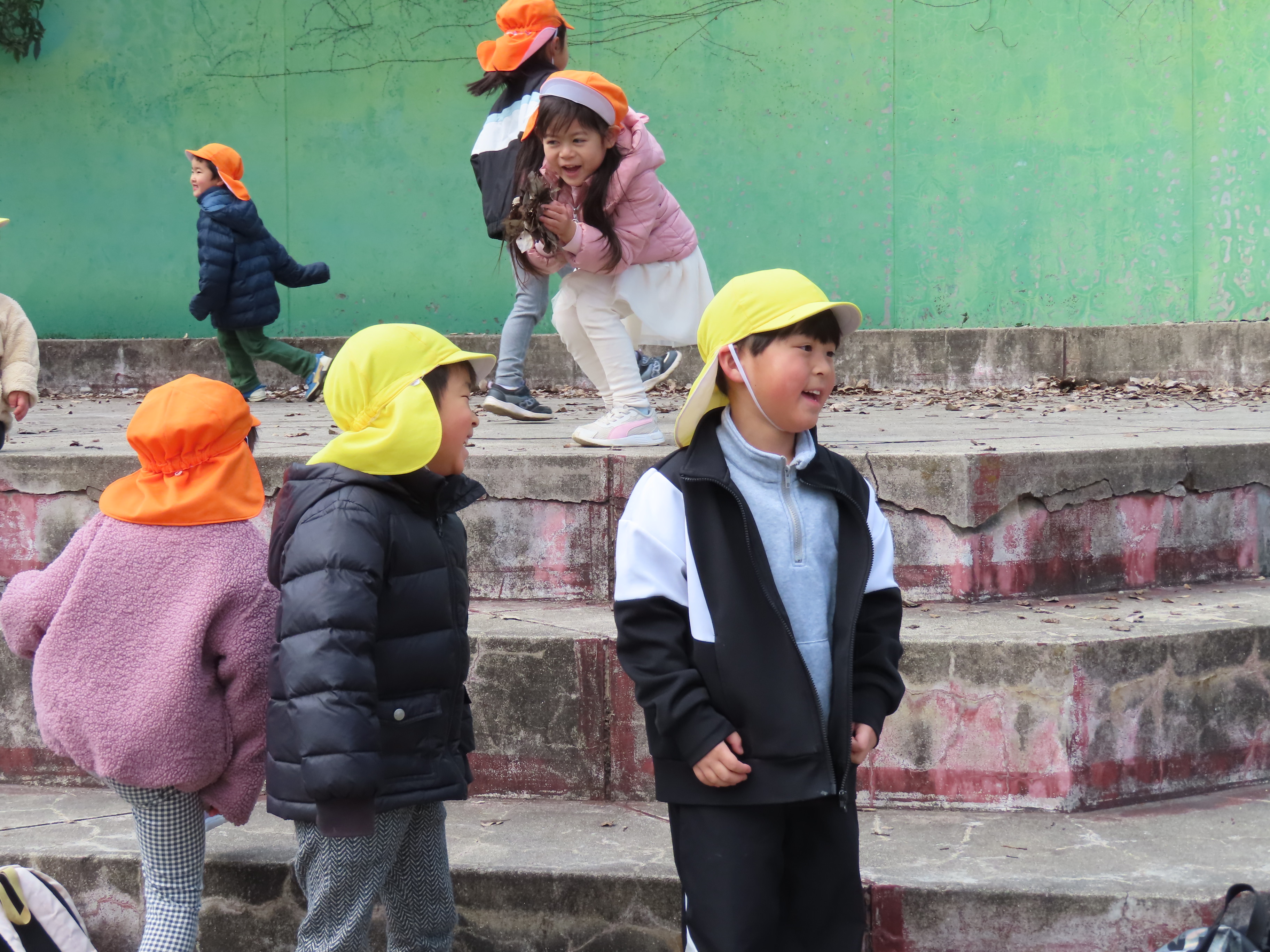 もうすぐ保育園を卒園する年長児さんと年中、年少児さんたちで大江浜広場まで遠足に行ってきました(*^_^*)園から、海沿いを通って一直線ではあるもののけっこうな距離に「先生~、まだ着かん?」「先生~、もうお腹がすいた~」と疲れながら歩いた子どもたちでした(笑)「もう少し‼!頑張れ!!」とたくさん励ましながらなんとか無事に到着!‼広場に着いたら、みんなでしっぽ取りゲームを楽しんだのですが、さっきまでの疲れはどこに?というほどに、走って‼走って‼しっぽを追いかける子どもたちでした(*^_^*) 広場でお弁当も食べる予定でしたが、雨もポツポツ、風もビュービュー…なので、保育園に帰ってお弁当を食べました。お母さんが作ってくれたお弁当が、嬉しくって嬉しくって、お友だち同士で見せ合いっこする子どもたちの姿がなんともほほえましかったです(#^^#) お忙しい中、準備等ありがとうございました!
