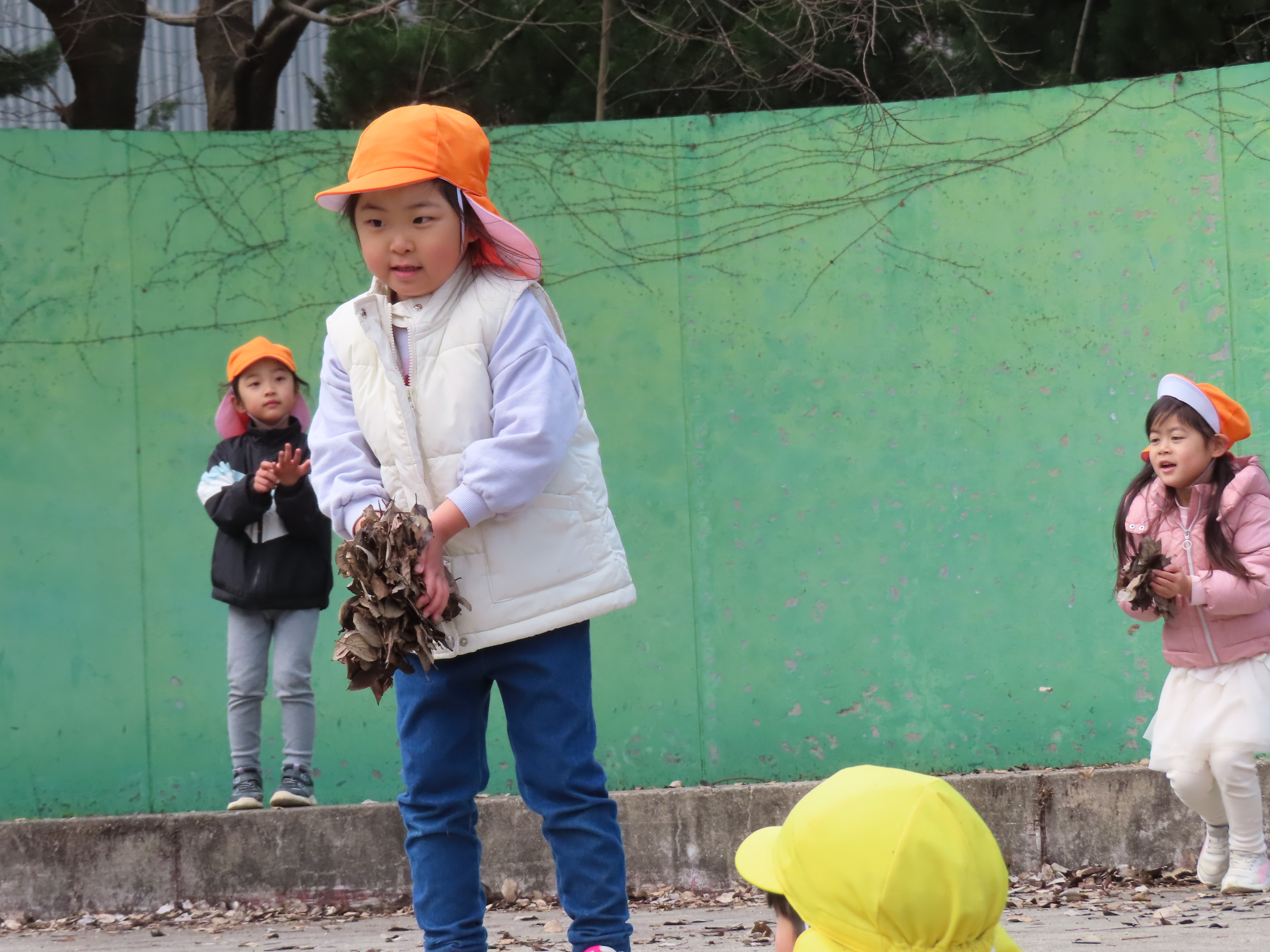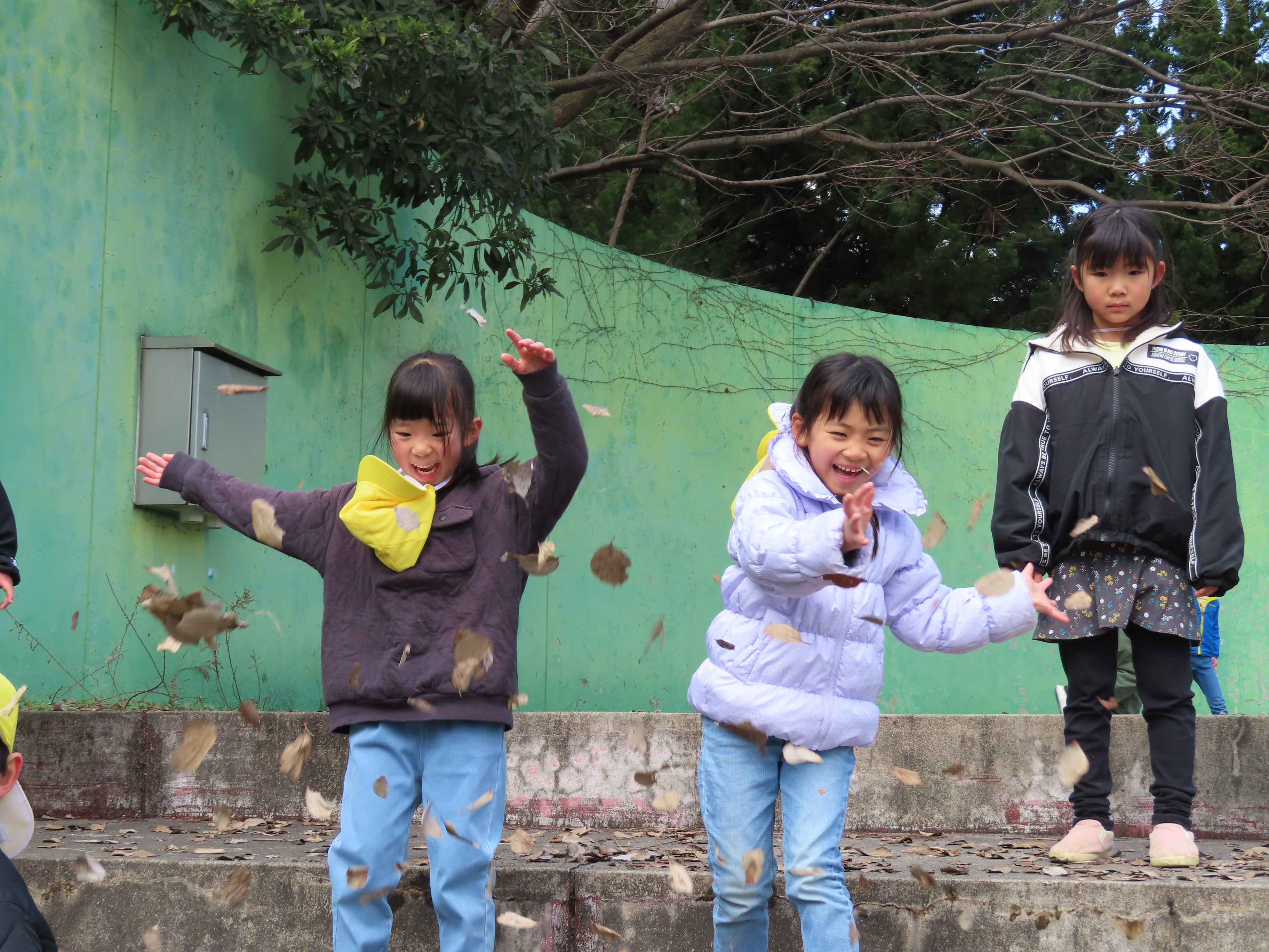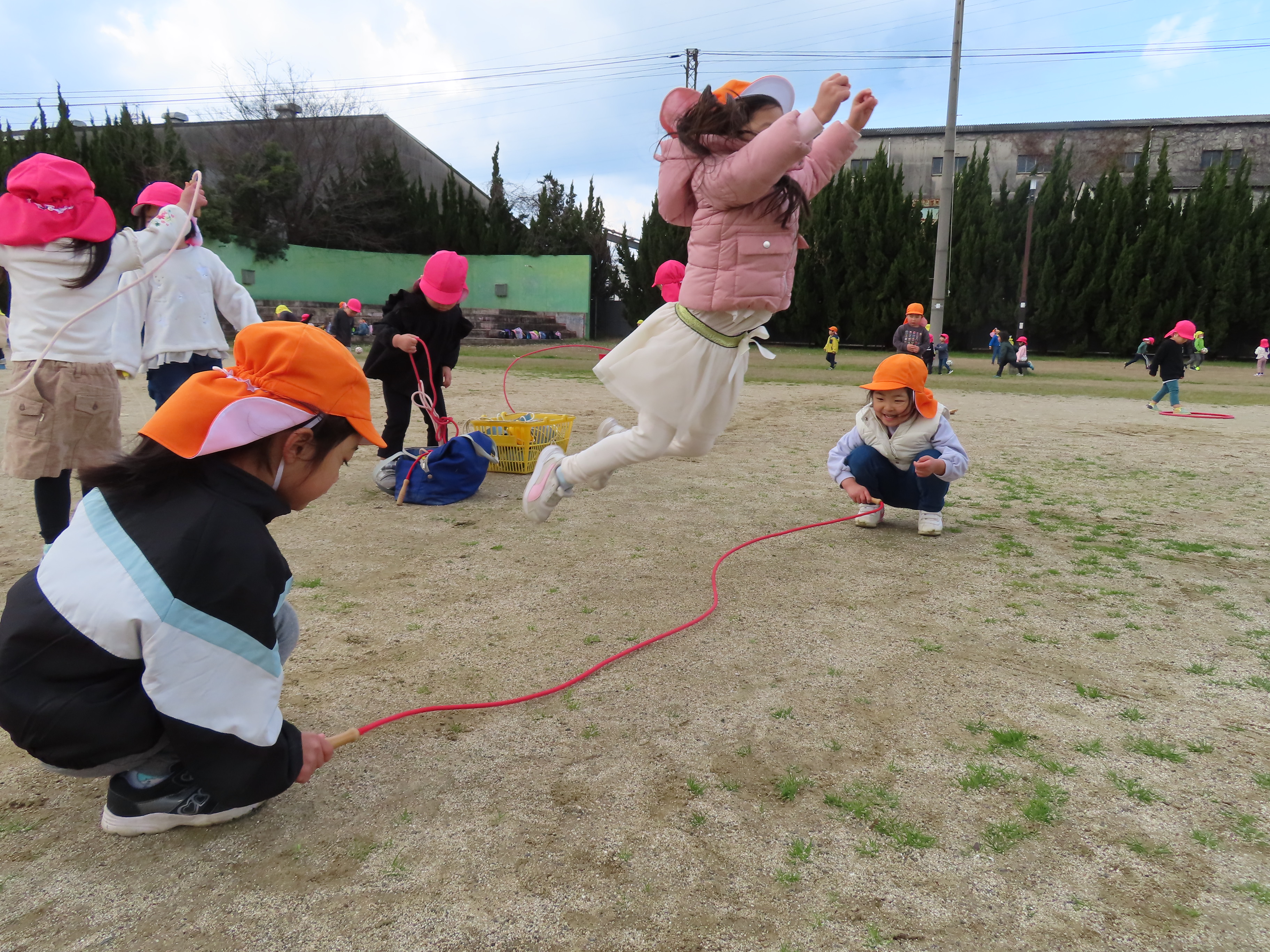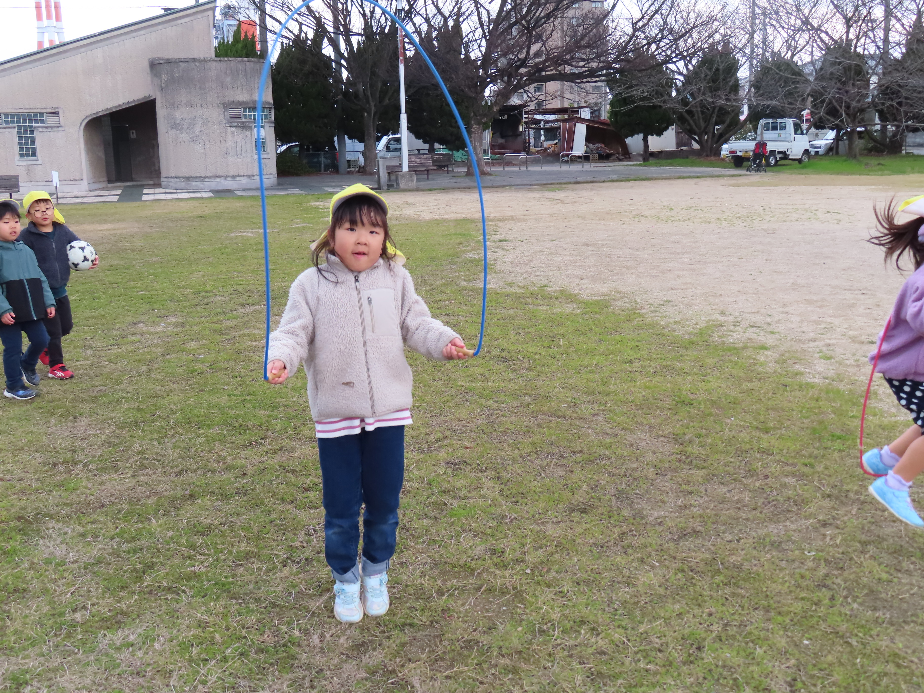 もうすぐ保育園を卒園する年長児さんと年中、年少児さんたちで大江浜広場まで遠足に行ってきました(*^_^*)園から、海沿いを通って一直線ではあるもののけっこうな距離に「先生~、まだ着かん?」「先生~、もうお腹がすいた~」と疲れながら歩いた子どもたちでした(笑)「もう少し‼!頑張れ!!」とたくさん励ましながらなんとか無事に到着!‼広場に着いたら、みんなでしっぽ取りゲームを楽しんだのですが、さっきまでの疲れはどこに?というほどに、走って‼走って‼しっぽを追いかける子どもたちでした(*^_^*) 広場でお弁当も食べる予定でしたが、雨もポツポツ、風もビュービュー…なので、保育園に帰ってお弁当を食べました。お母さんが作ってくれたお弁当が、嬉しくって嬉しくって、お友だち同士で見せ合いっこする子どもたちの姿がなんともほほえましかったです(#^^#) お忙しい中、準備等ありがとうございました!