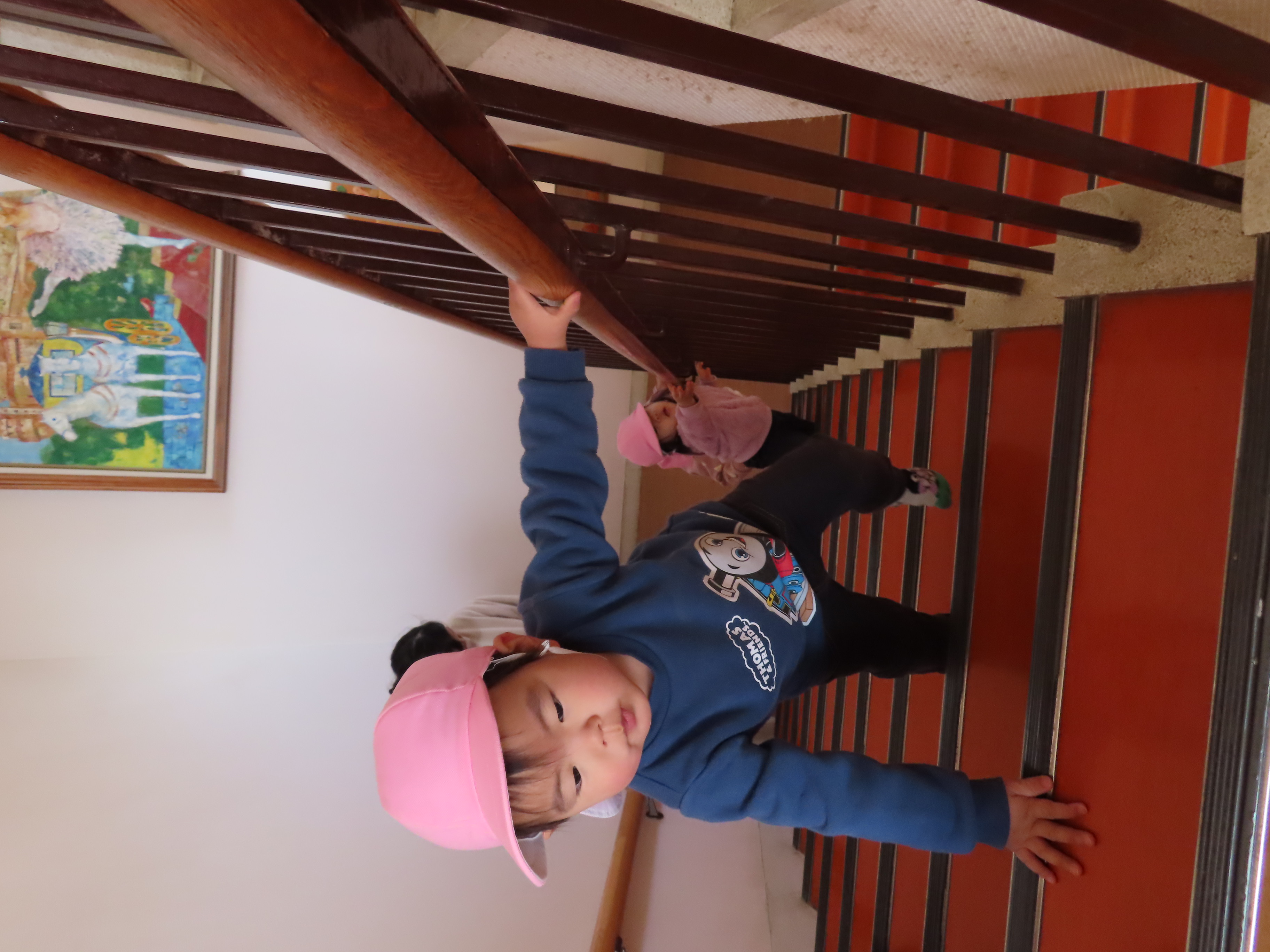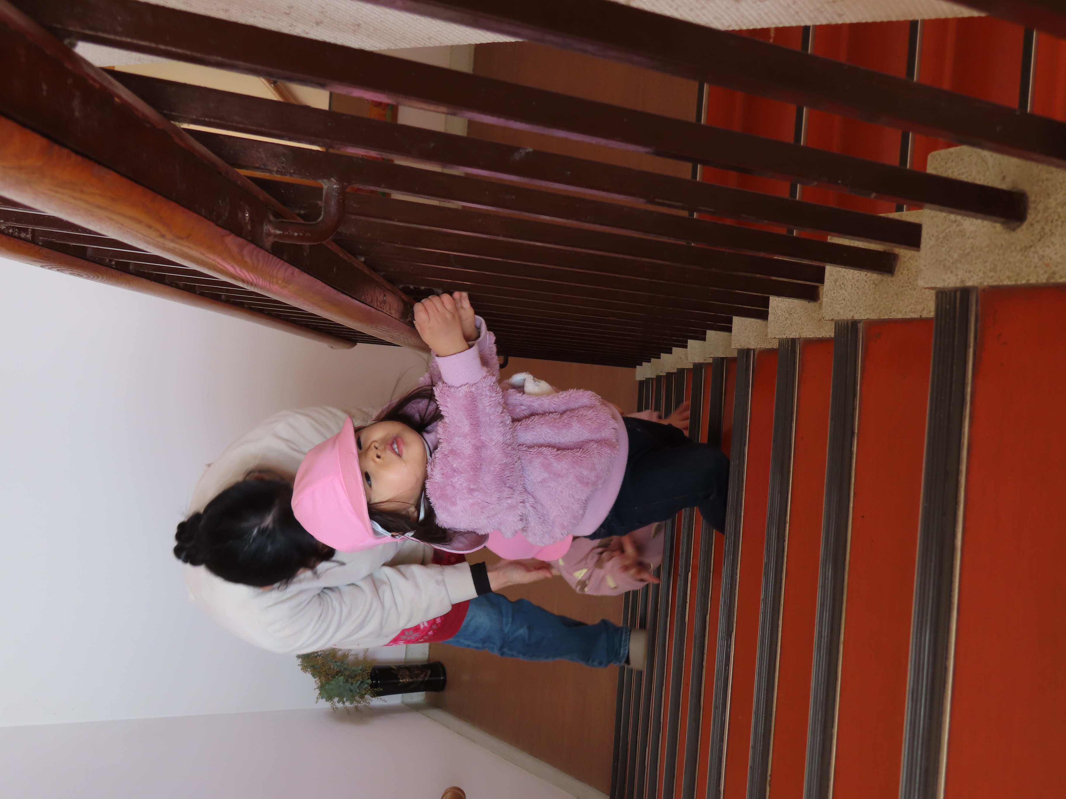 カメラのタイミングが遅くなってしまい・・・写真があまり撮れず・・・残念(*_*; でも、もも組さんたちみんな、階段練習も頑張ってます!!ちゃんと手すりも持ちながら、安全に慎重に、コツコツと頑張ってくれているので、登降園時もぜひ一緒に階段練習をしてあげてください(*^_^*)
