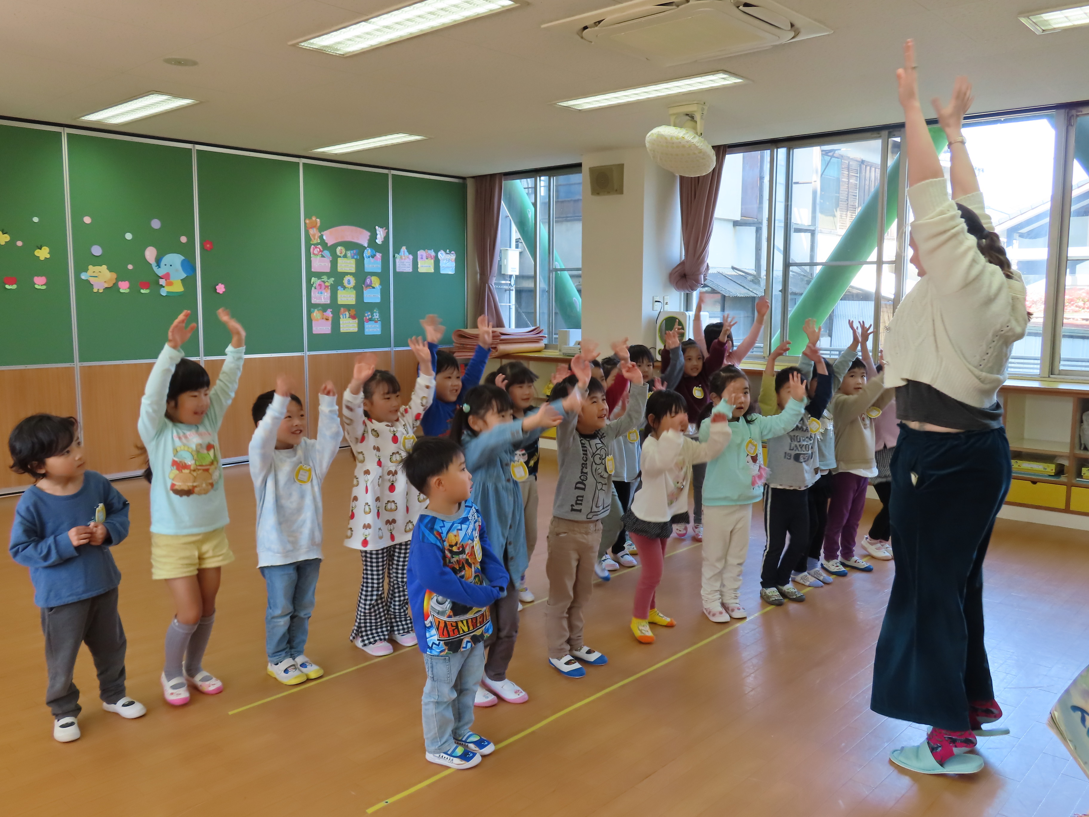 年長児さんたちは、4月から英語の習い事が始まりました。年長さんになったら習い事が始まるんよね!!とずっと楽しみにしていたことの1つです。 最初は、なんだか緊張気味の子どもたちではありましたが、カードゲームをしながら、少しずつ緊張も和らぎ張り切って頑張った子どもたちです!これから、少しずつ英語に親しんでくれたら嬉しいです(*^_^*)