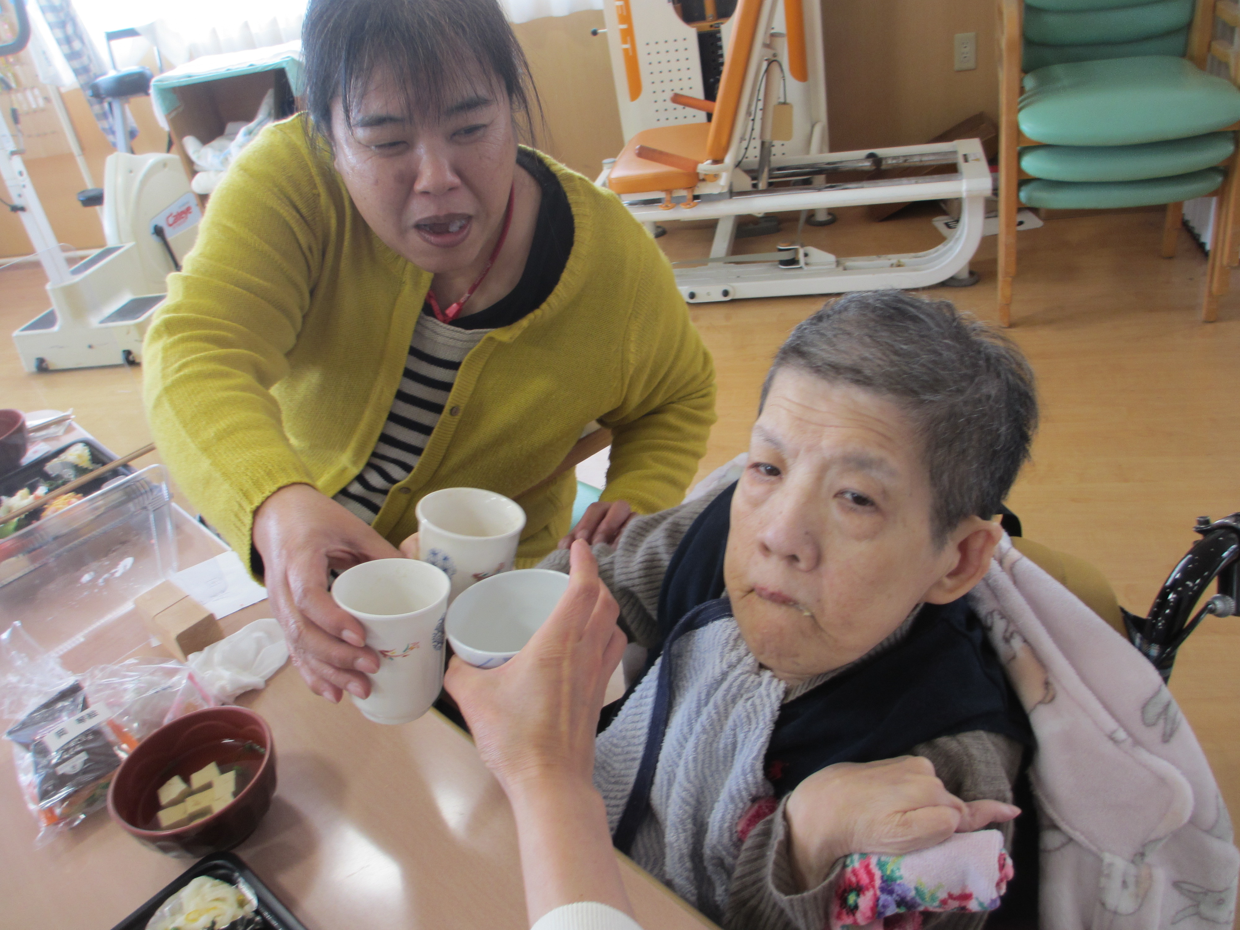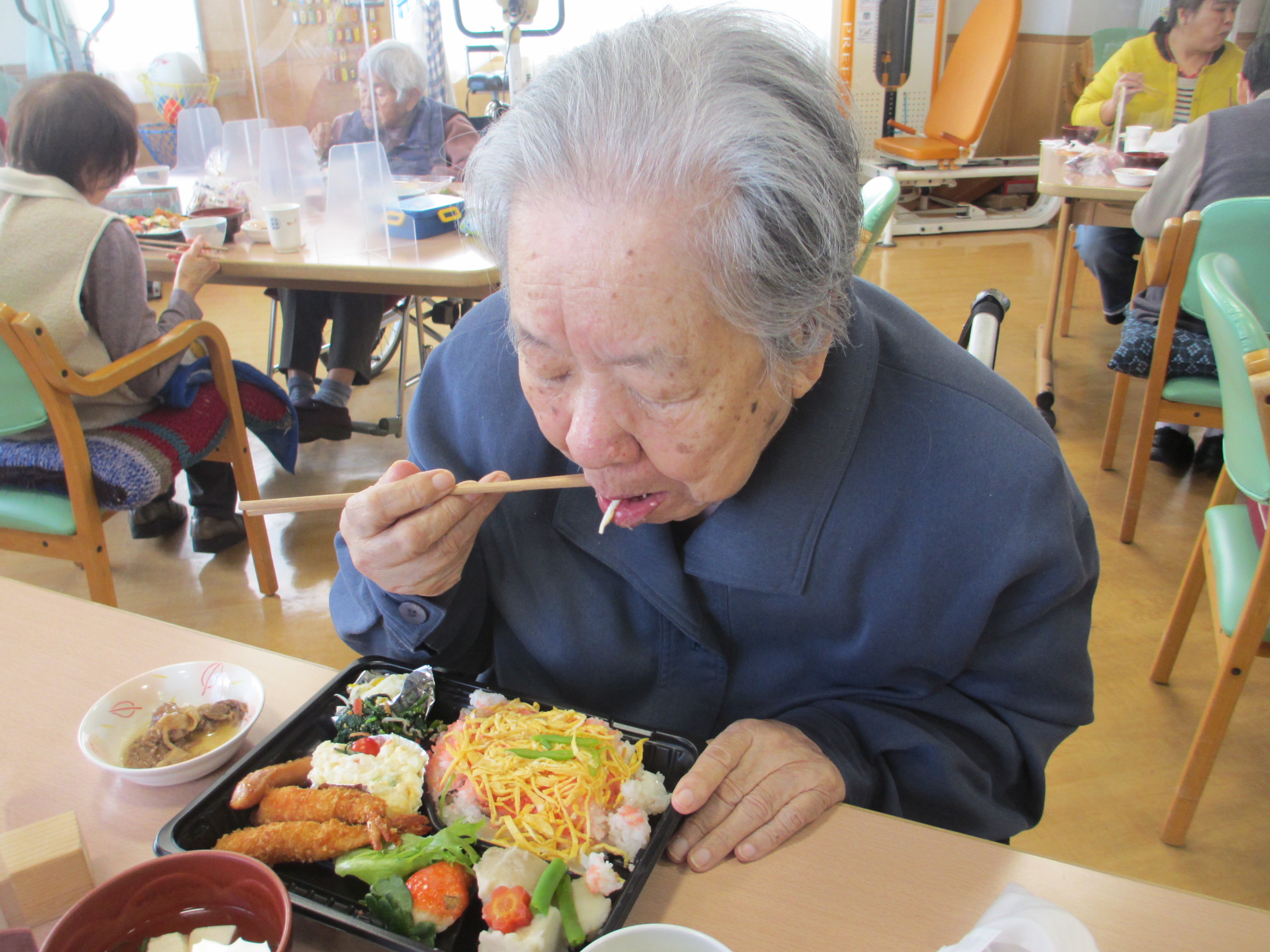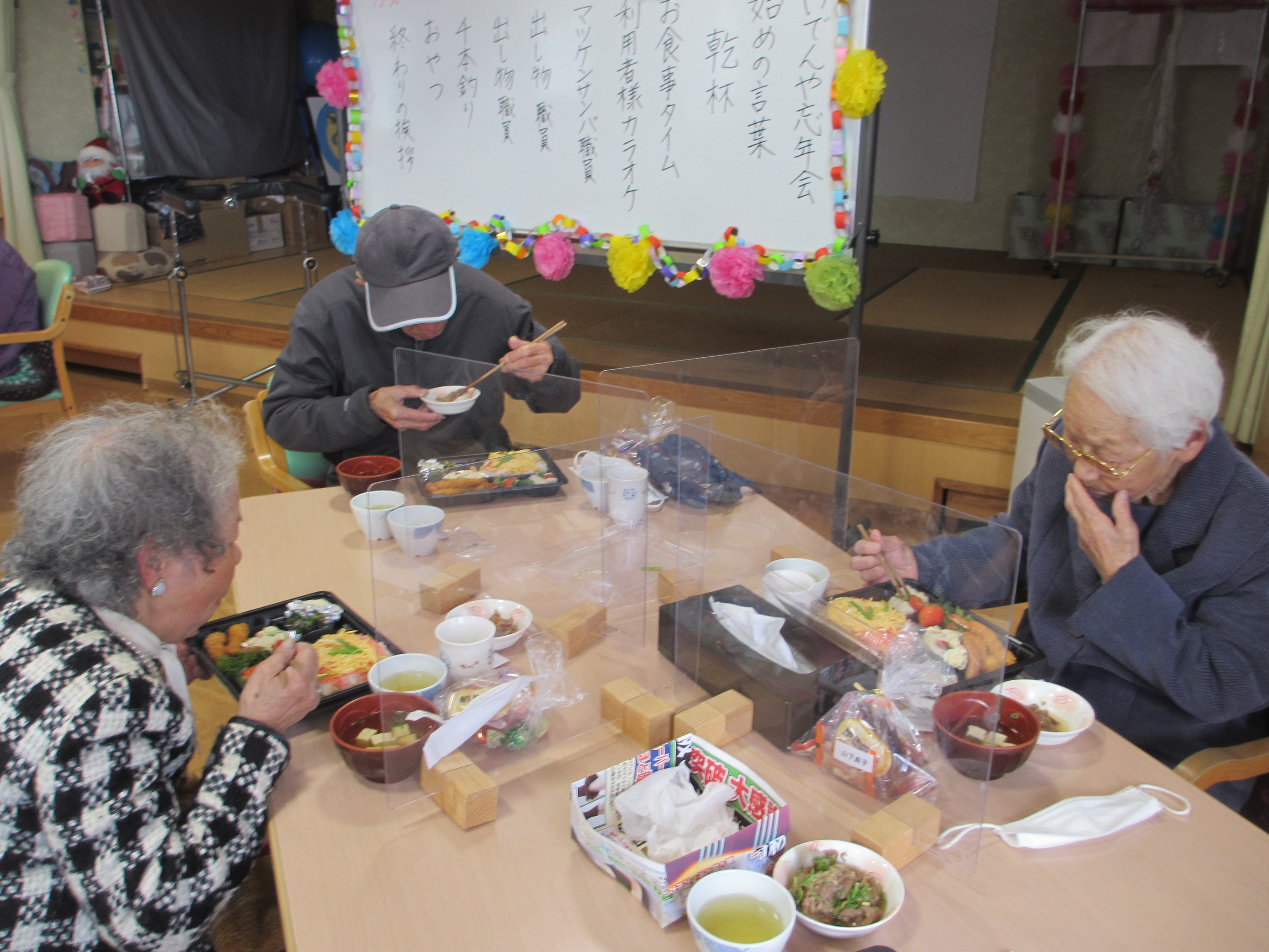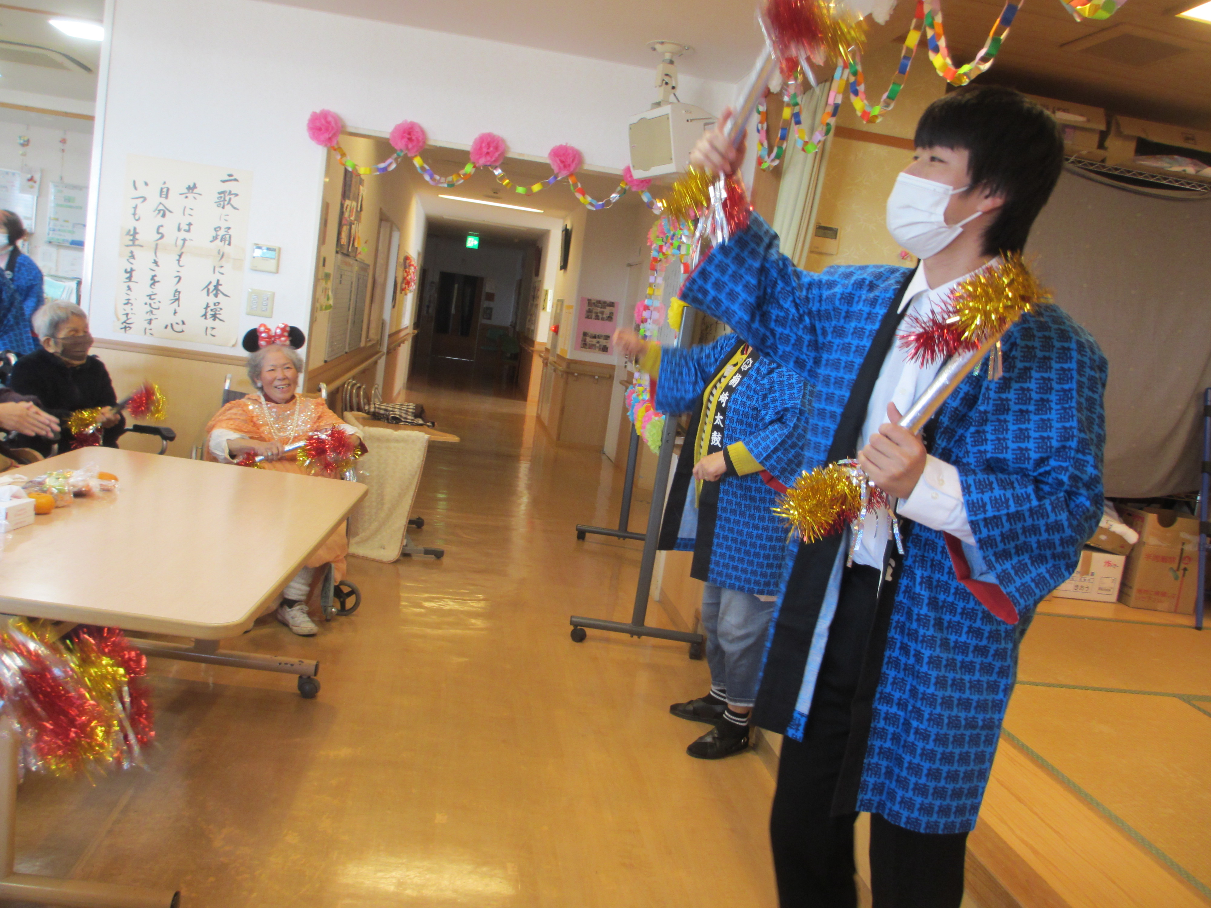 美味しいお弁当を食べたり、職員の出し物を見たり、カラオケに千本引き などなど…