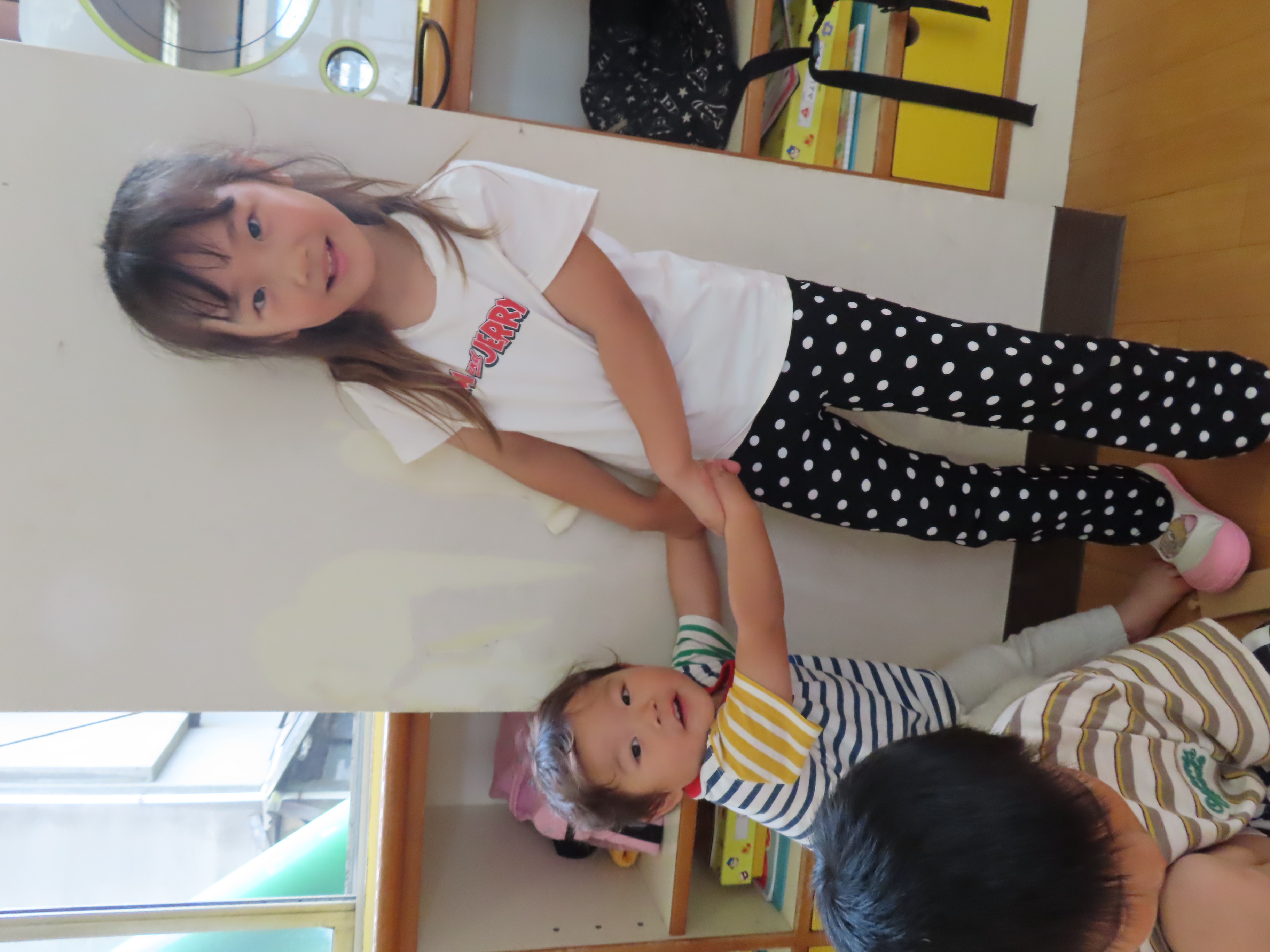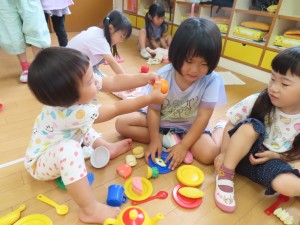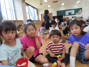 なかよしの日(6月18日)2024年6月19日たてわり保育「仲良しの日」を行いました。今月は、1階に集まってみんなで仲良く遊びました(*^_^*) 幼児さんは赤ちゃんを見つけて、「かわい~♡」とほっぺっを触りにいってみたり、「一緒に遊ぶ?」と手をひいてくれたり、作ったおもちゃを「小さい子にこわされた~!」と泣いてみたりと色々な感情を抱きながら、一緒に過ごしていました!なかなか一緒に遊ぶ機会もないので、色々なお友だちとの関わりがこれからも持てると良いなと思います(*^_^*) 施設情報愛媛県新居浜市にある児童福祉施設十全保育園げんきな子 がんばる子 やさしい子 楽しく食べるげんきな子児童福祉施設 十全保育園〒792-0011愛媛県新居浜市西原町2-3-12TEL:0897-33-3055 FAX:0897-33-3078十全保育園WEBサイト最近の記事2025年8月27日プール最終日~♪児童福祉施設 十全保育園2025年8月27日プール大会児童福祉施設 十全保育園2025年8月27日お茶のおけいこ児童福祉施設 十全保育園2025年8月12日職員会児童福祉施設 十全保育園2025年8月7日いっぱいあそんだよ♪~つぼみ・ちゅうりっぷ・もも~児童福祉施設 十全保育園2025年7月25日サマーキッズカーニバル♫児童福祉施設 十全保育園十全保育園の記事一覧