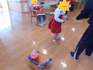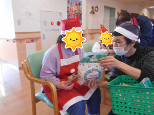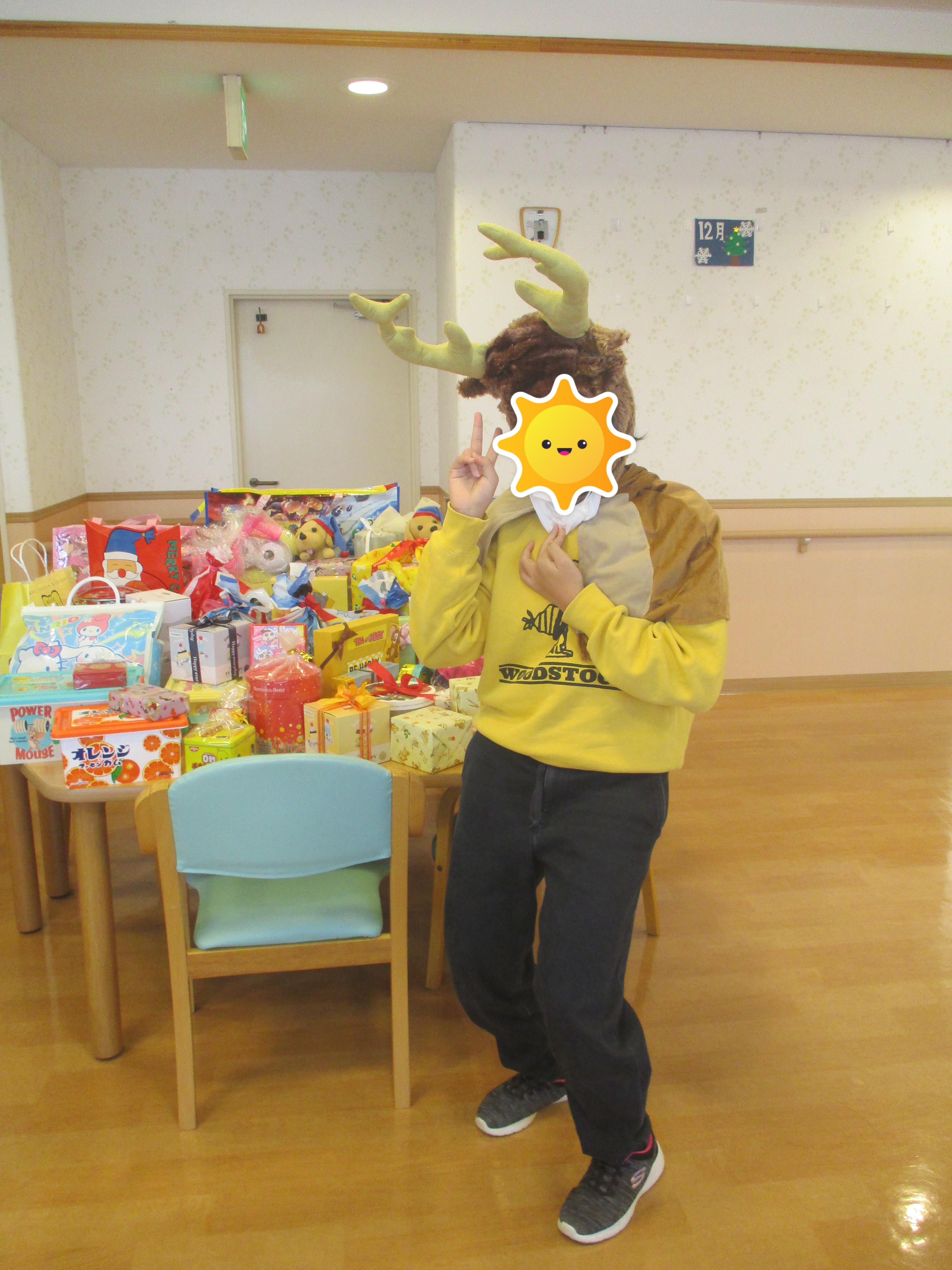 クリスマス会2025年1月24日 楽しみにしていたクリスマス会をしました。 プレゼントを運ぶゲームをしました。 トナカイさんも手伝ってくれています。 トナカイさんがトナカイさんを応援しています。 クリスマスプレゼントです。 もちろん、ケーキも食べました。 楽しいクリスマス会になりました。 施設情報愛媛県新居浜市にある総合福祉施設コミュニティハウス三恵子どもから障がい者、高齢者が集う憩いの場コミュニティハウス三恵〒792-0893 愛媛県新居浜市多喜浜1-2-16TEL:0897-46-4545 FAX:0897-46-4811コミュニティハウス三恵WEBサイト最近の記事2025年10月7日10月のお誕生会総合福祉館 コミュニティハウス三恵2025年6月18日おやつ作り(ホットサンド)総合福祉館 コミュニティハウス三恵2025年6月18日レクレーション(ブーメラン)総合福祉館 コミュニティハウス三恵2025年6月18日個別外出総合福祉館 コミュニティハウス三恵2025年6月18日介護教室(血圧のお話)総合福祉館 コミュニティハウス三恵2025年4月21日節分総合福祉館 コミュニティハウス三恵コミュニティハウス三恵の記事一覧
