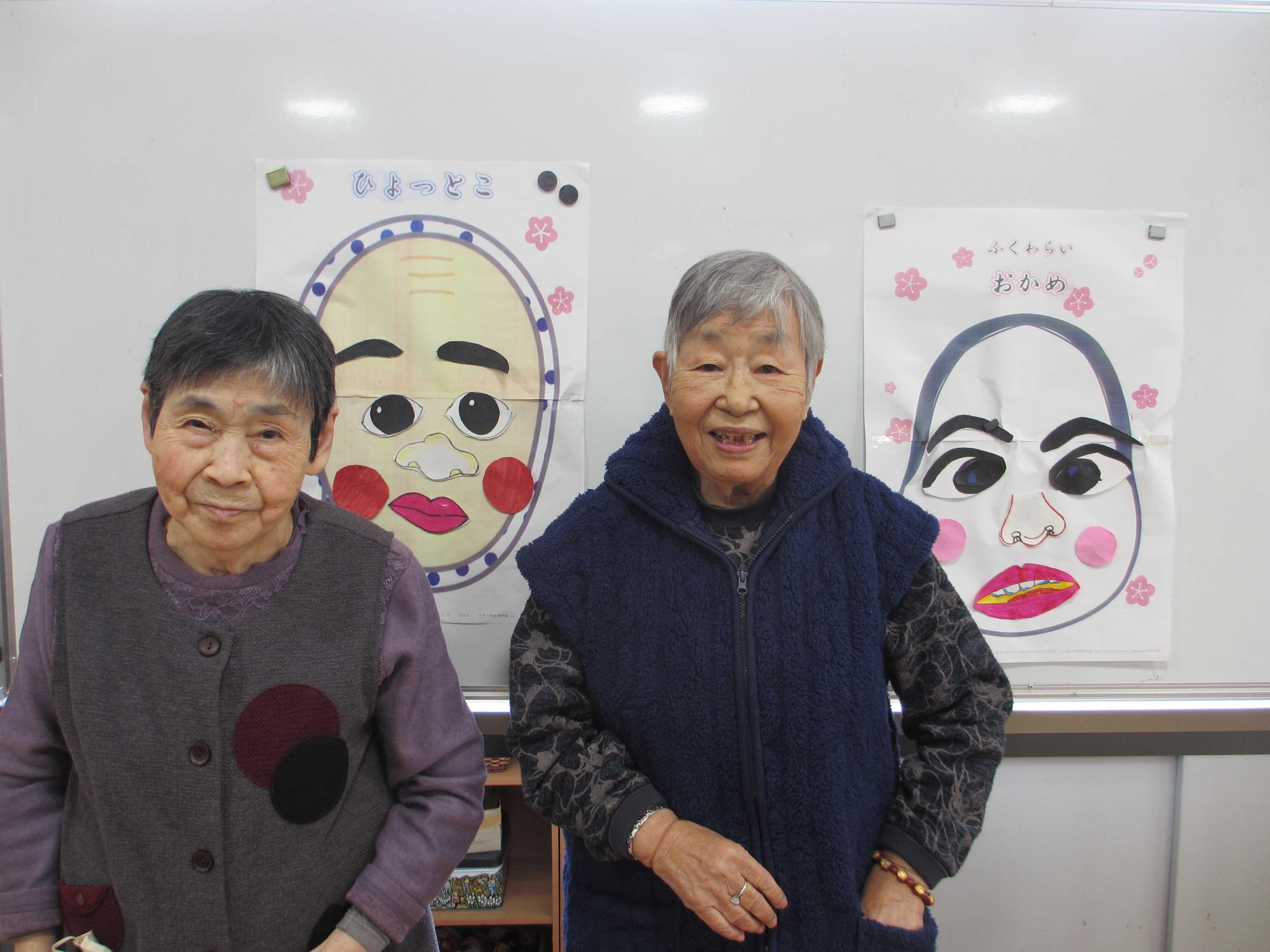 福笑い2025年4月21日「違う。違う。あっちよ。もっと上。」 「そこそこ。」など みんなからのアドバイスもあり盛り上がりました。 様々な表情のおかめとひょっとこができました。 施設情報愛媛県新居浜市にある総合福祉施設コミュニティハウス三恵子どもから障がい者、高齢者が集う憩いの場コミュニティハウス三恵〒792-0893 愛媛県新居浜市多喜浜1-2-16TEL:0897-46-4545 FAX:0897-46-4811コミュニティハウス三恵WEBサイト最近の記事2025年10月7日10月のお誕生会総合福祉館 コミュニティハウス三恵2025年6月18日おやつ作り(ホットサンド)総合福祉館 コミュニティハウス三恵2025年6月18日レクレーション(ブーメラン)総合福祉館 コミュニティハウス三恵2025年6月18日個別外出総合福祉館 コミュニティハウス三恵2025年6月18日介護教室(血圧のお話)総合福祉館 コミュニティハウス三恵2025年4月21日節分総合福祉館 コミュニティハウス三恵コミュニティハウス三恵の記事一覧