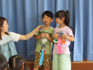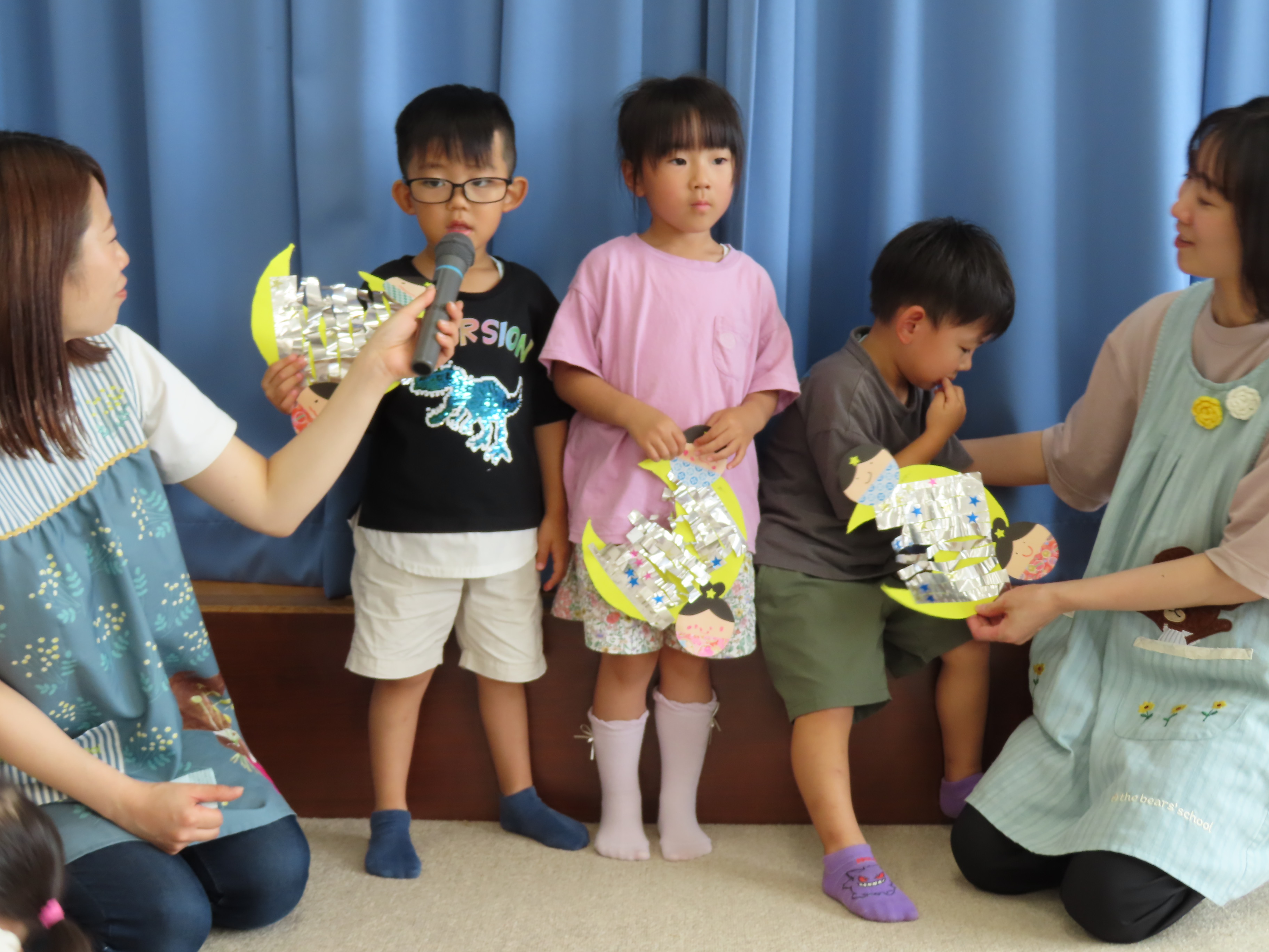 たなばた会2024年7月12日たなばた会をしました。それぞれのクラスで作った笹飾りを紹介してもらったり、ブラックシアターで七夕の由来のお話を聞いたりとみんなで楽しい時間を過ごしました(*^_^*) みんなの願いはちゃんと届いたかな?☆彡 〖笹飾り紹介☆〗 施設情報愛媛県新居浜市にある児童福祉施設十全保育園げんきな子 がんばる子 やさしい子 楽しく食べるげんきな子児童福祉施設 十全保育園〒792-0011愛媛県新居浜市西原町2-3-12TEL:0897-33-3055 FAX:0897-33-3078十全保育園WEBサイト最近の記事2025年8月27日プール最終日~♪児童福祉施設 十全保育園2025年8月27日プール大会児童福祉施設 十全保育園2025年8月27日お茶のおけいこ児童福祉施設 十全保育園2025年8月12日職員会児童福祉施設 十全保育園2025年8月7日いっぱいあそんだよ♪~つぼみ・ちゅうりっぷ・もも~児童福祉施設 十全保育園2025年7月25日サマーキッズカーニバル♫児童福祉施設 十全保育園十全保育園の記事一覧