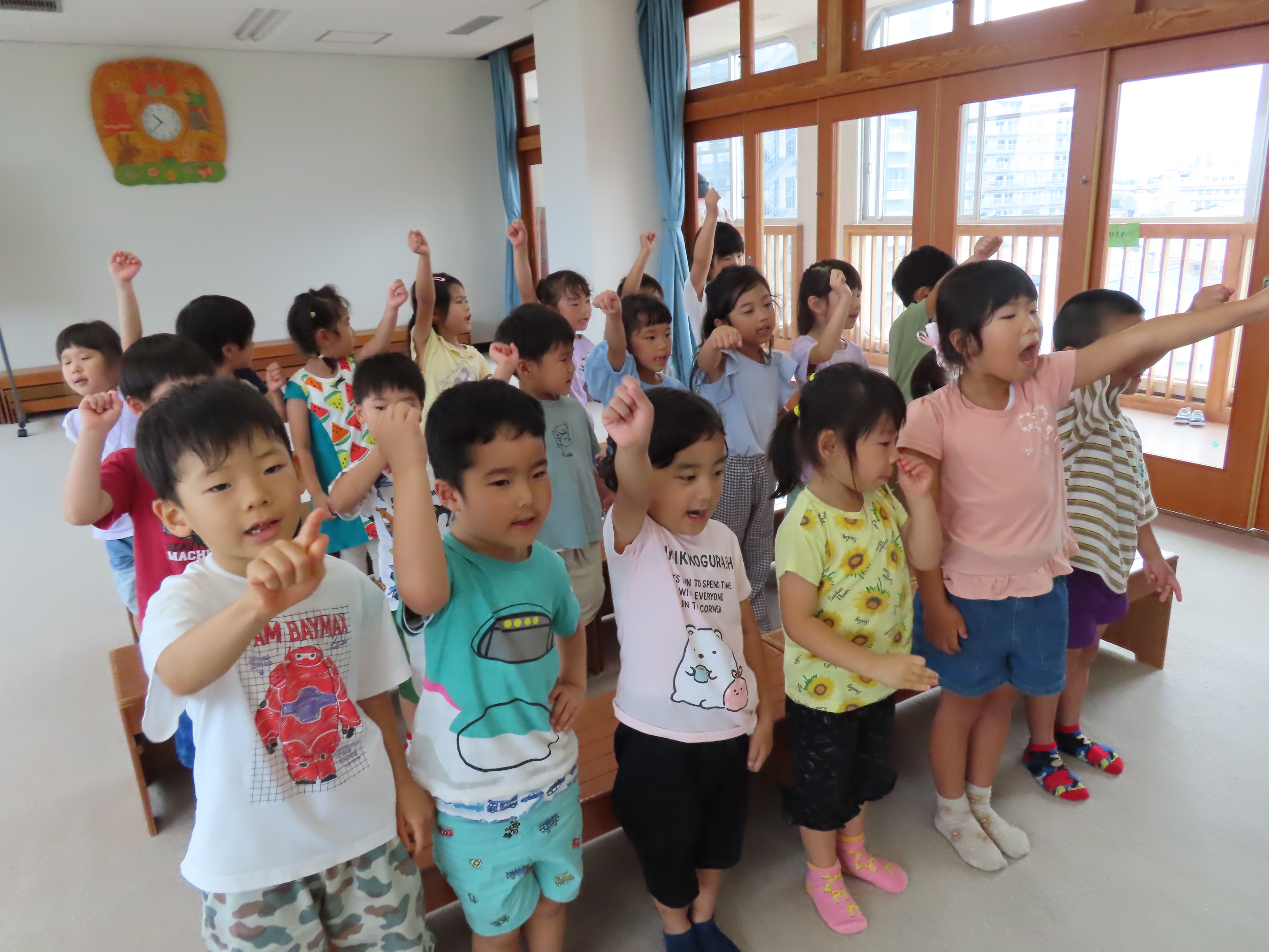 7月の誕生会(7月10日)2024年7月12日7月の誕生会を行いました(*^_^*) 今月から、すみれ組さんも幼児クラスと一緒に誕生会に参加します。きちんと座ってお話も聞けてとってもおりこうさんでした(*^^)v うたのプレゼントもとっても可愛らしく披露してくれました! お誕生日のお友だち‼!おめでとうございます(*^_^*) 〖お誕生日給食♪〗 施設情報愛媛県新居浜市にある児童福祉施設十全保育園げんきな子 がんばる子 やさしい子 楽しく食べるげんきな子児童福祉施設 十全保育園〒792-0011愛媛県新居浜市西原町2-3-12TEL:0897-33-3055 FAX:0897-33-3078十全保育園WEBサイト最近の記事2025年8月27日プール最終日~♪児童福祉施設 十全保育園2025年8月27日プール大会児童福祉施設 十全保育園2025年8月27日お茶のおけいこ児童福祉施設 十全保育園2025年8月12日職員会児童福祉施設 十全保育園2025年8月7日いっぱいあそんだよ♪~つぼみ・ちゅうりっぷ・もも~児童福祉施設 十全保育園2025年7月25日サマーキッズカーニバル♫児童福祉施設 十全保育園十全保育園の記事一覧