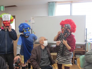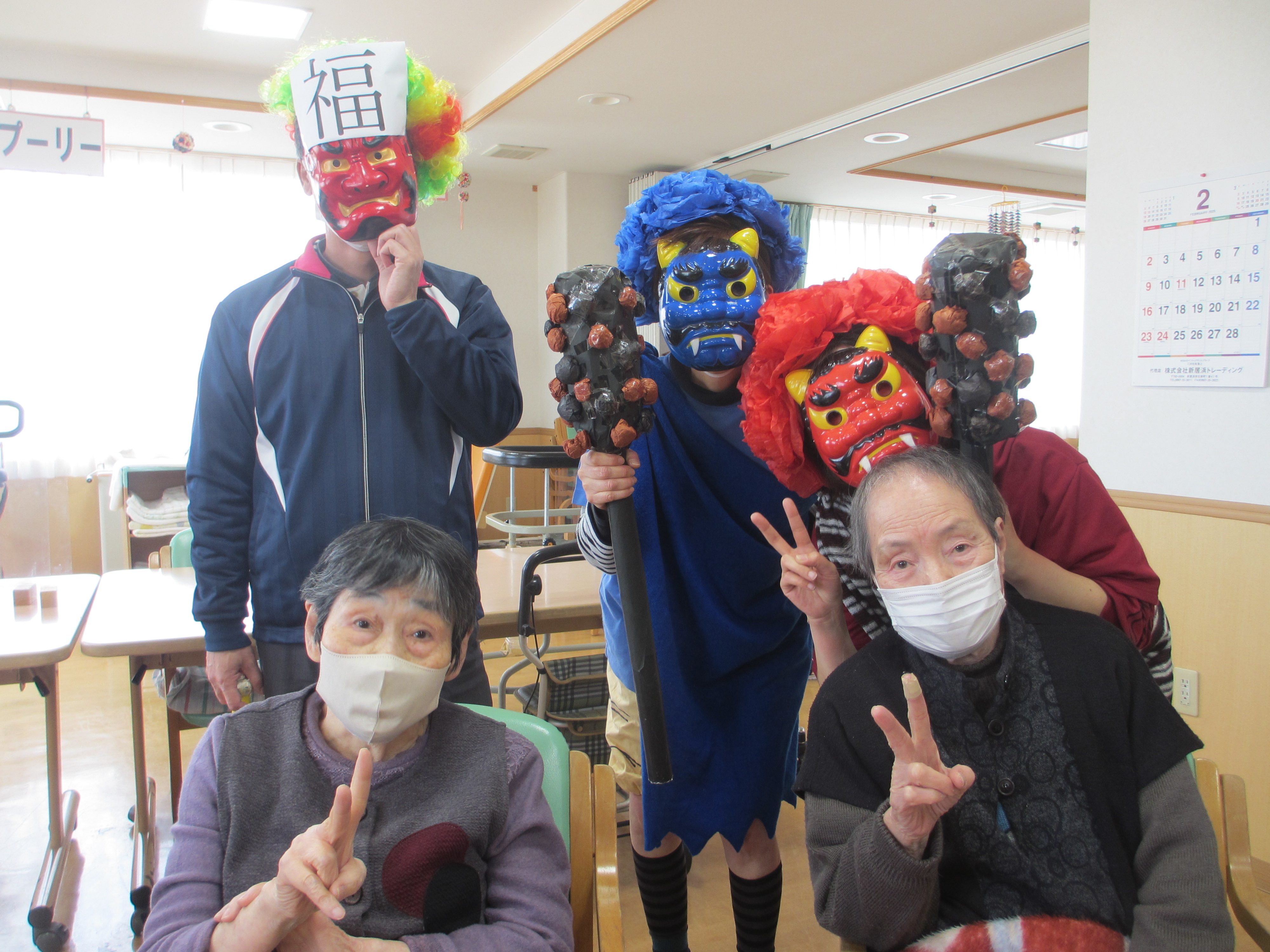 節分2025年4月21日おいでんやに鬼が来ました。 「うわ~。」とビックリしていましたが、鬼退治をしました。 最後は仲良くなれました。 施設情報愛媛県新居浜市にある総合福祉施設コミュニティハウス三恵子どもから障がい者、高齢者が集う憩いの場コミュニティハウス三恵〒792-0893 愛媛県新居浜市多喜浜1-2-16TEL:0897-46-4545 FAX:0897-46-4811コミュニティハウス三恵WEBサイト最近の記事2025年10月7日10月のお誕生会総合福祉館 コミュニティハウス三恵2025年6月18日おやつ作り(ホットサンド)総合福祉館 コミュニティハウス三恵2025年6月18日レクレーション(ブーメラン)総合福祉館 コミュニティハウス三恵2025年6月18日個別外出総合福祉館 コミュニティハウス三恵2025年6月18日介護教室(血圧のお話)総合福祉館 コミュニティハウス三恵2025年4月21日初詣(一宮神社)総合福祉館 コミュニティハウス三恵コミュニティハウス三恵の記事一覧